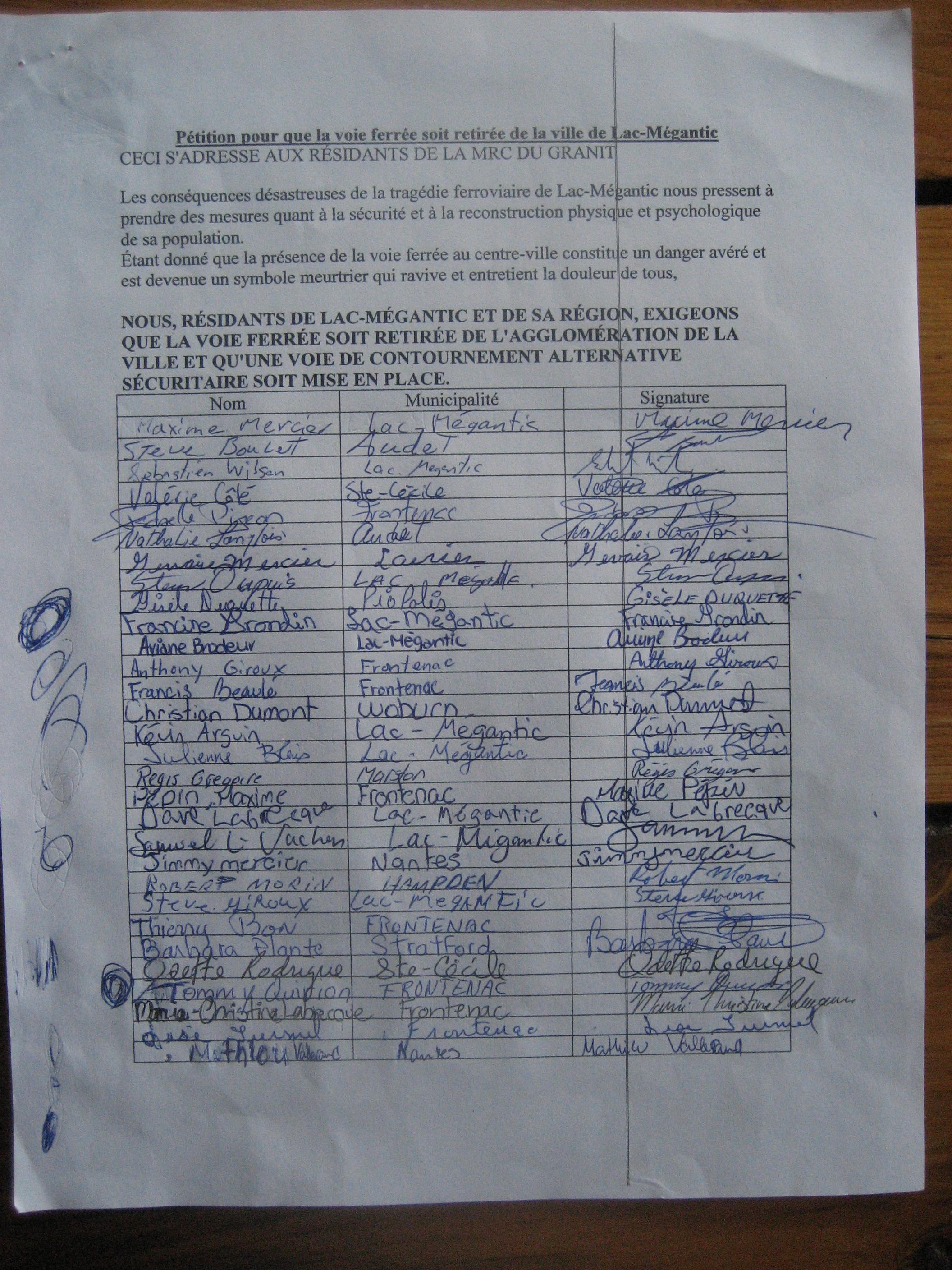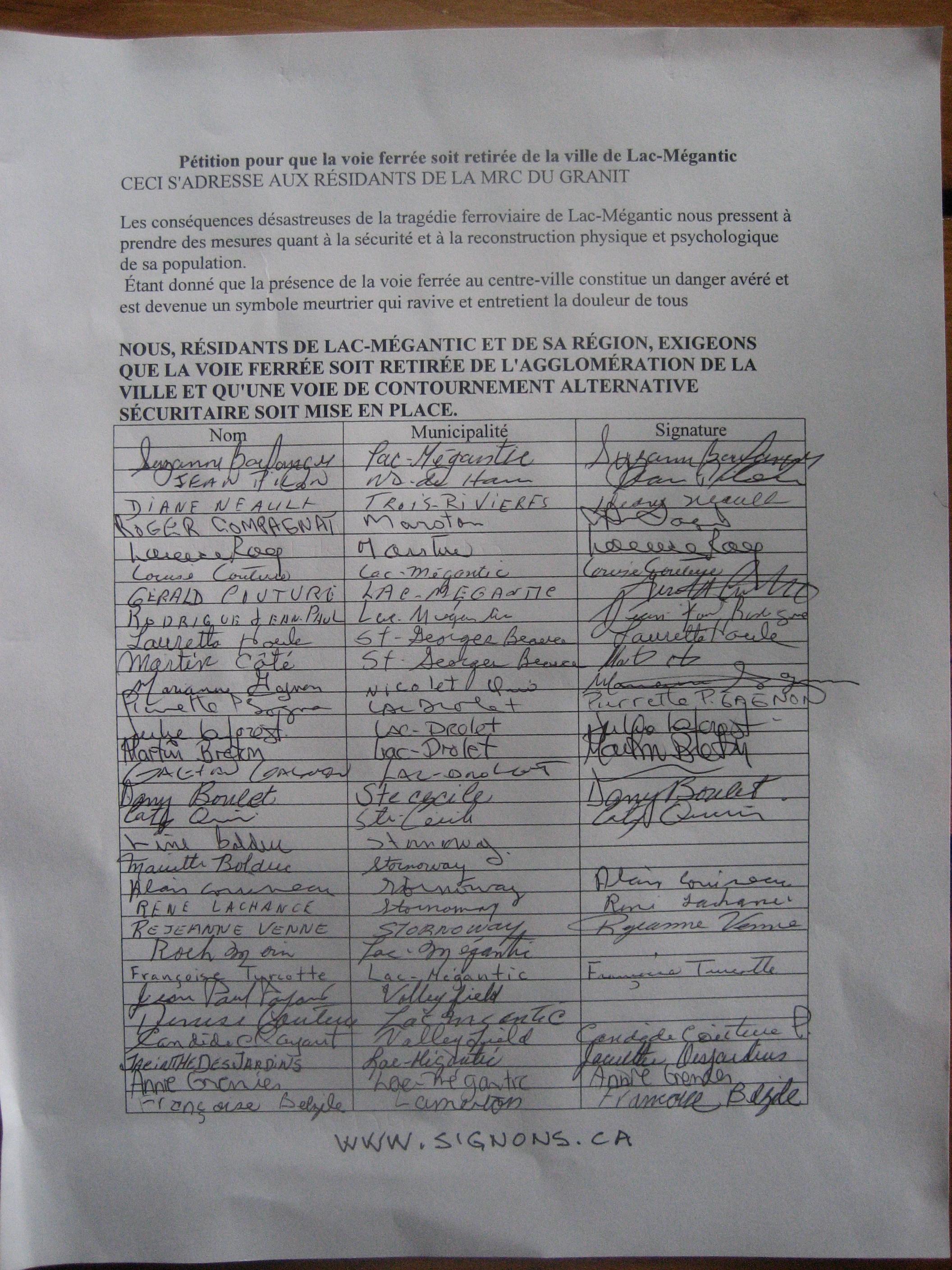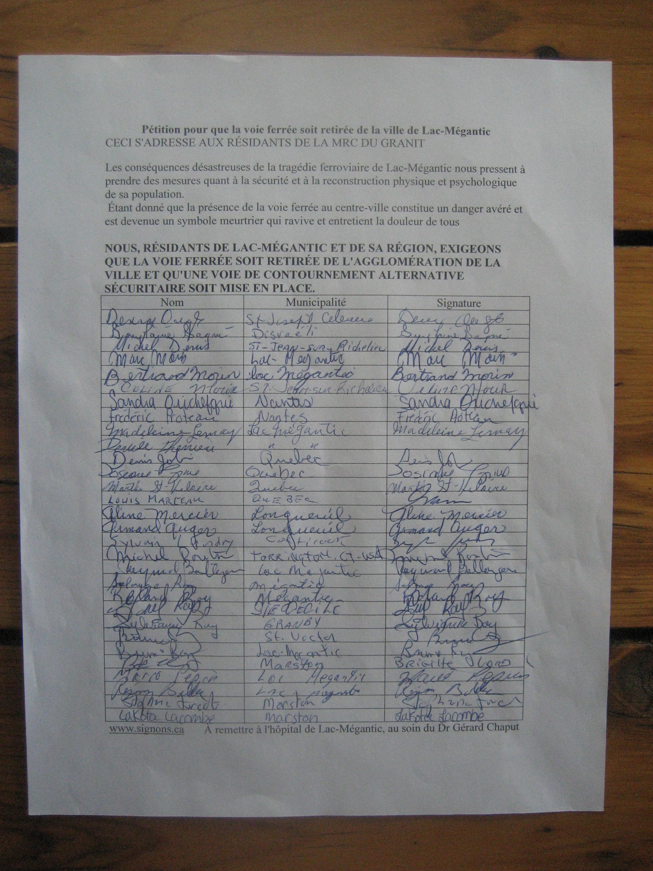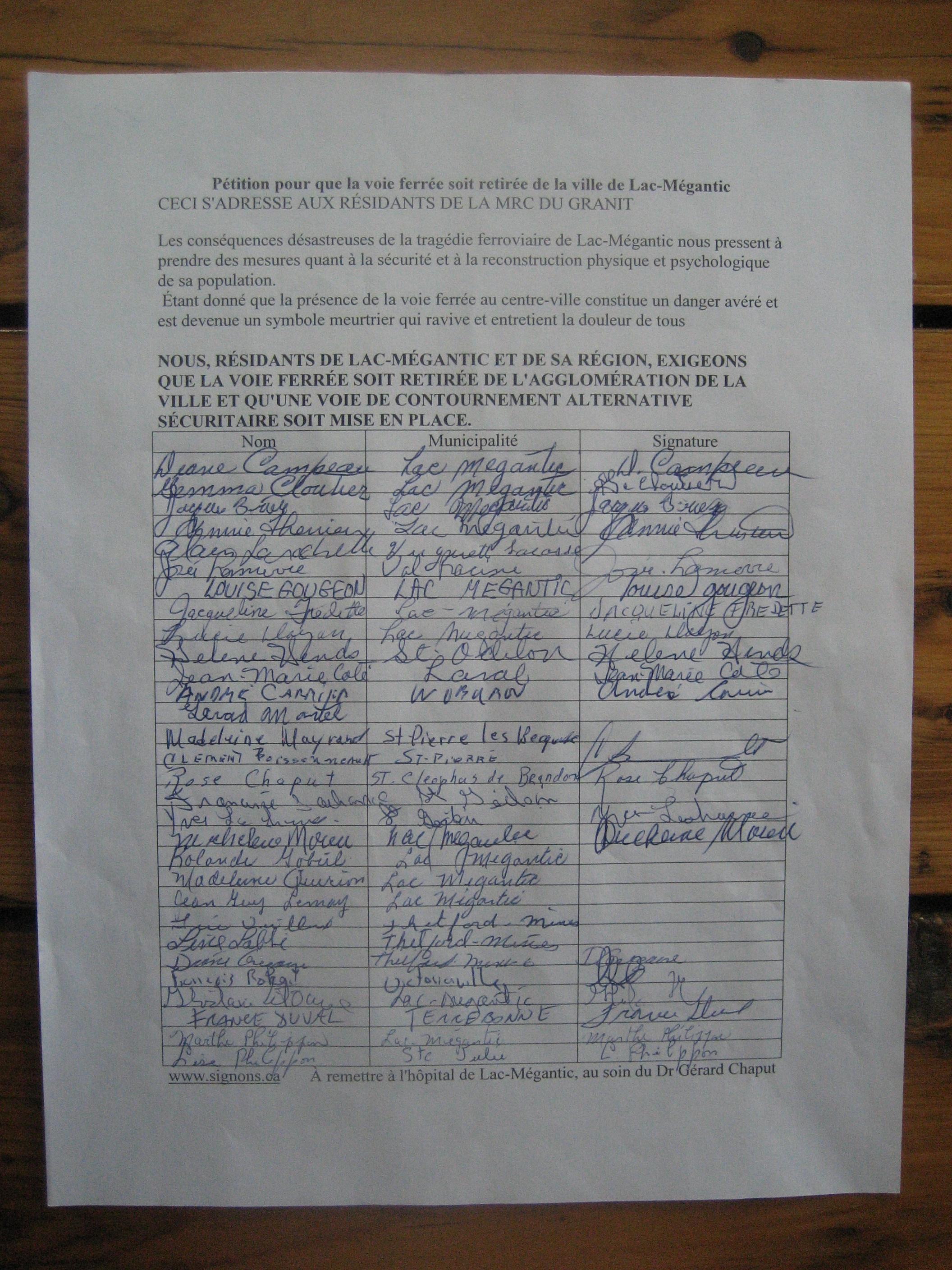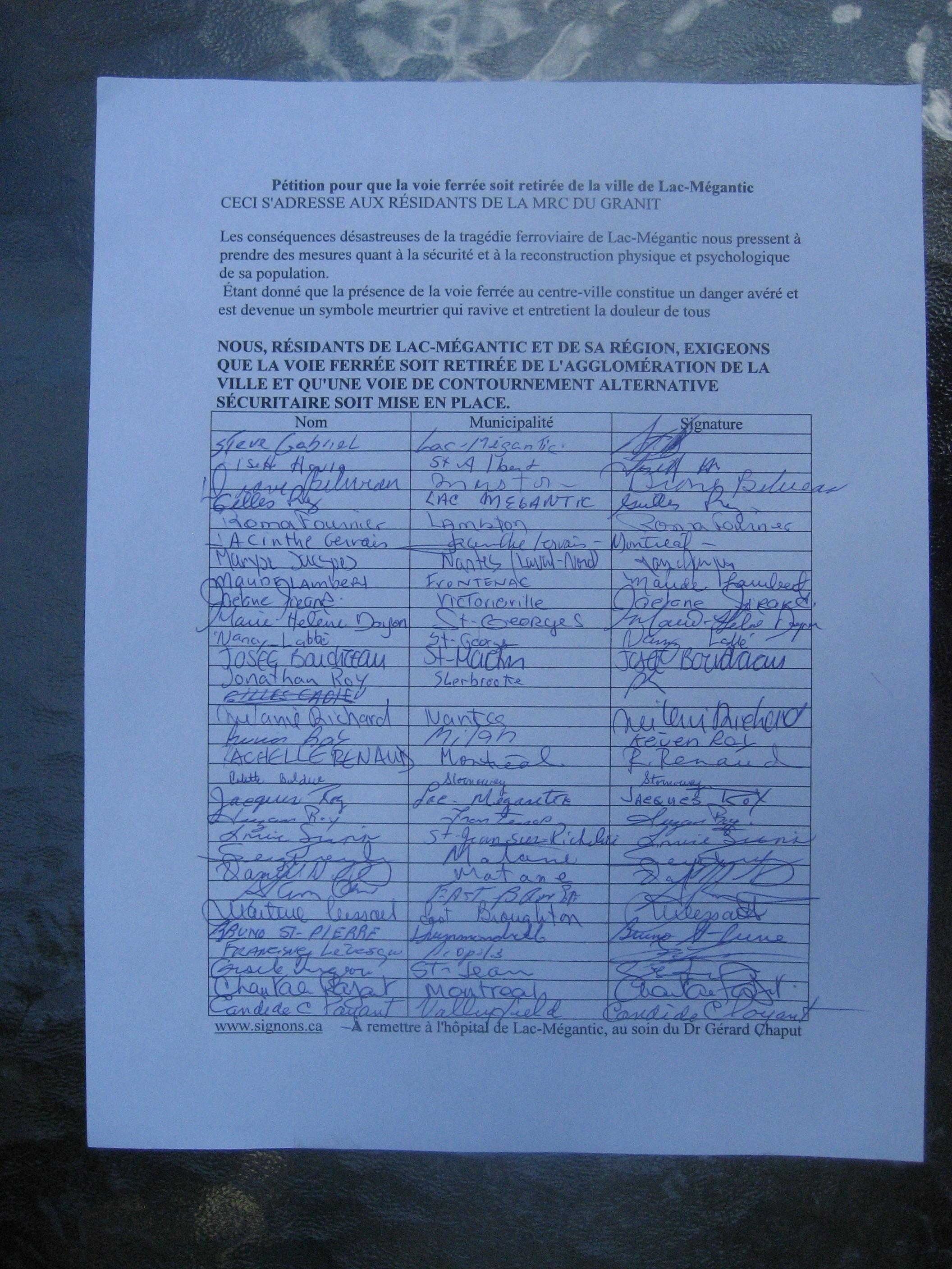 - Pétition pour re-localiser la voie ferrée de Lac-Mégantic
