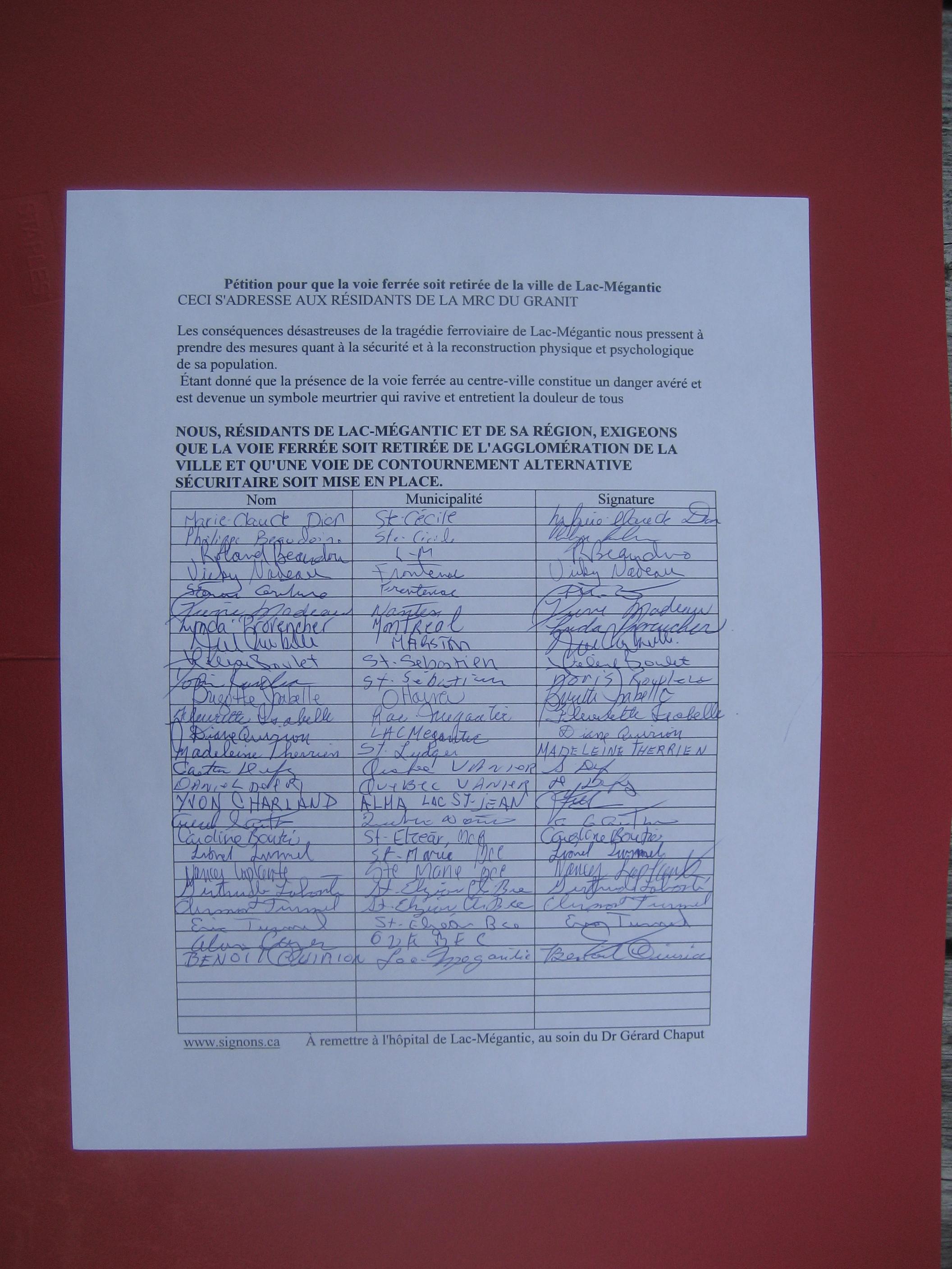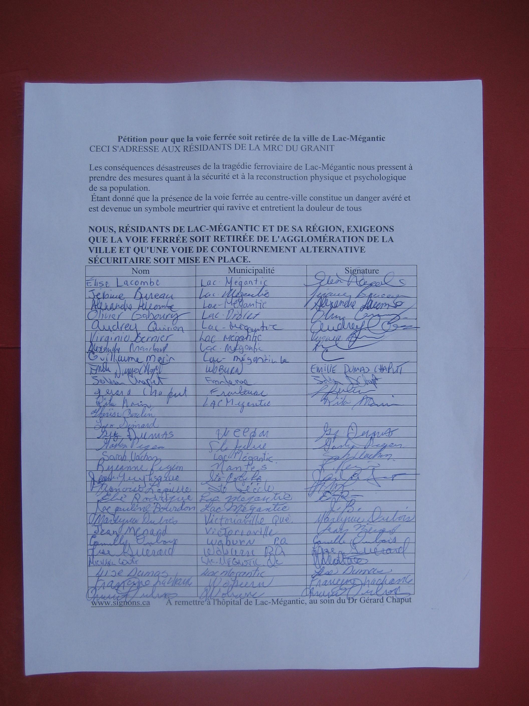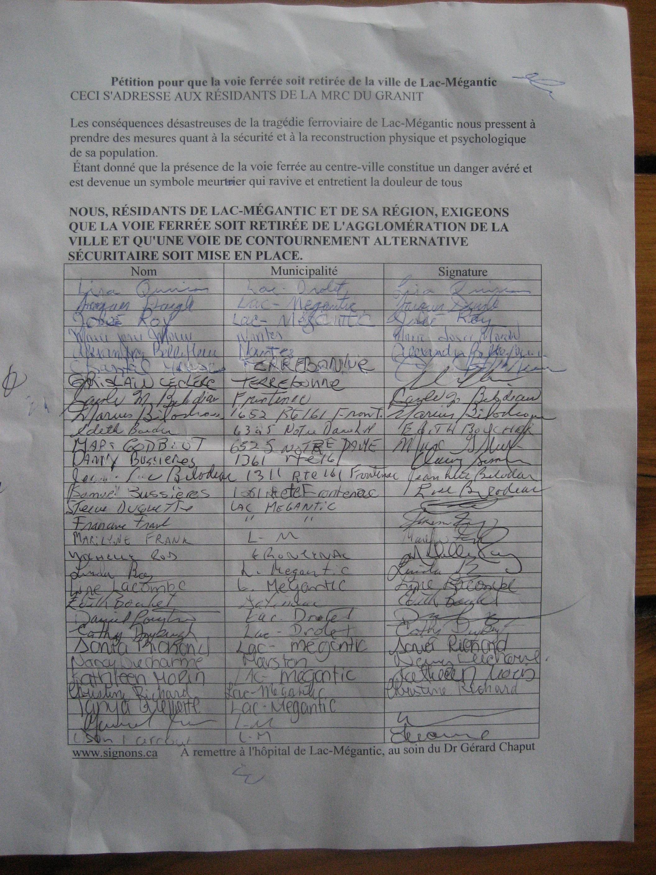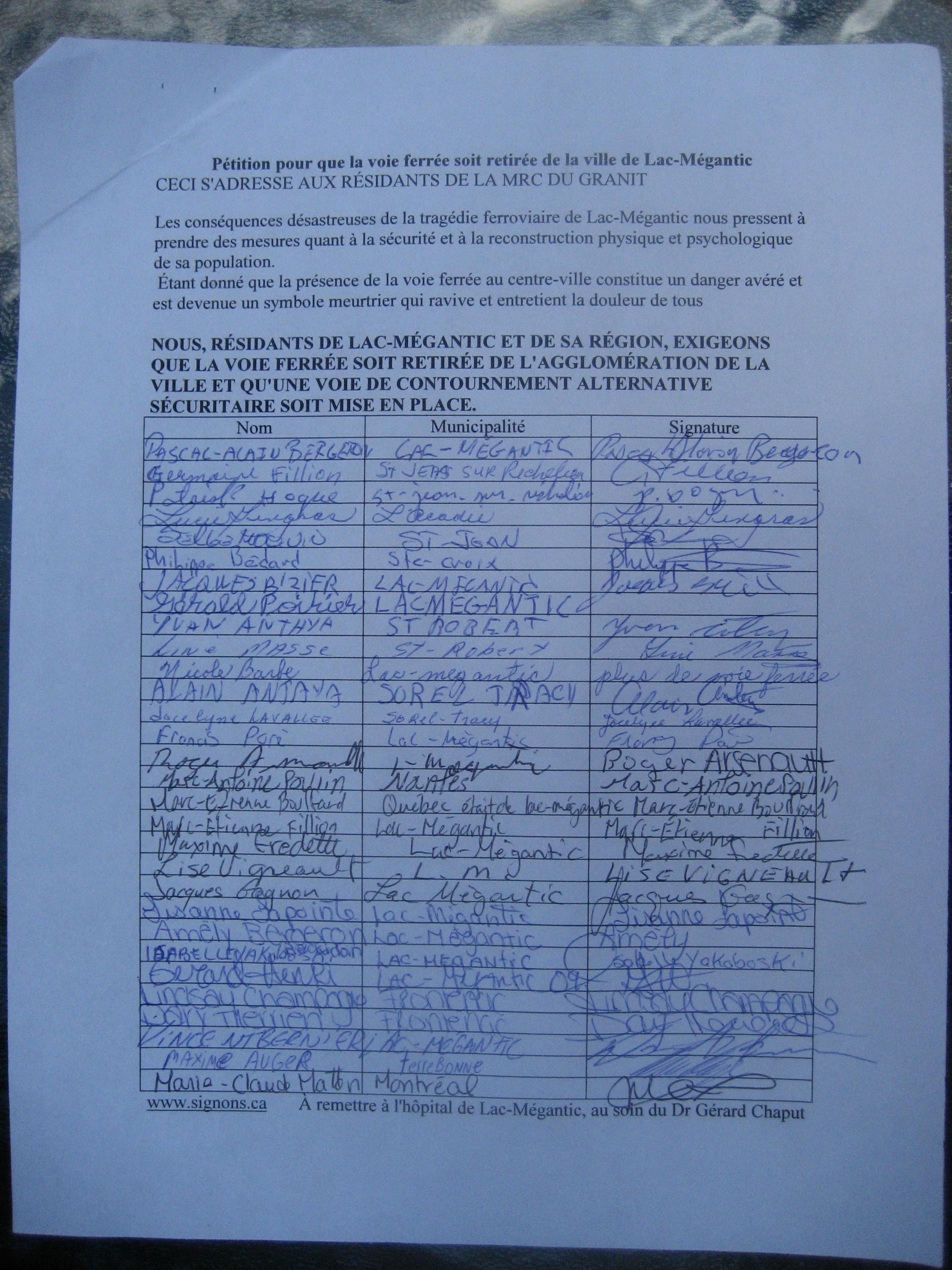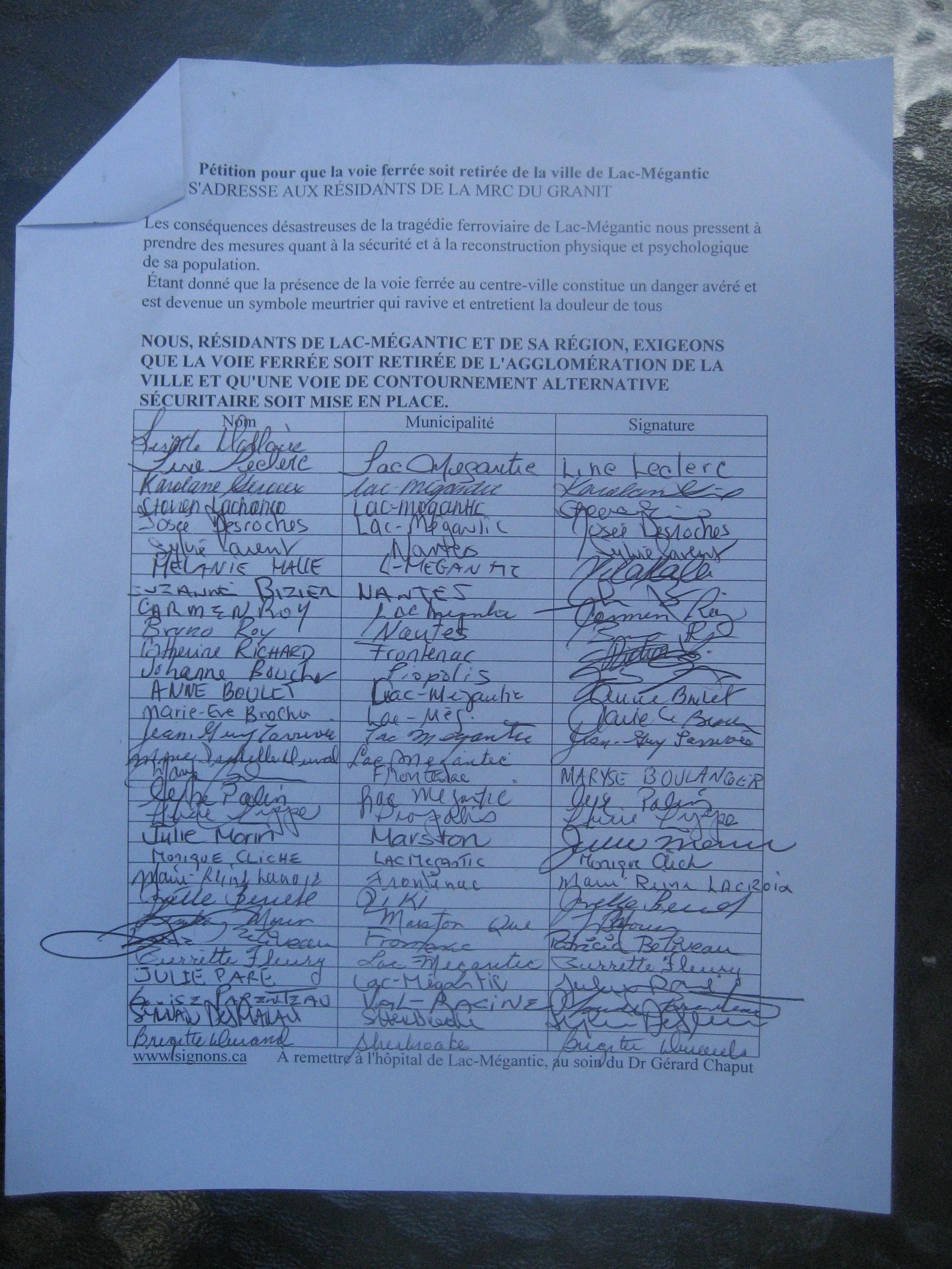 - Pétition pour re-localiser la voie ferrée de Lac-Mégantic