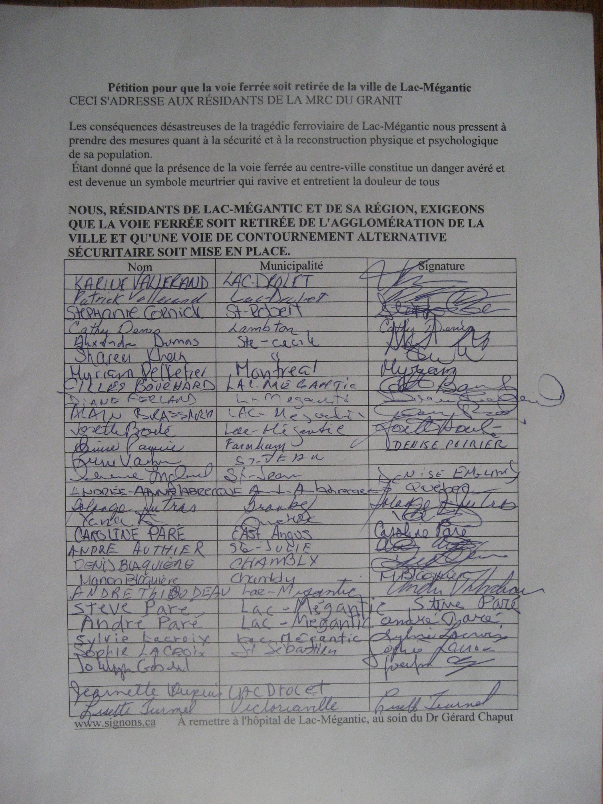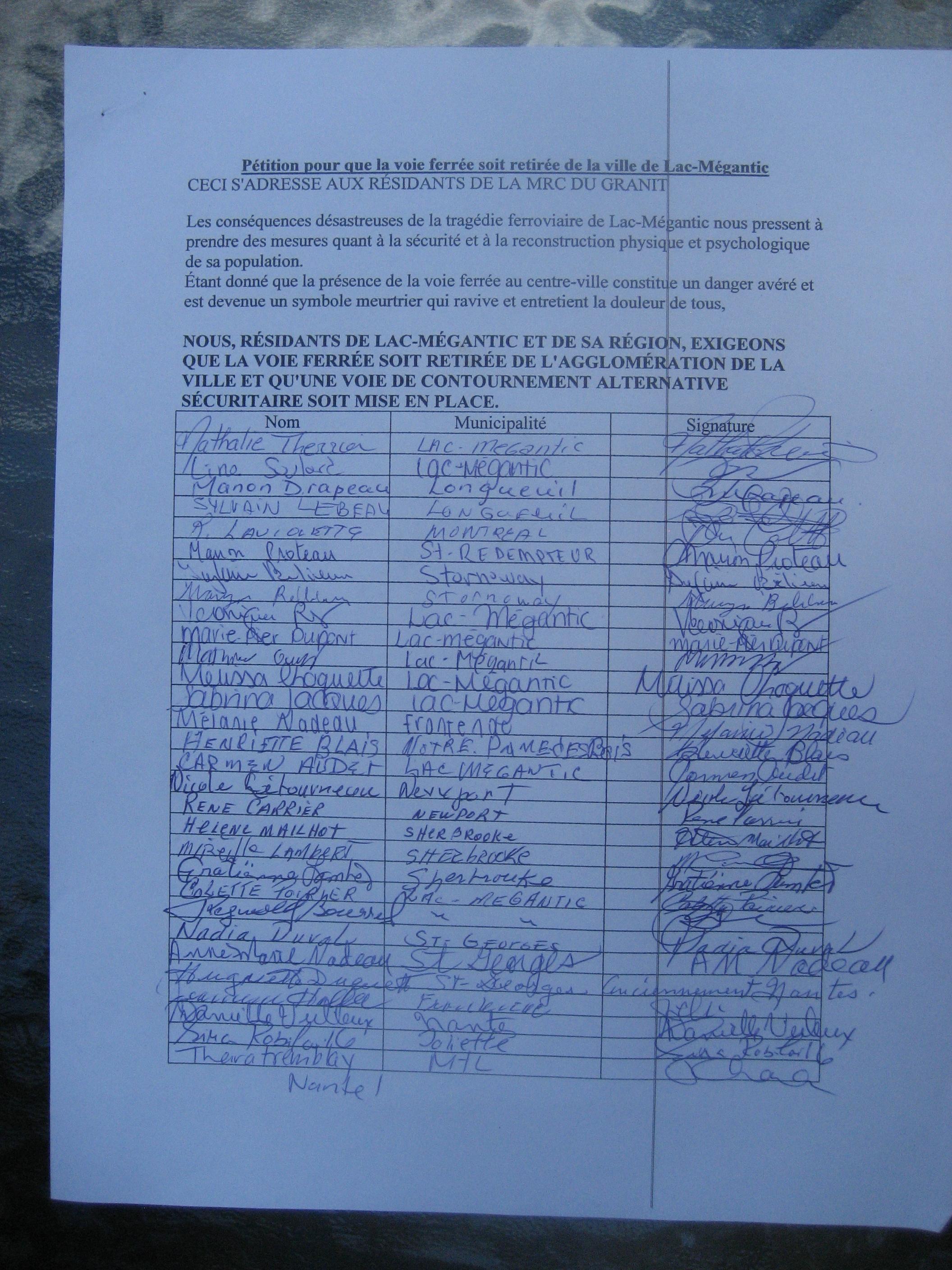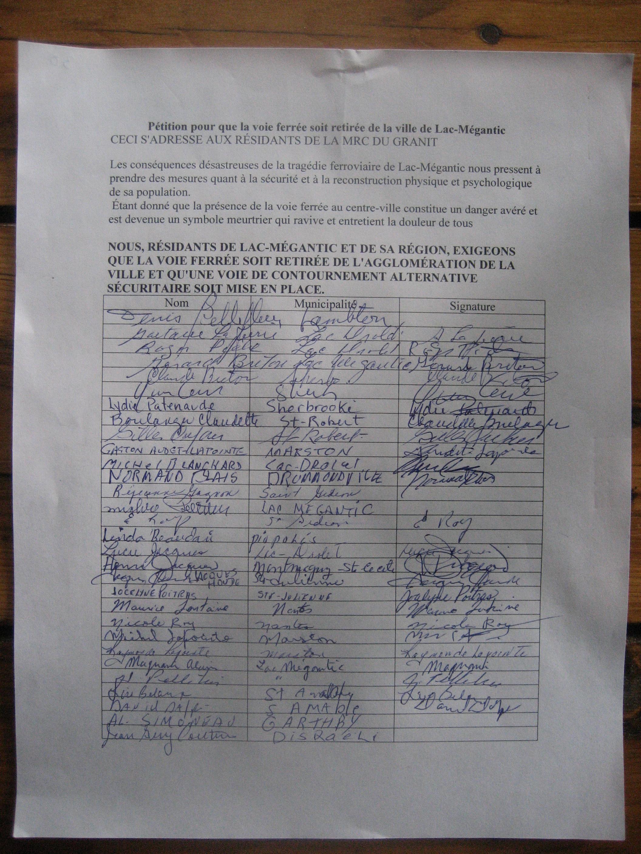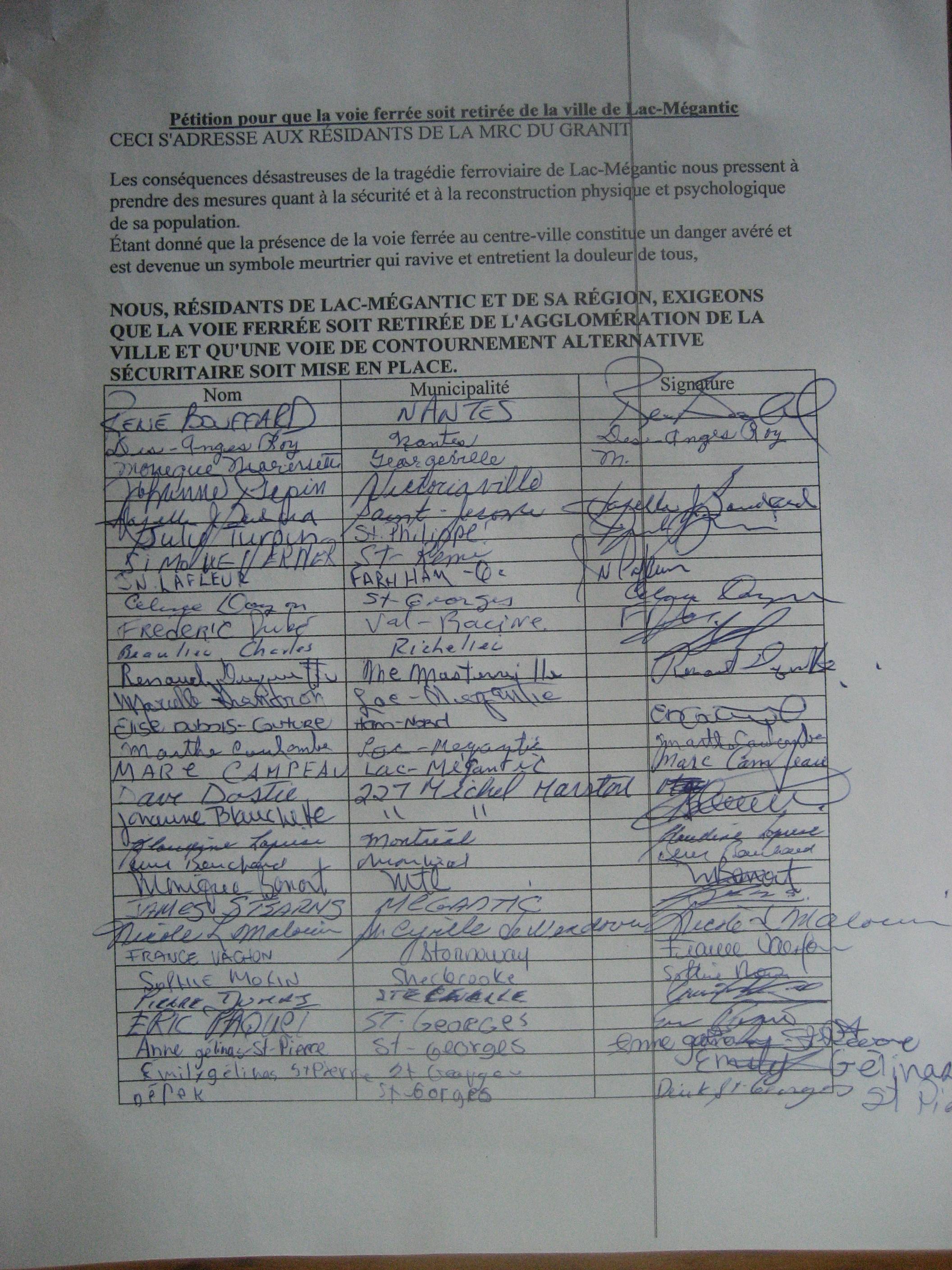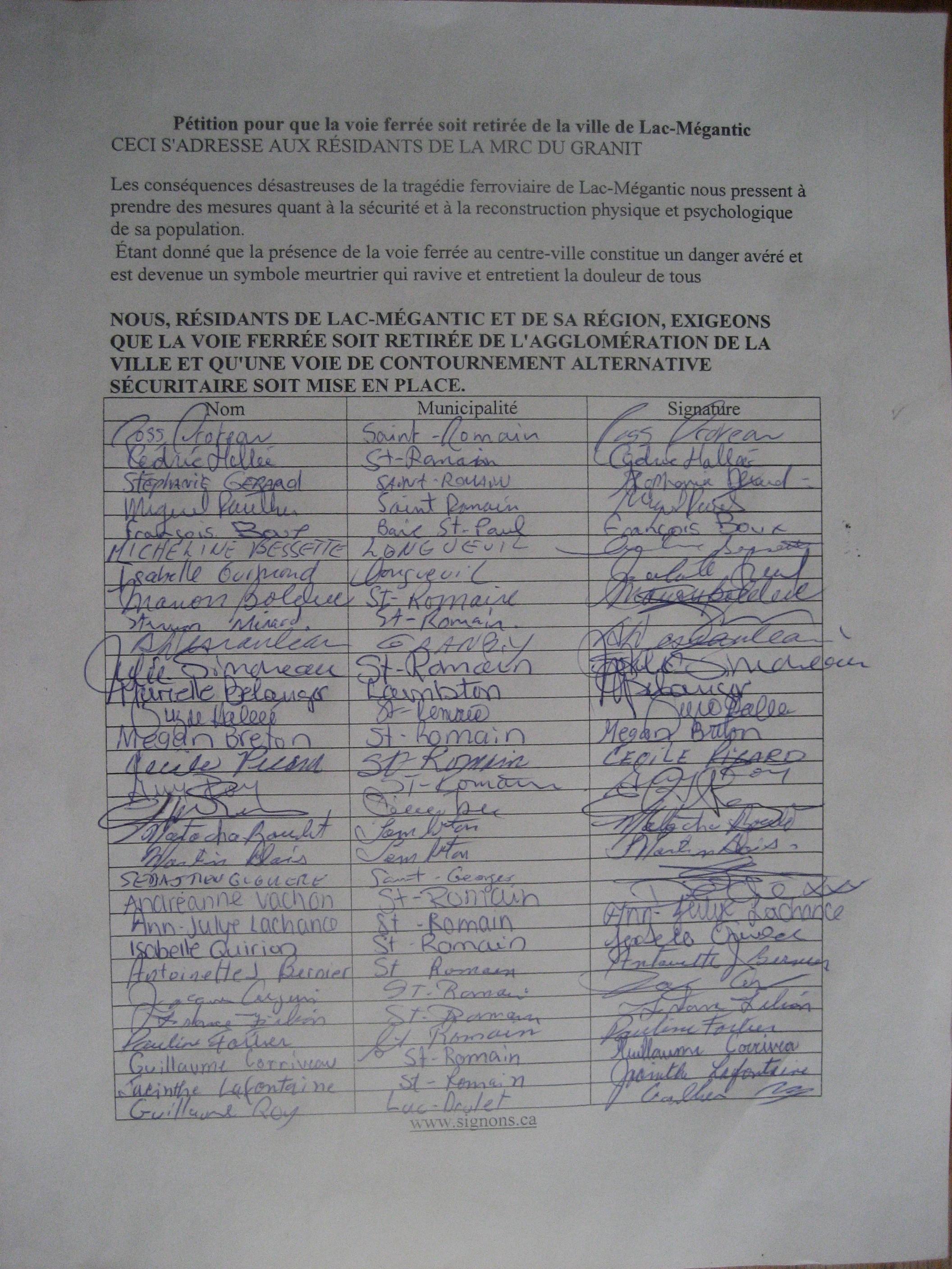 - Pétition pour re-localiser la voie ferrée de Lac-Mégantic