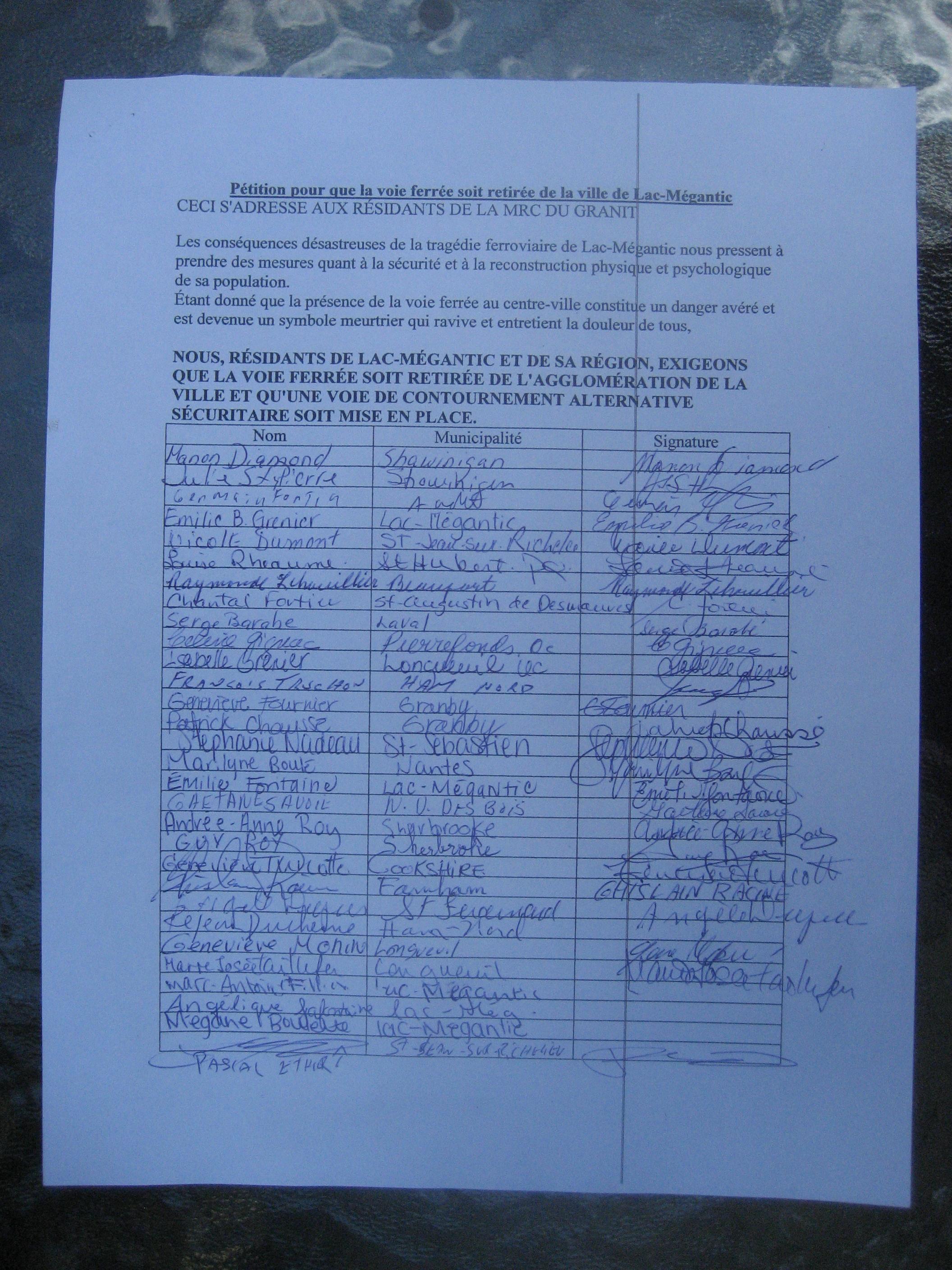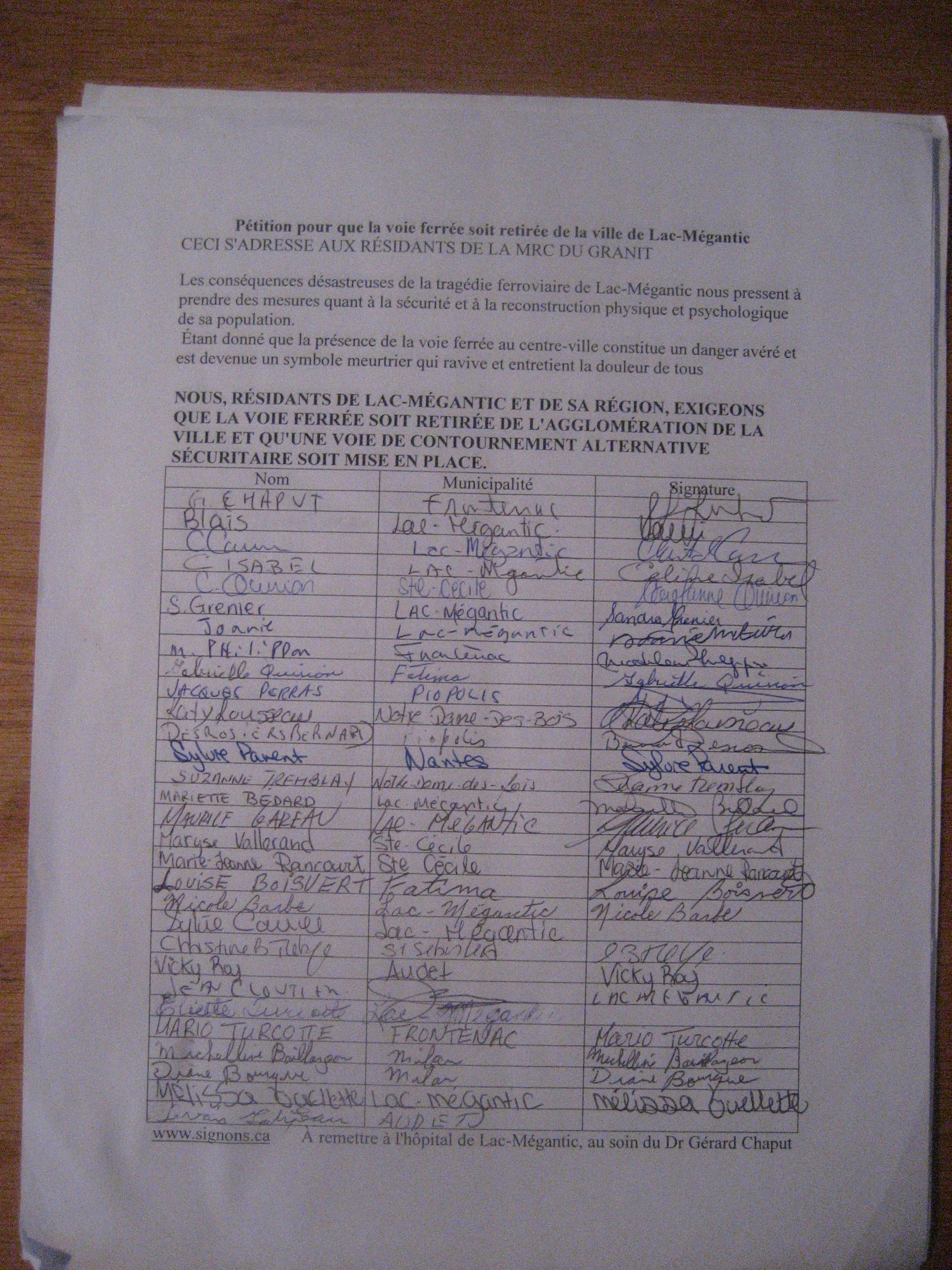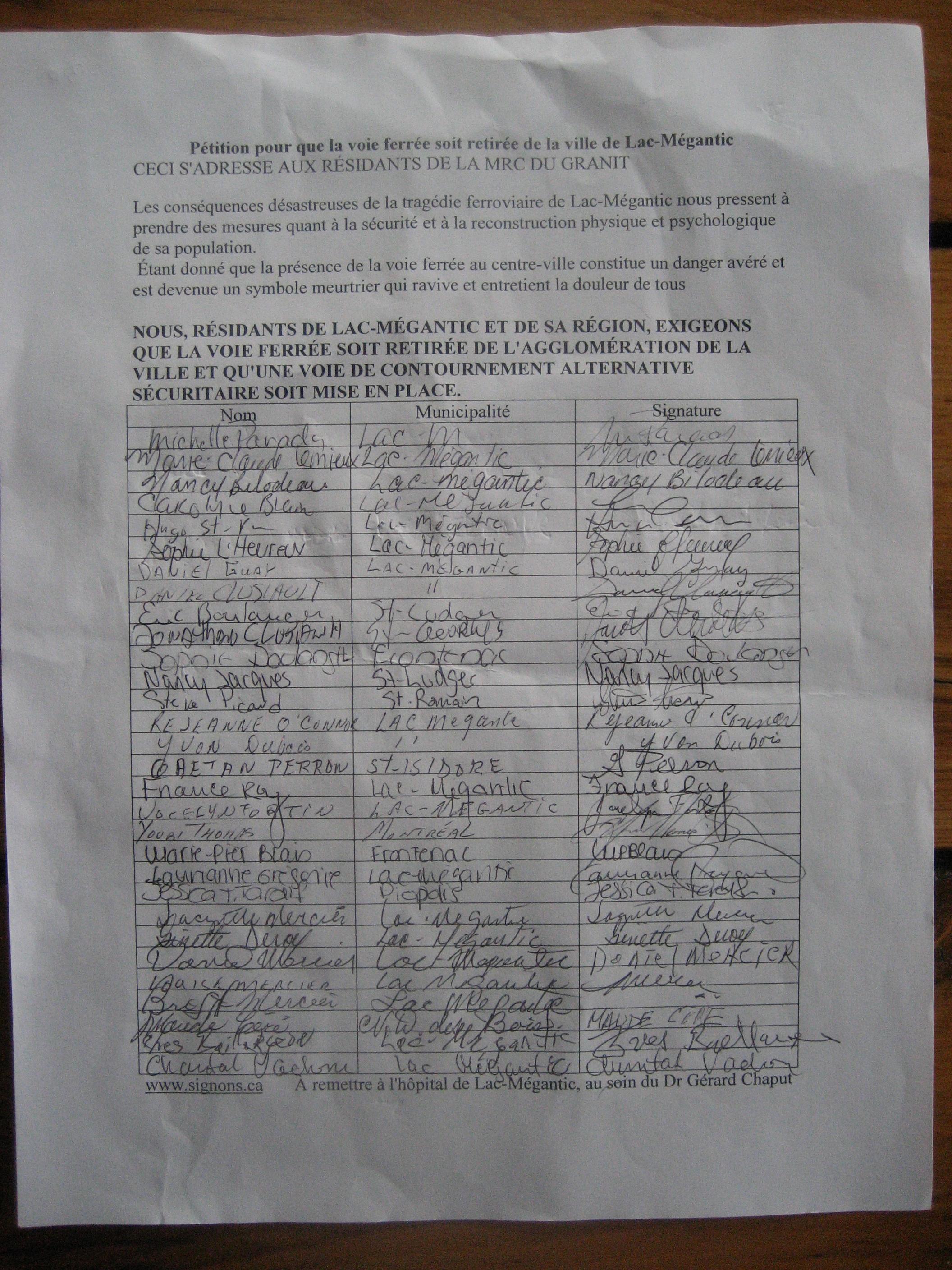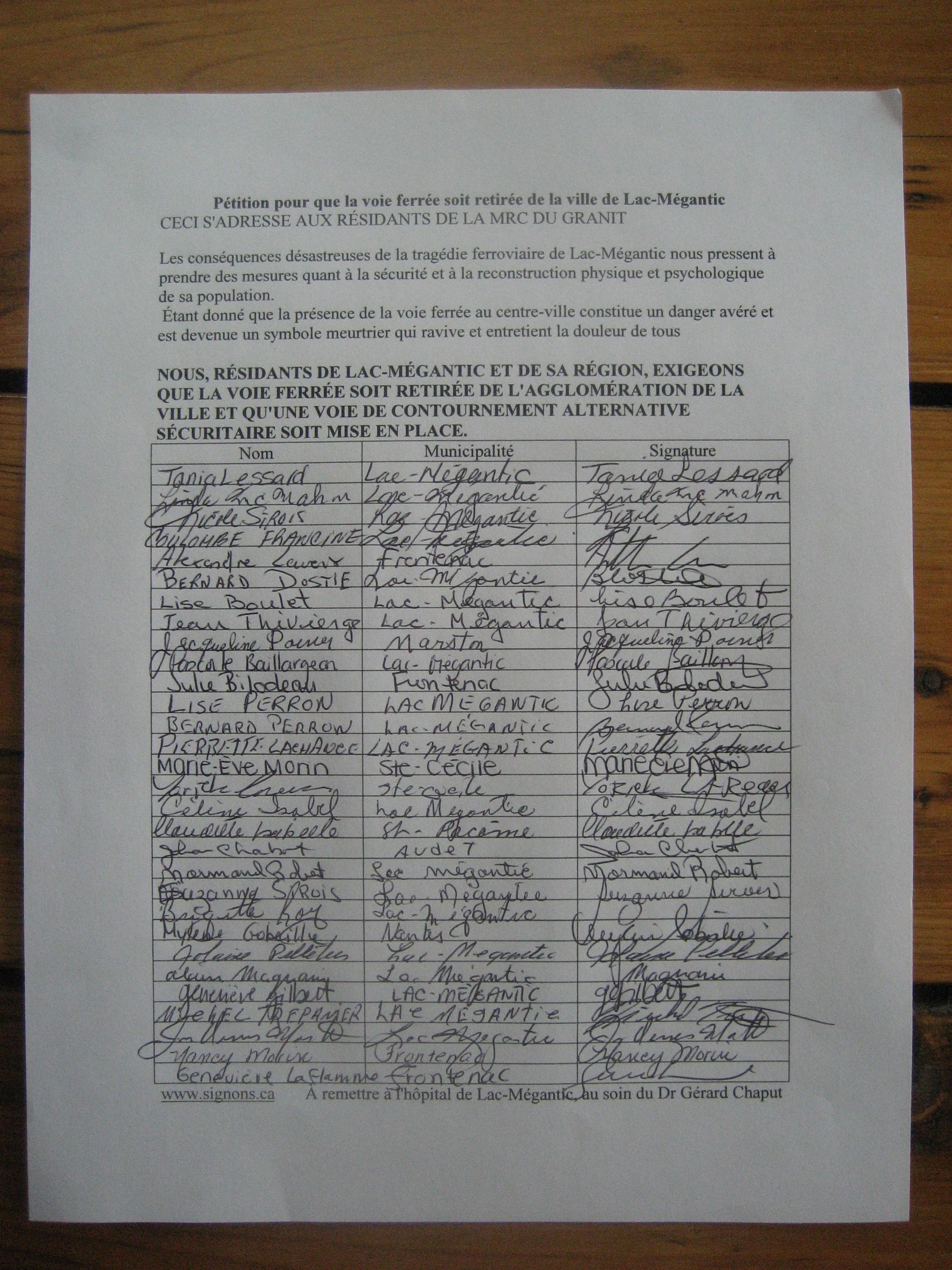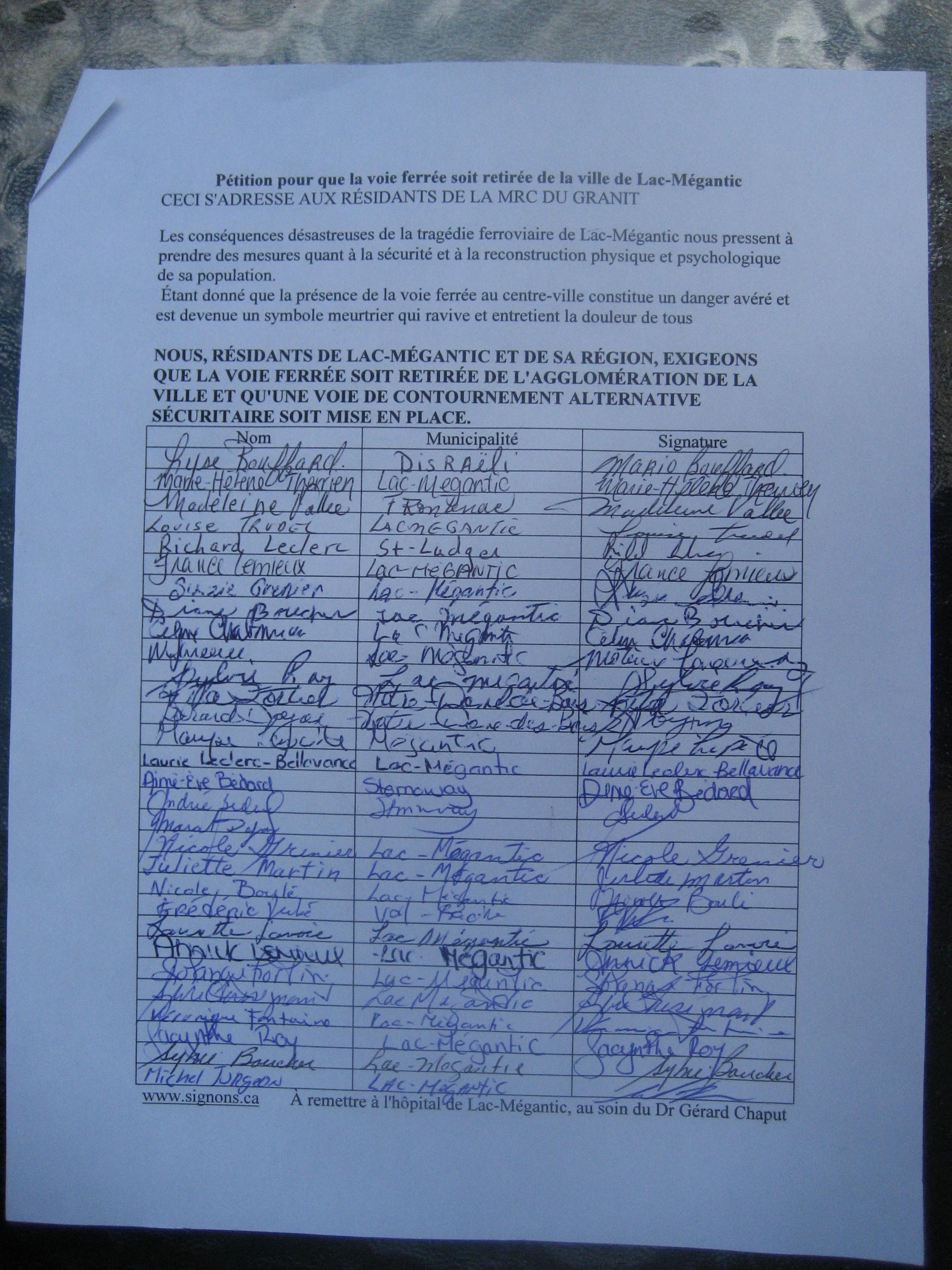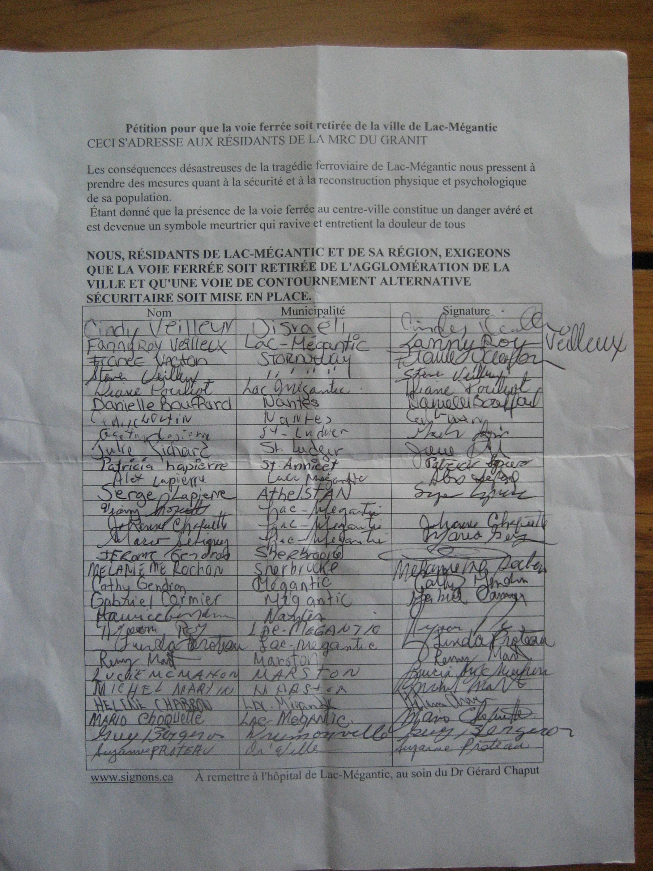 - Pétition pour re-localiser la voie ferrée de Lac-Mégantic