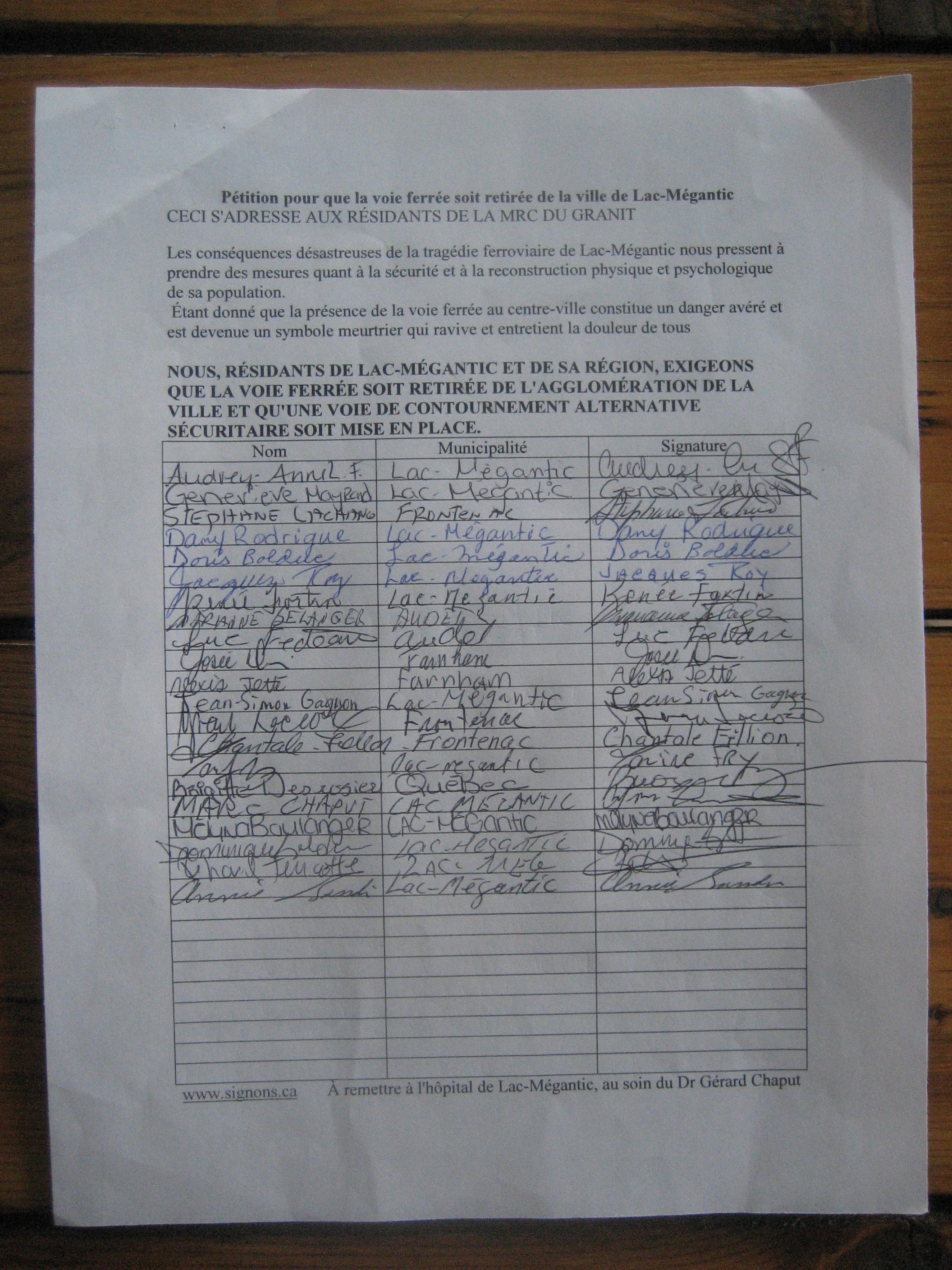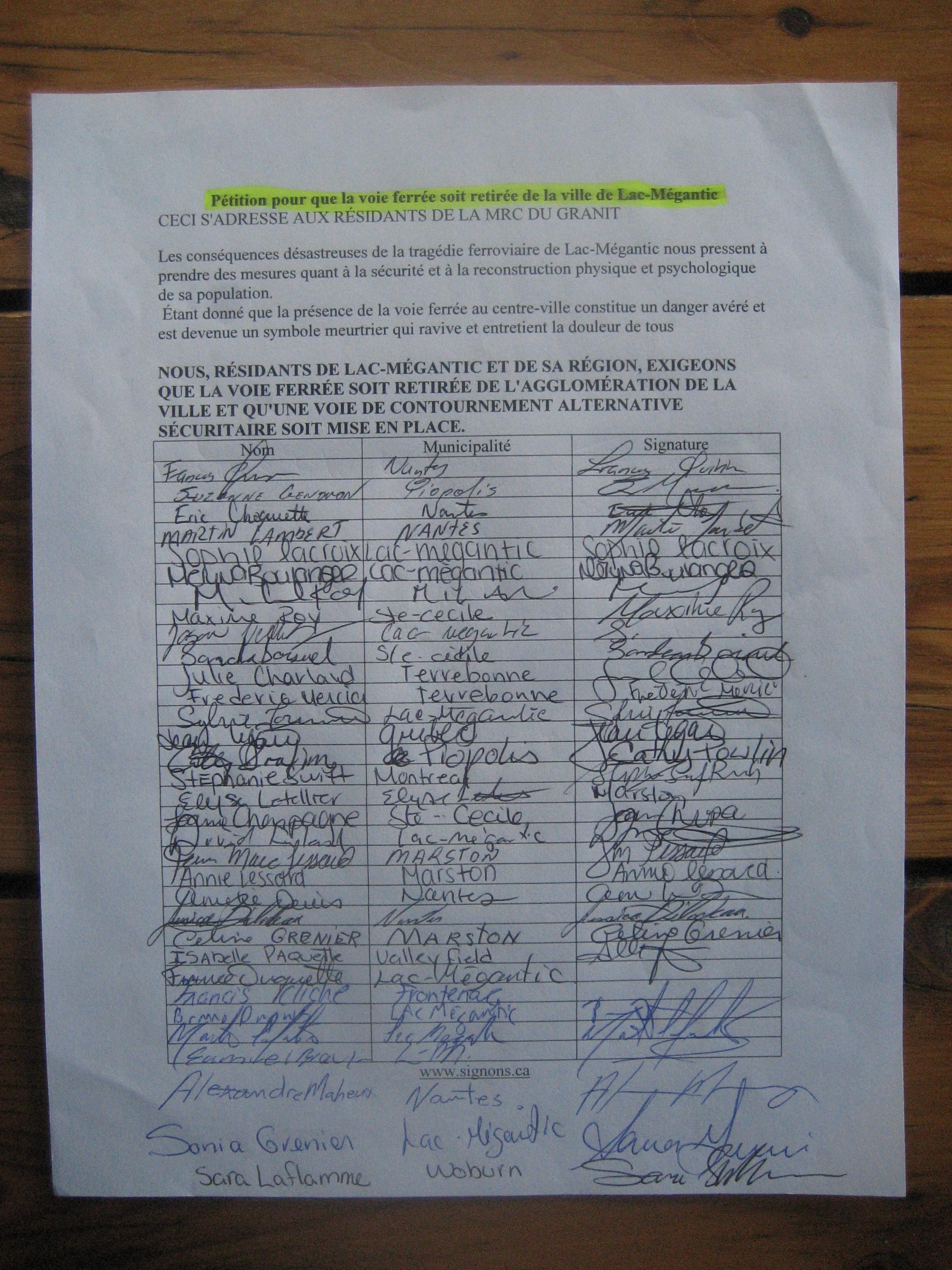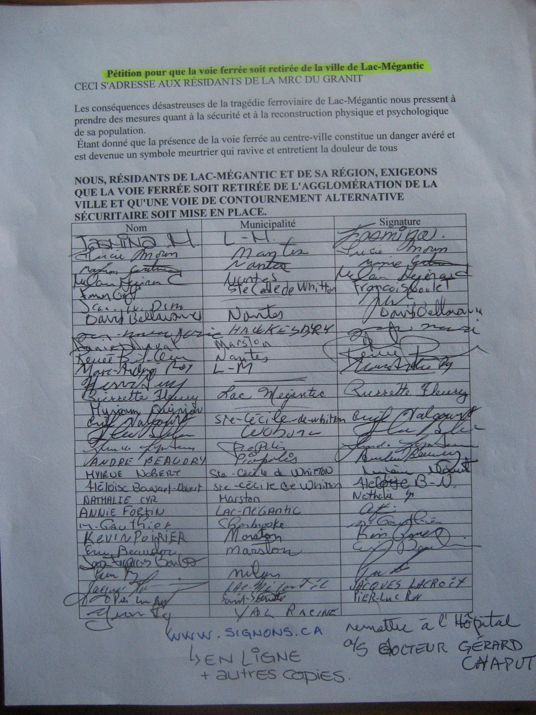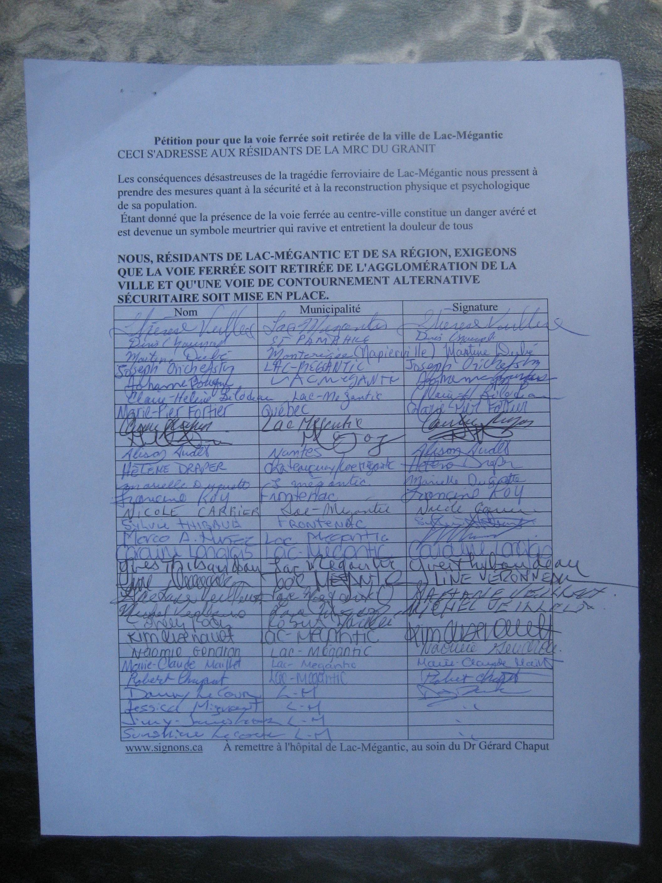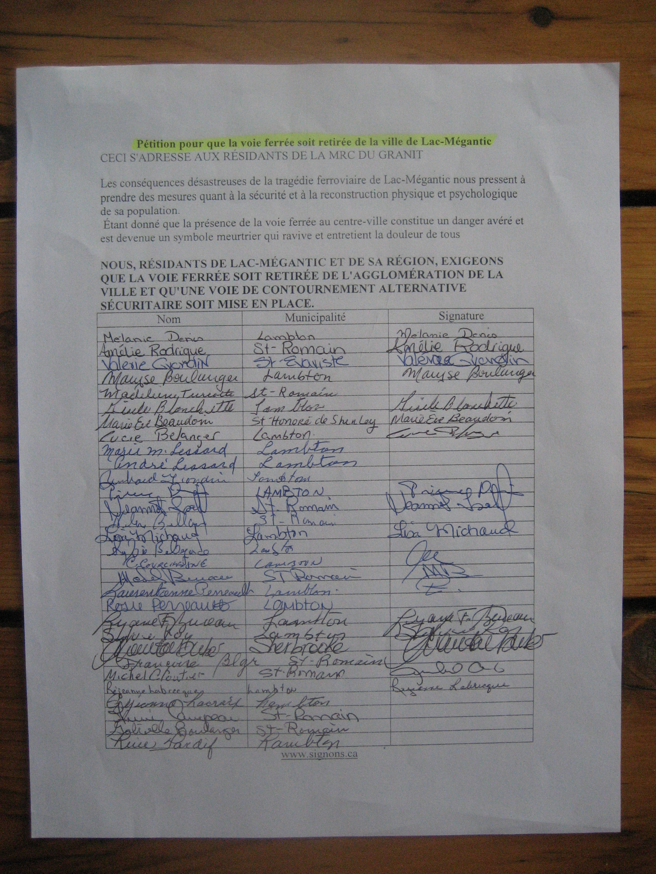 - Pétition pour re-localiser la voie ferrée de Lac-Mégantic