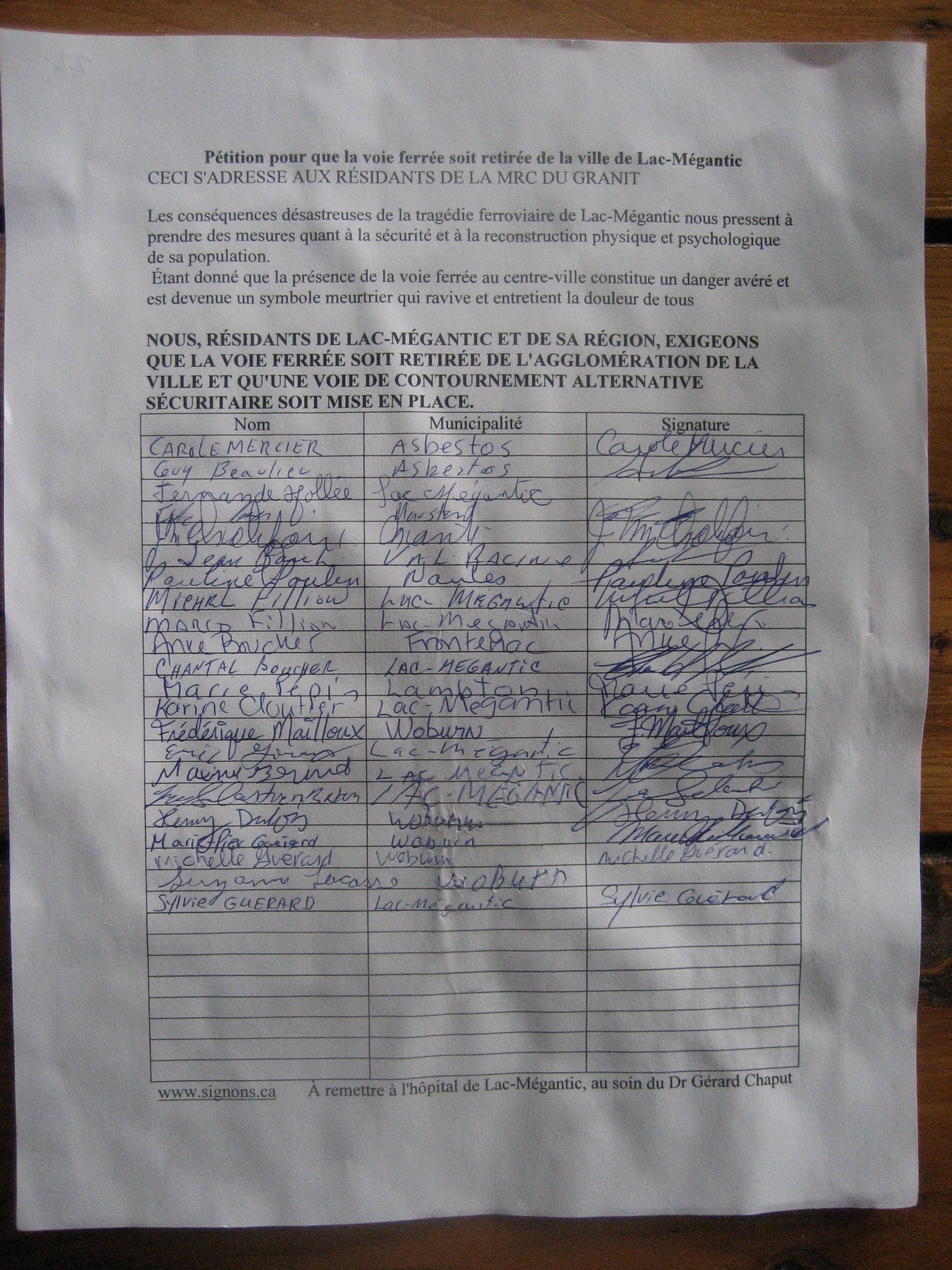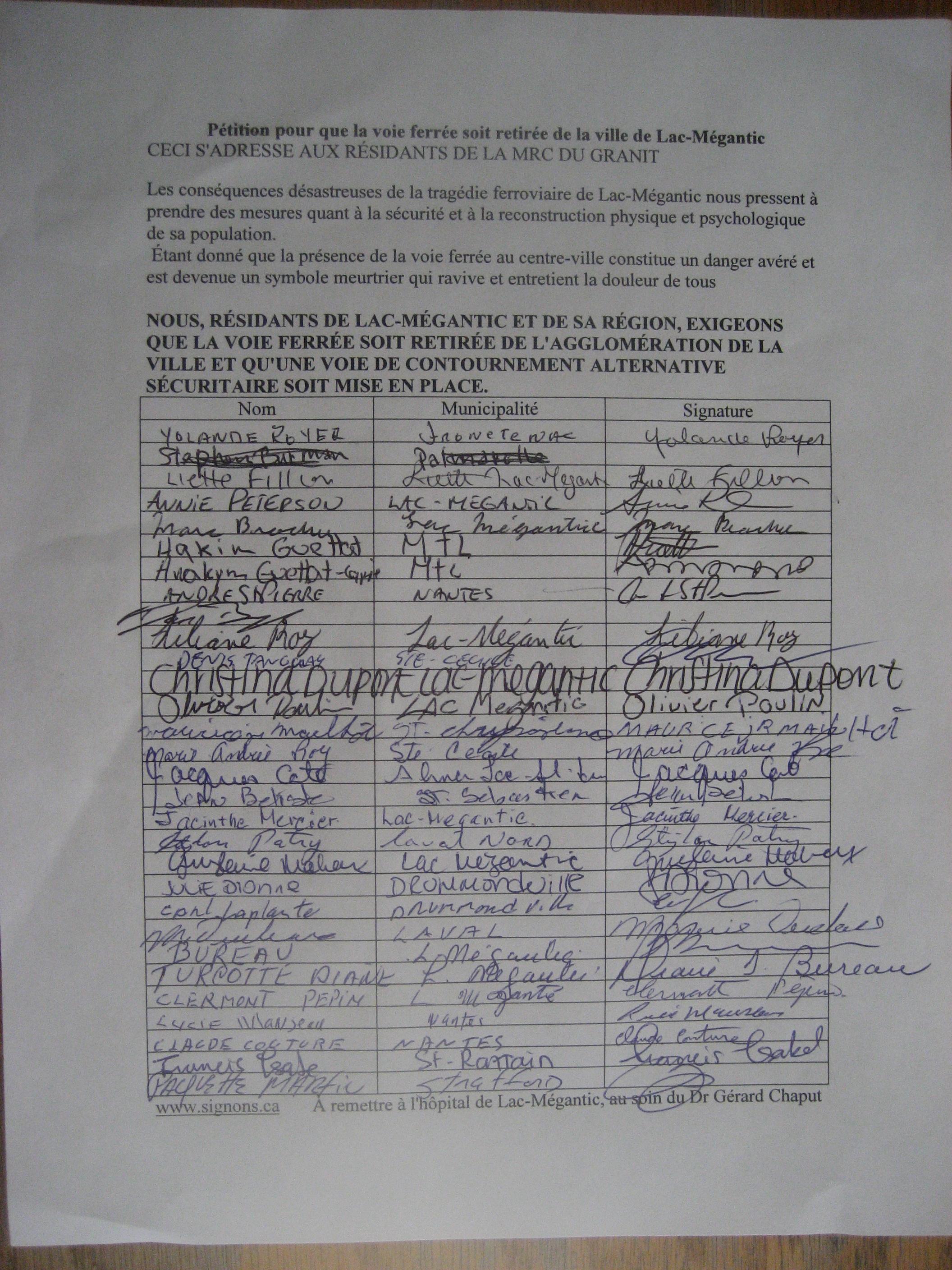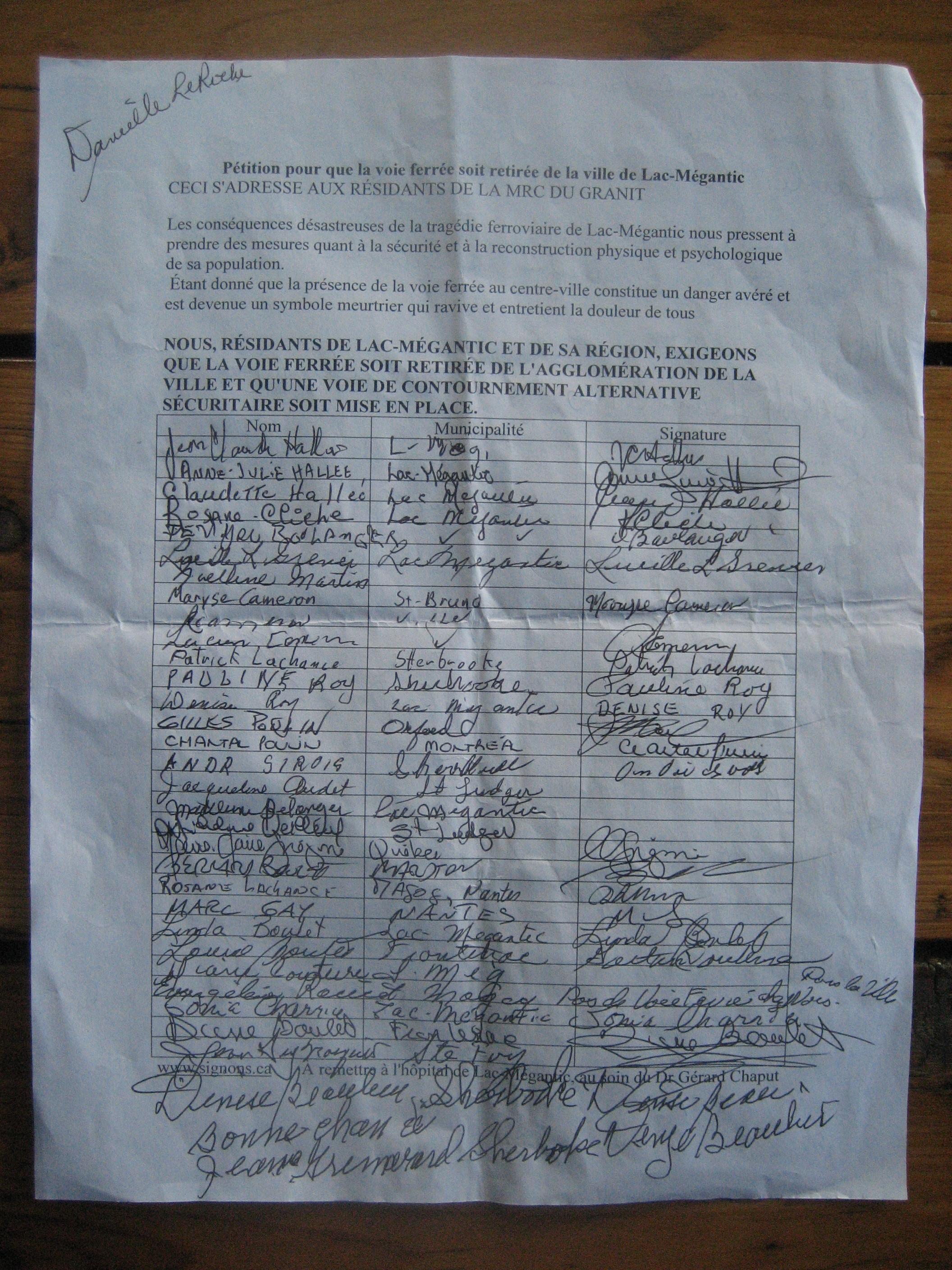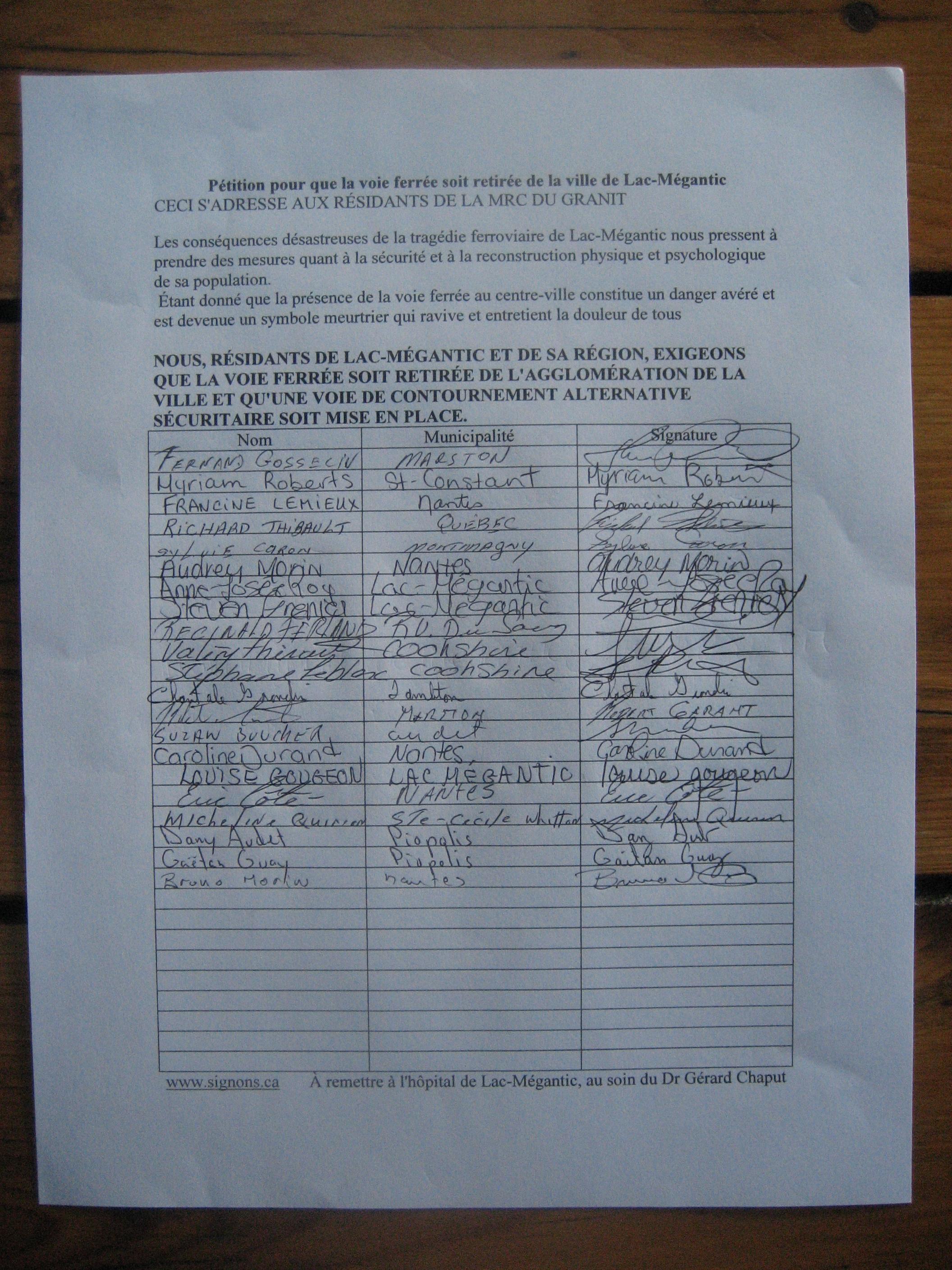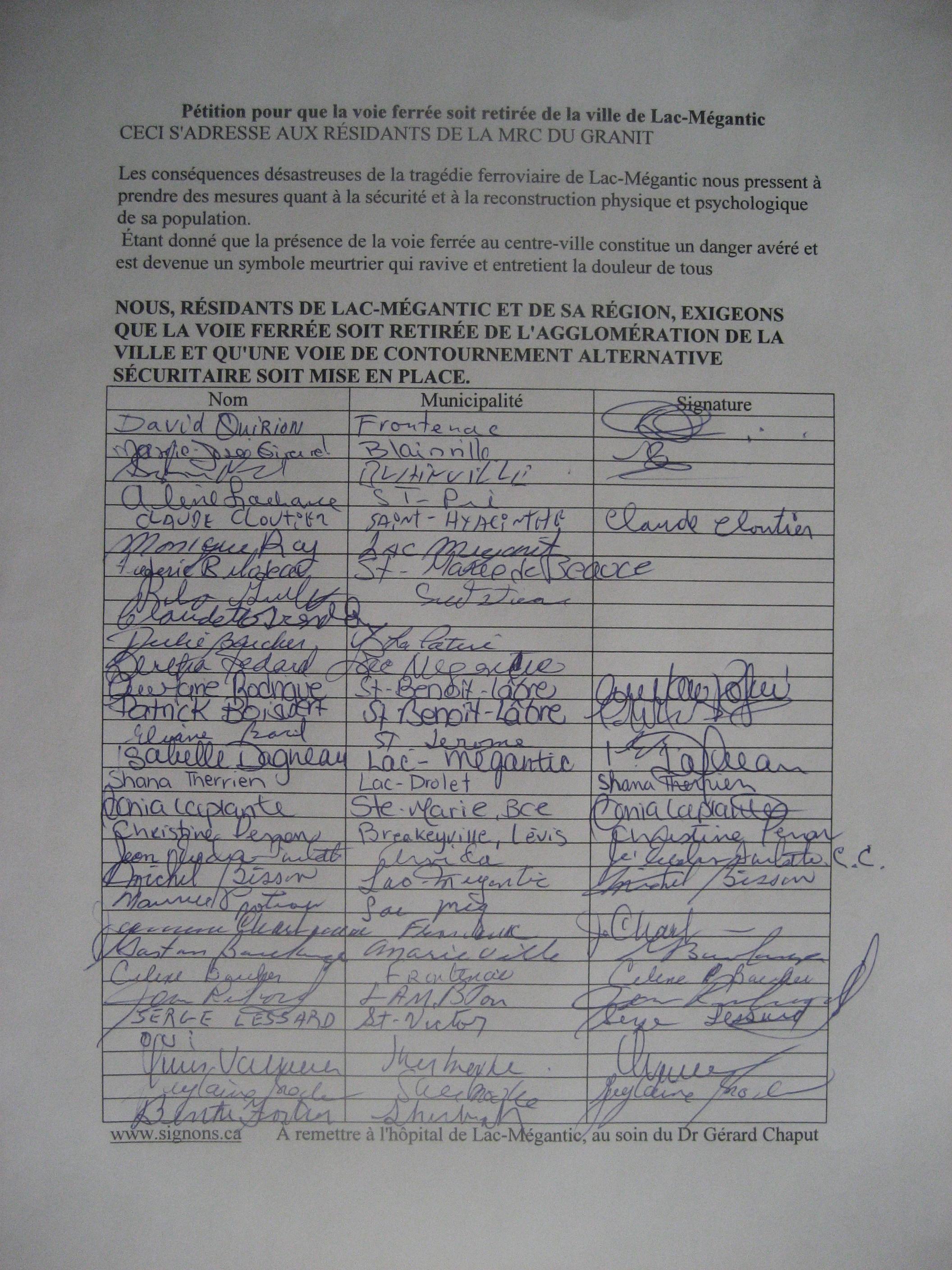 - Pétition pour re-localiser la voie ferrée de Lac-Mégantic