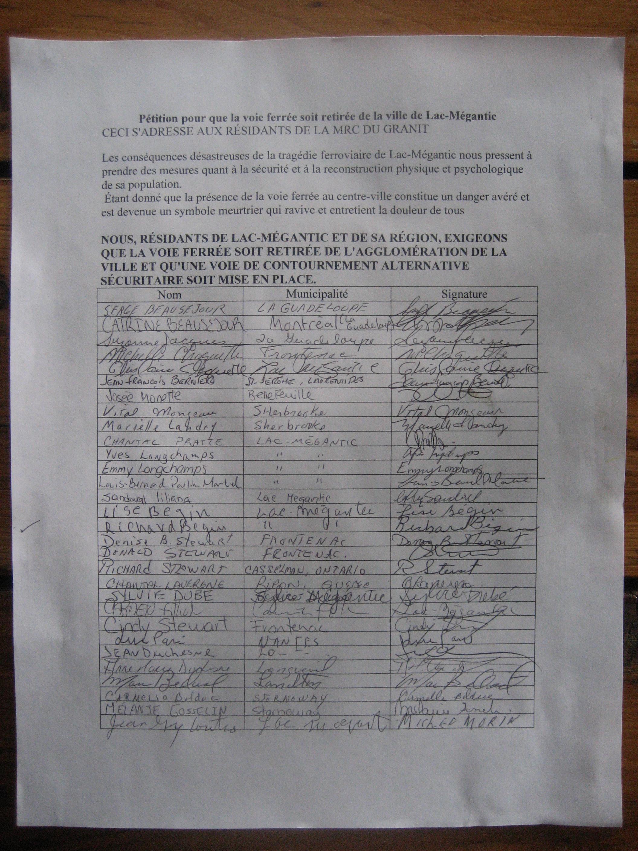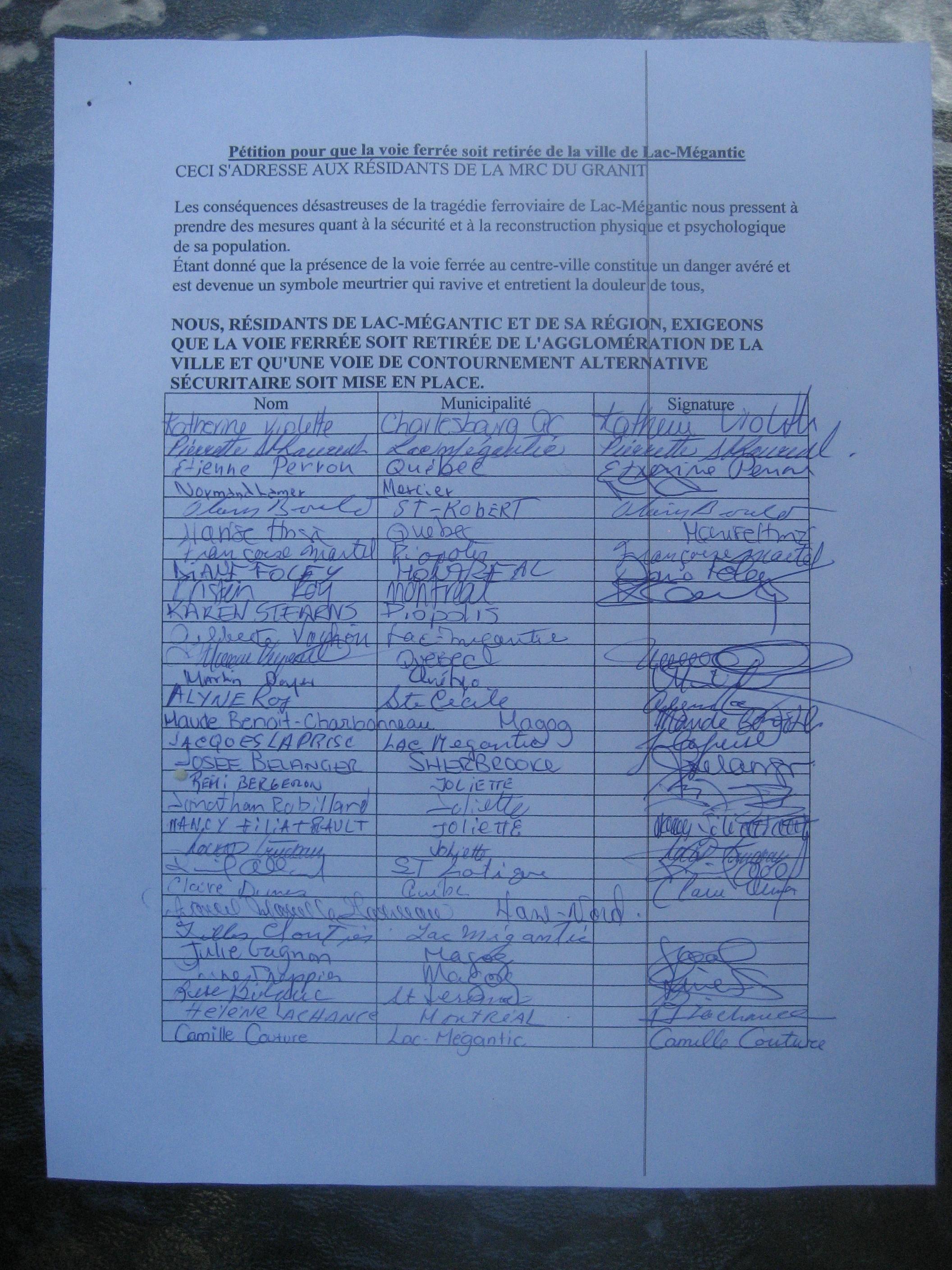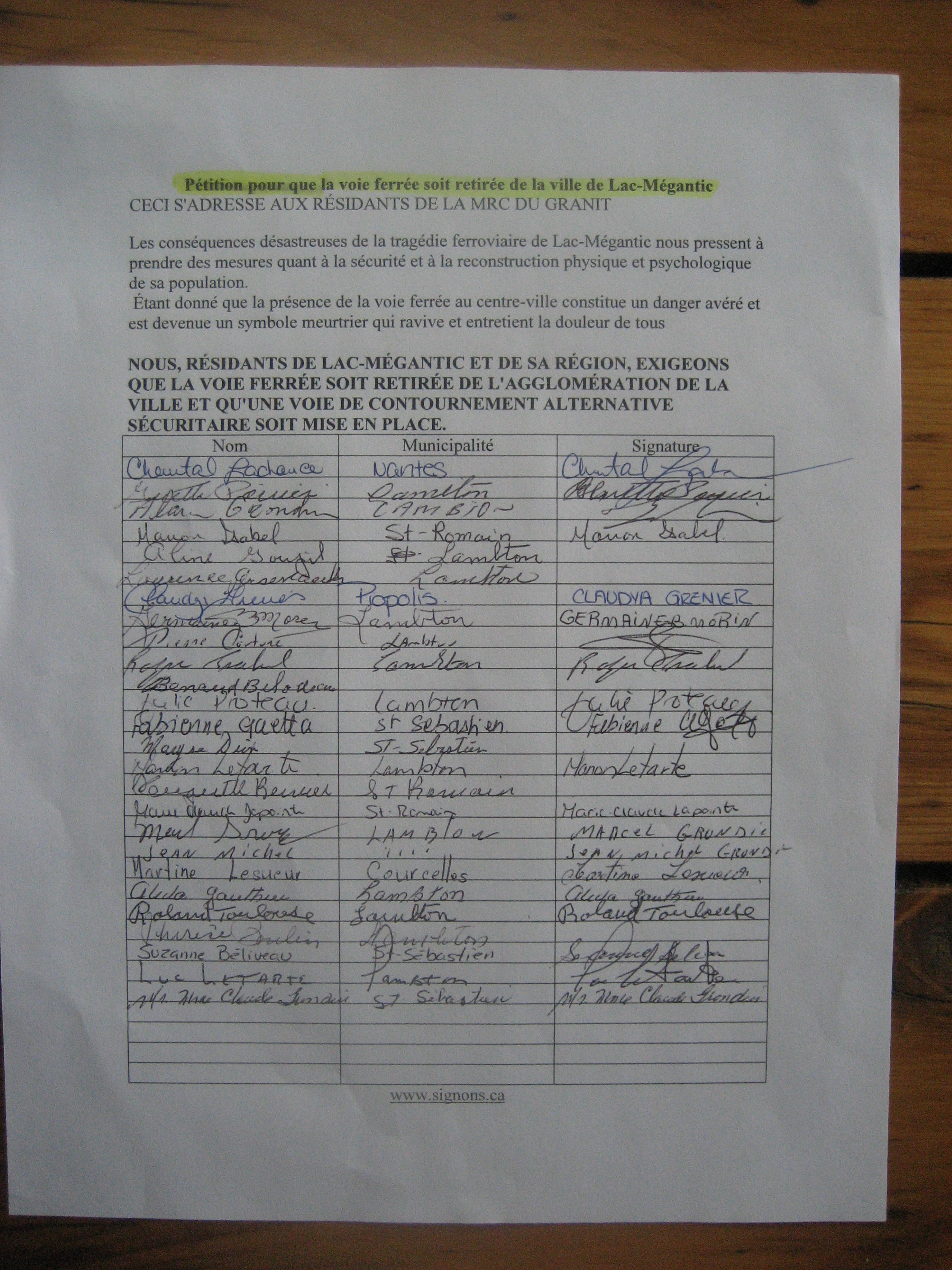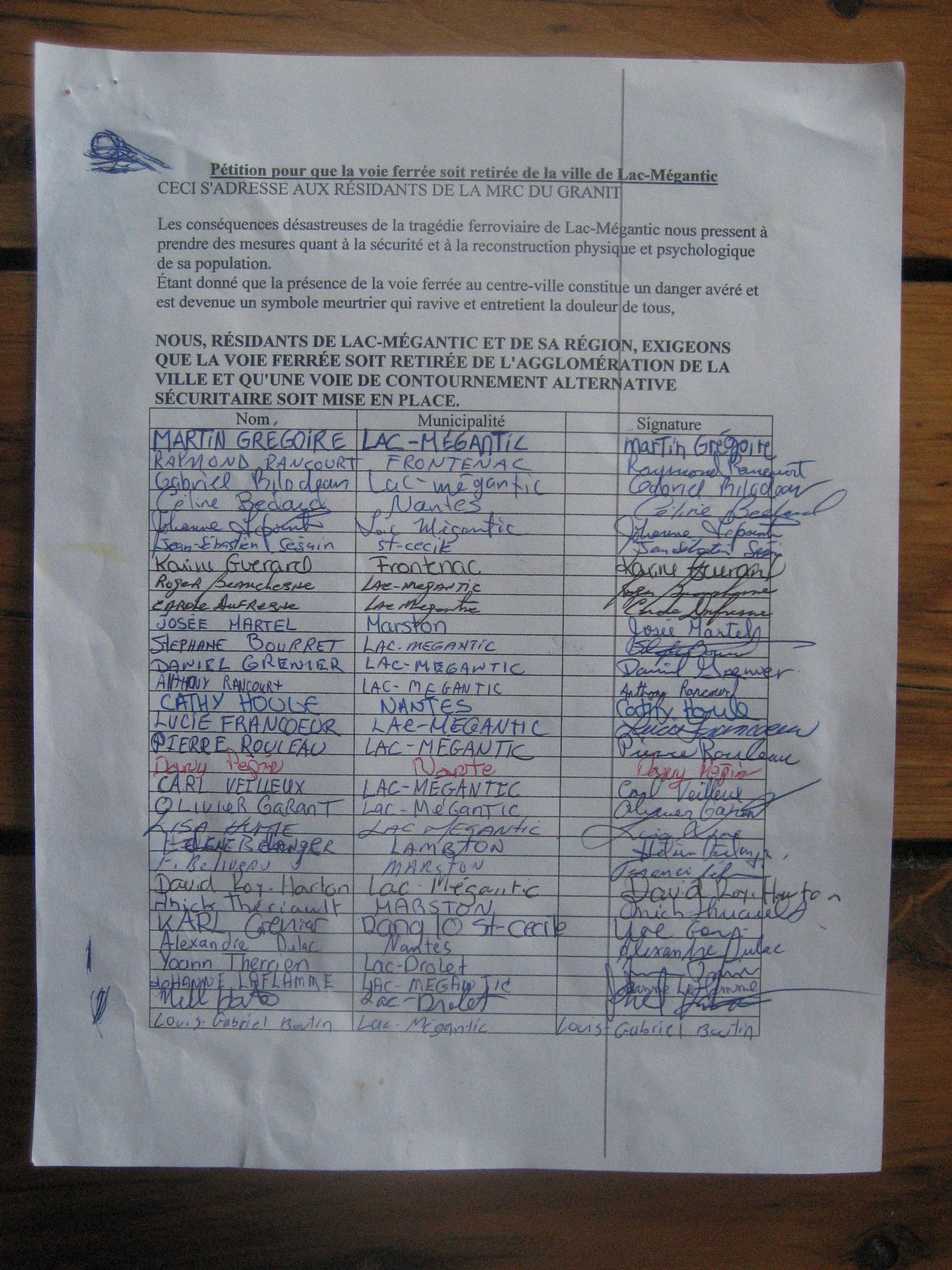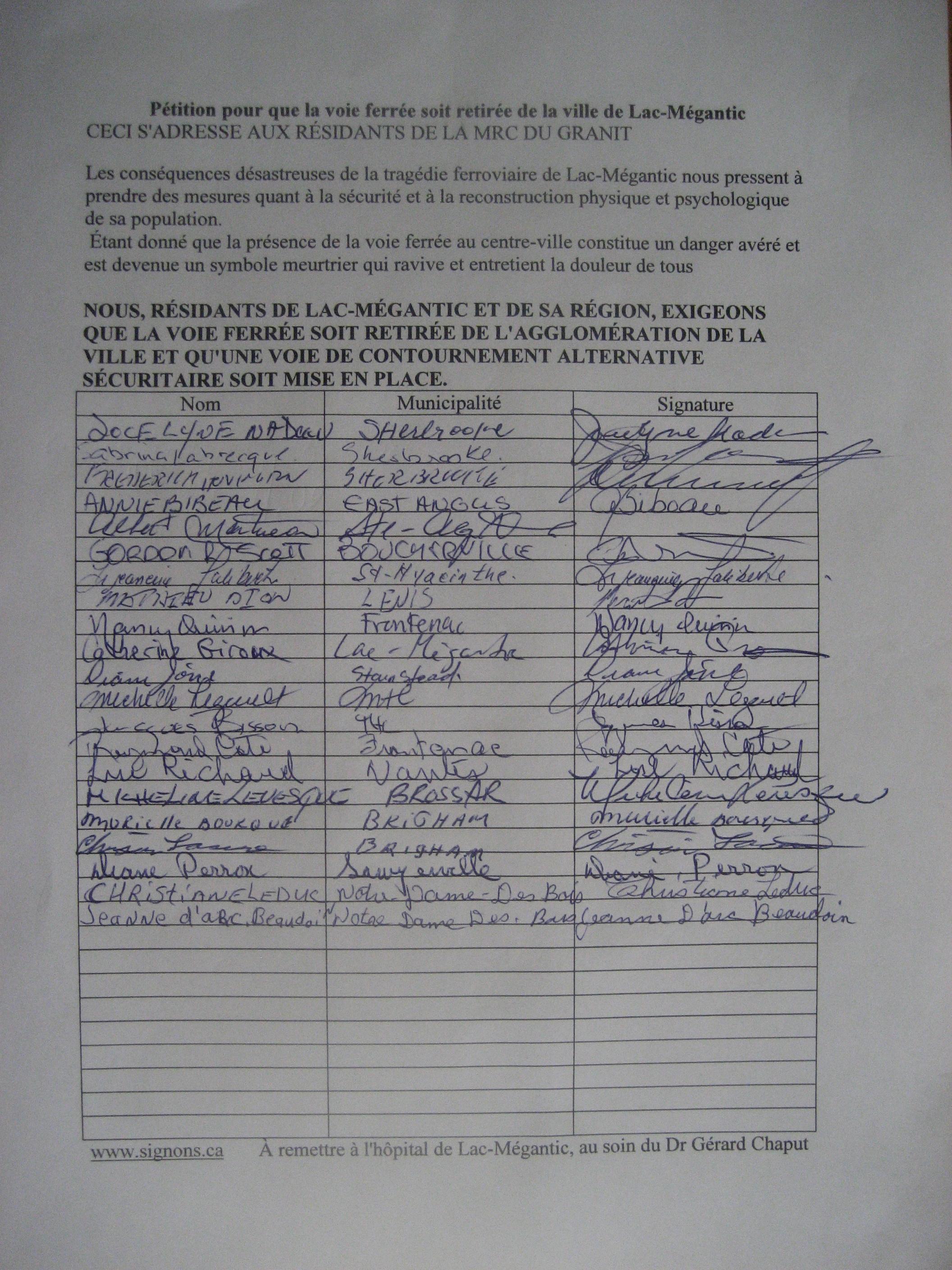 - Pétition pour re-localiser la voie ferrée de Lac-Mégantic