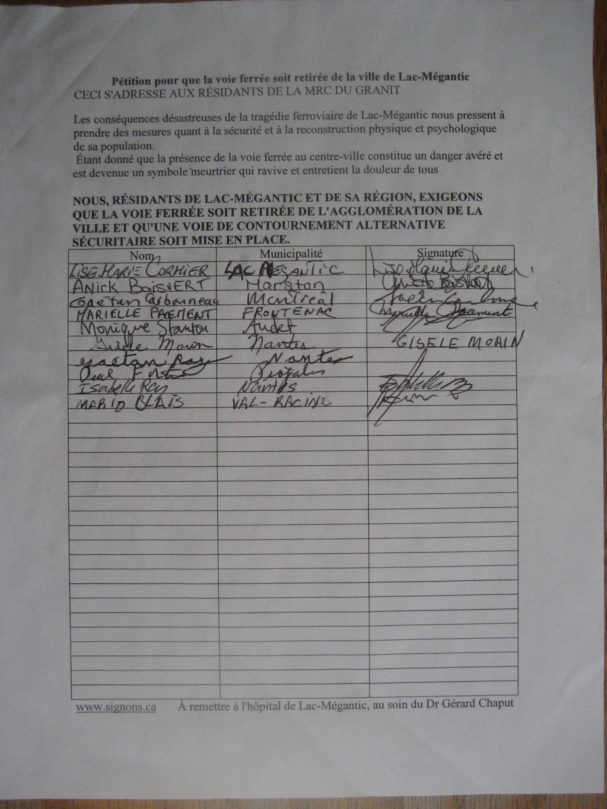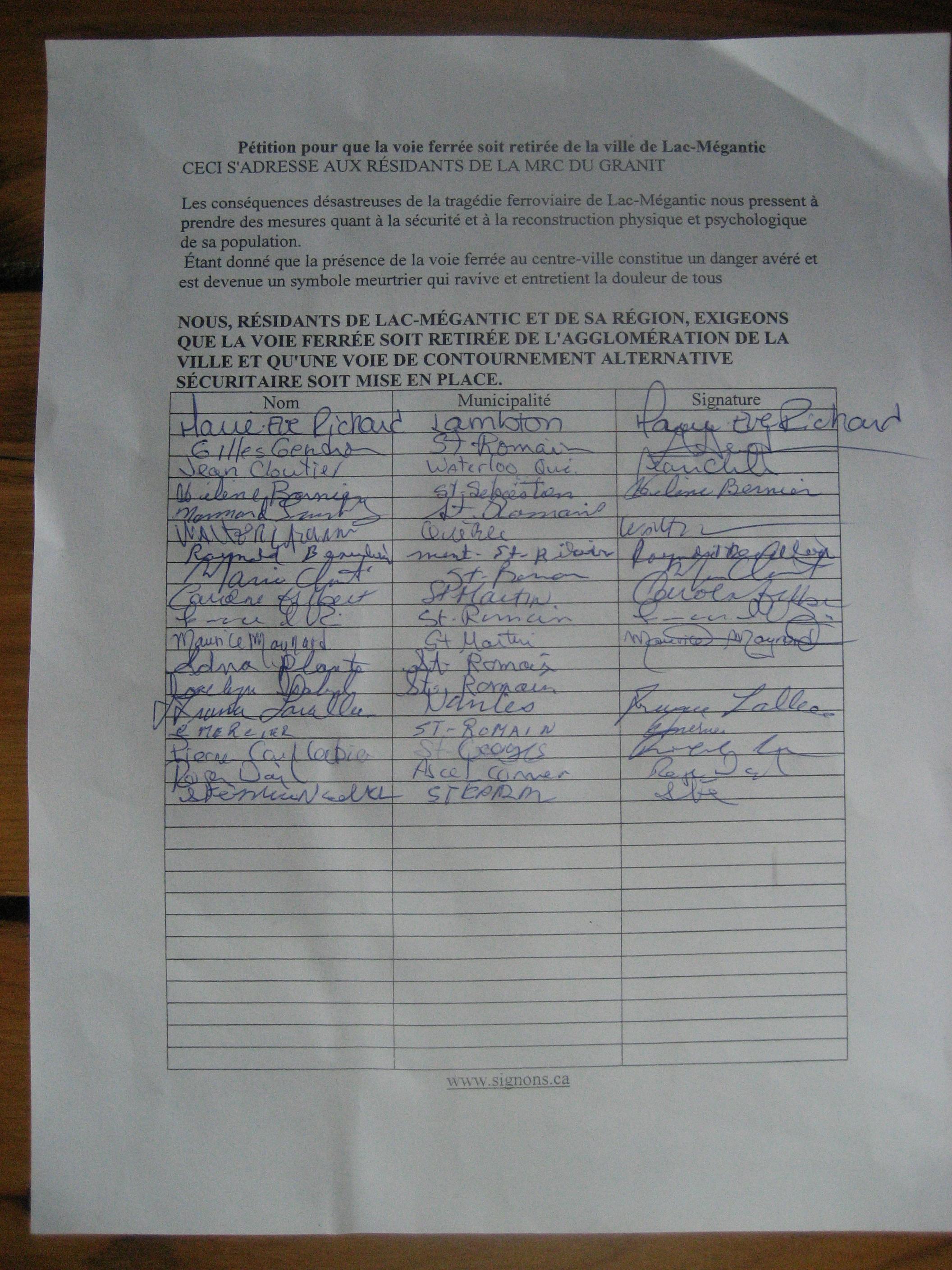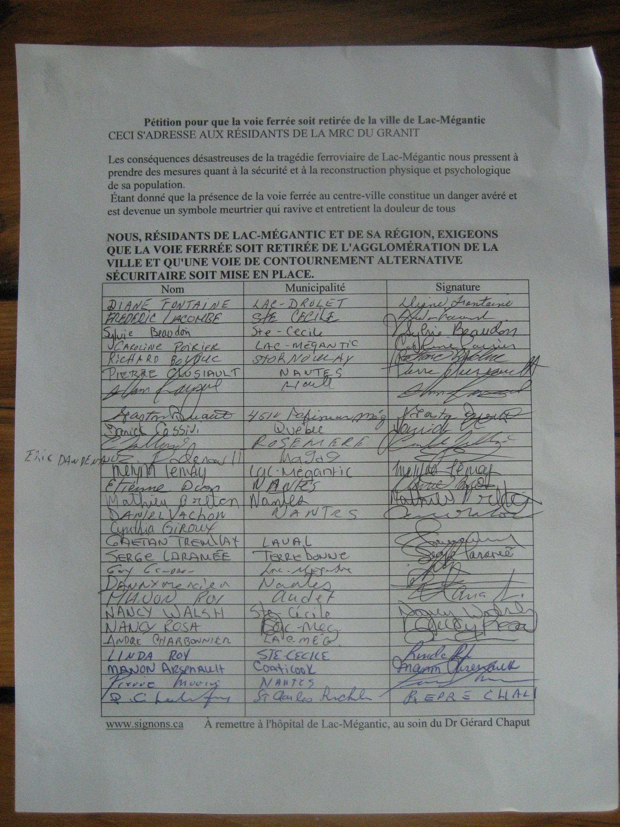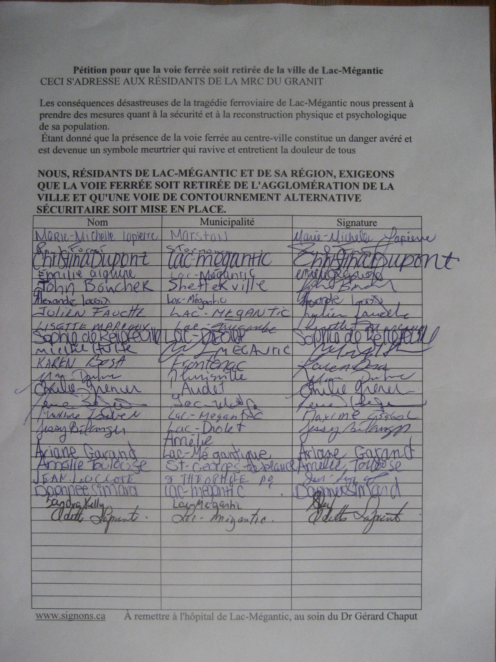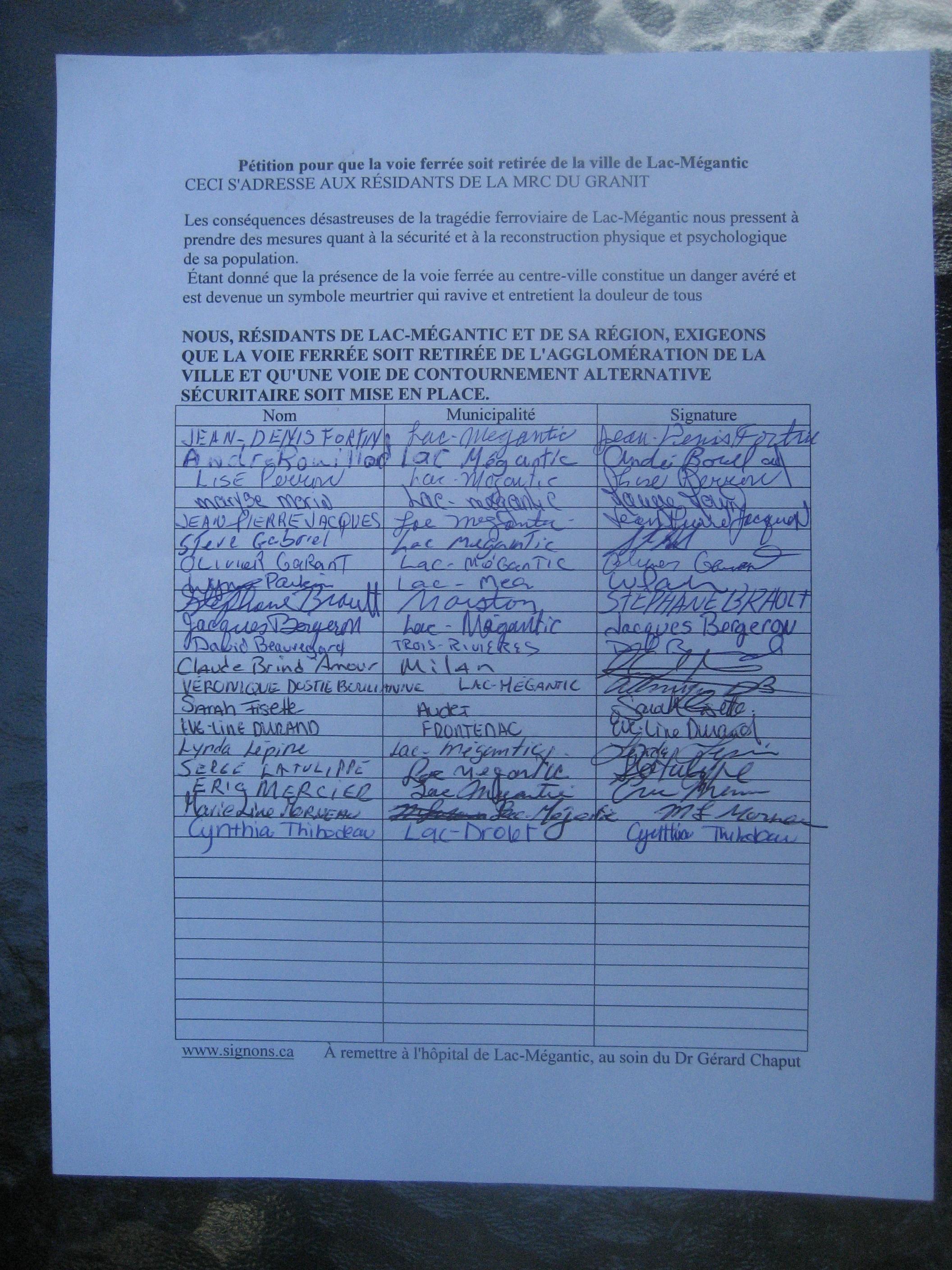 - Pétition pour re-localiser la voie ferrée de Lac-Mégantic
