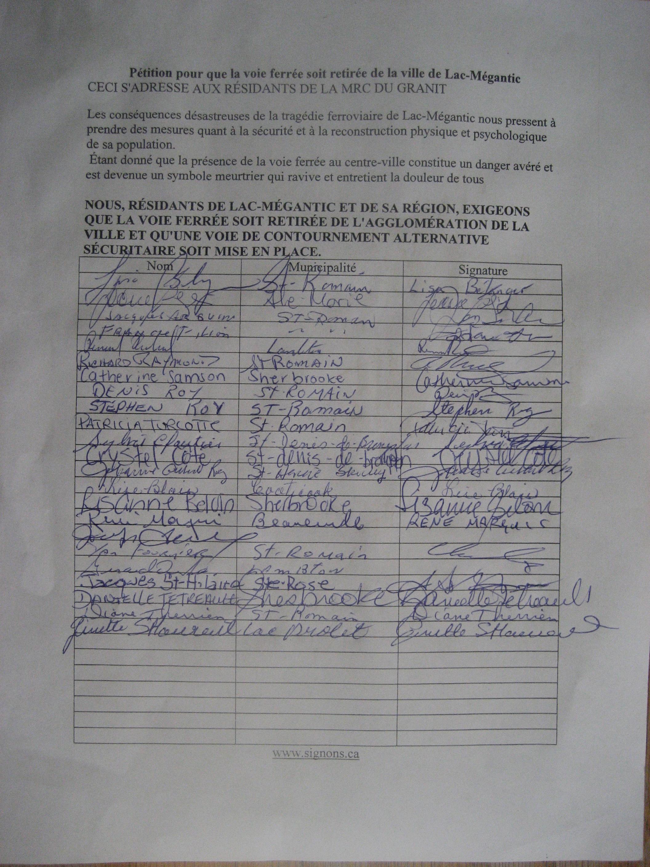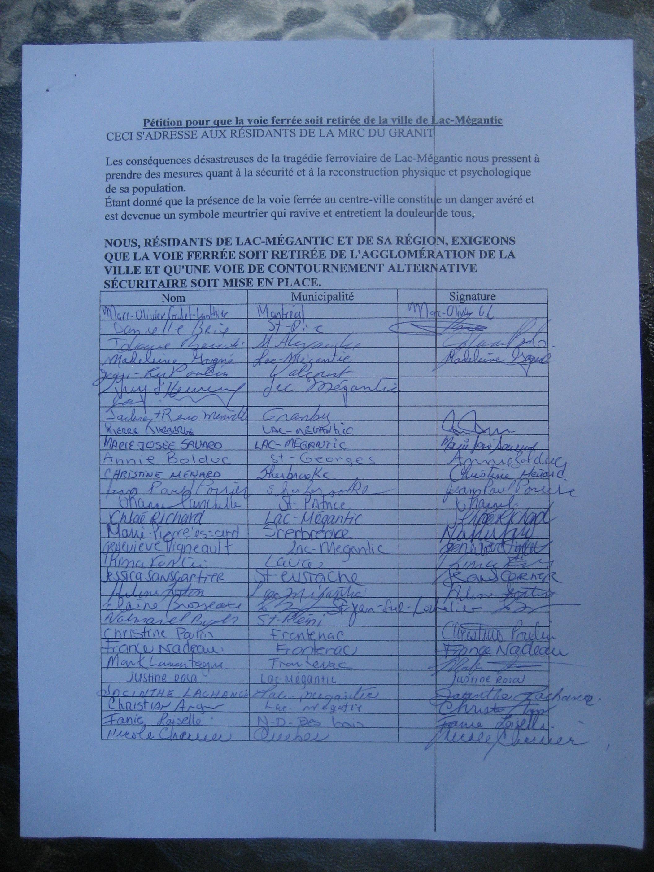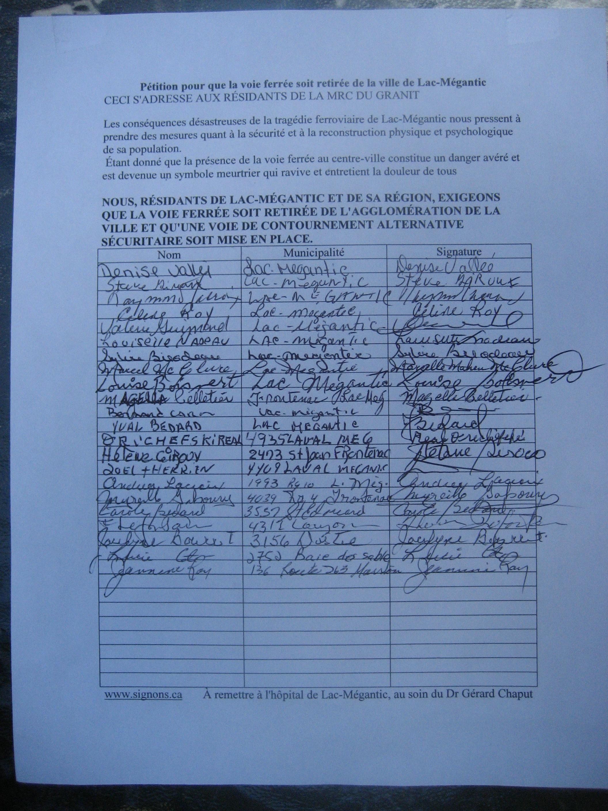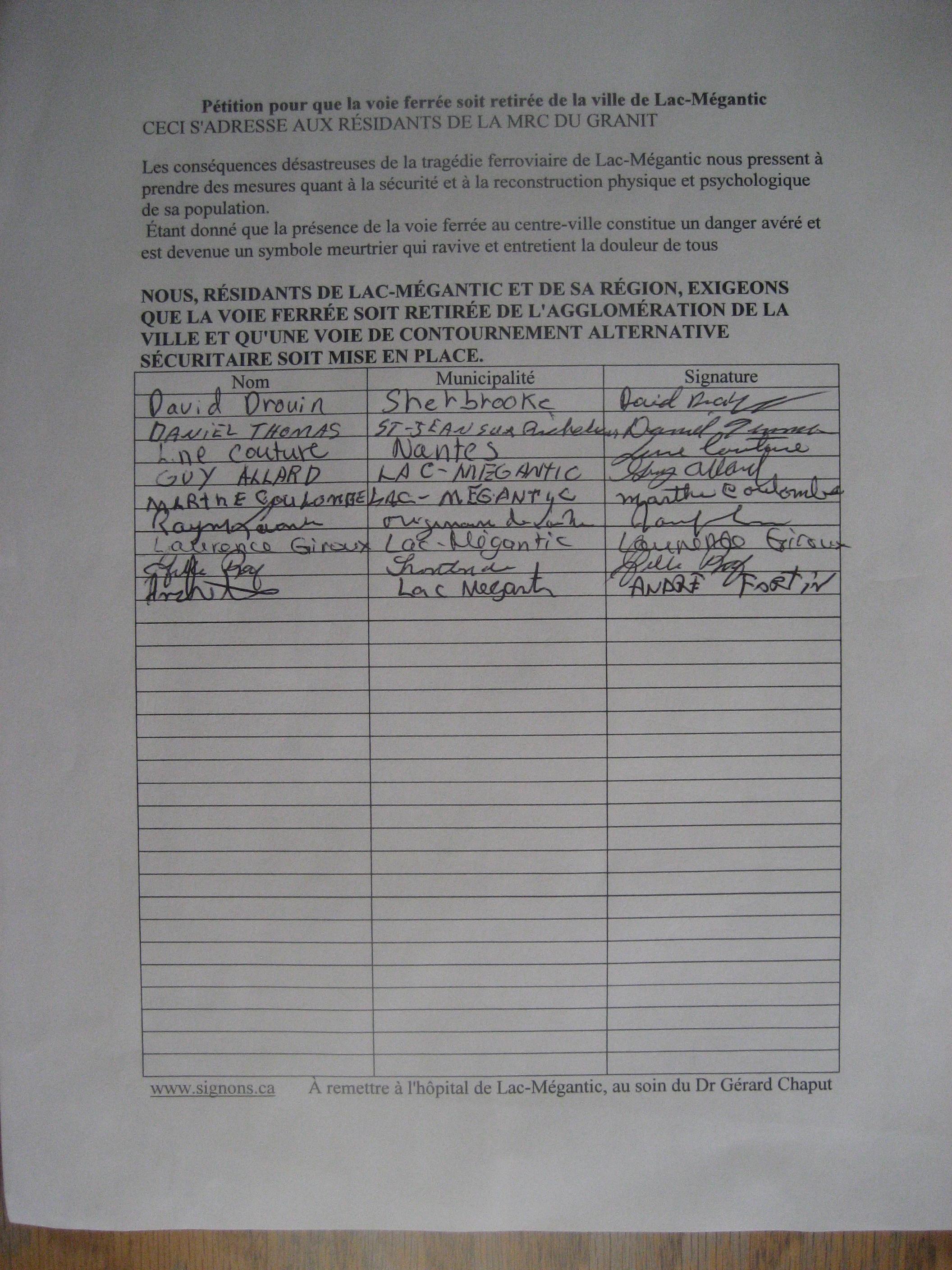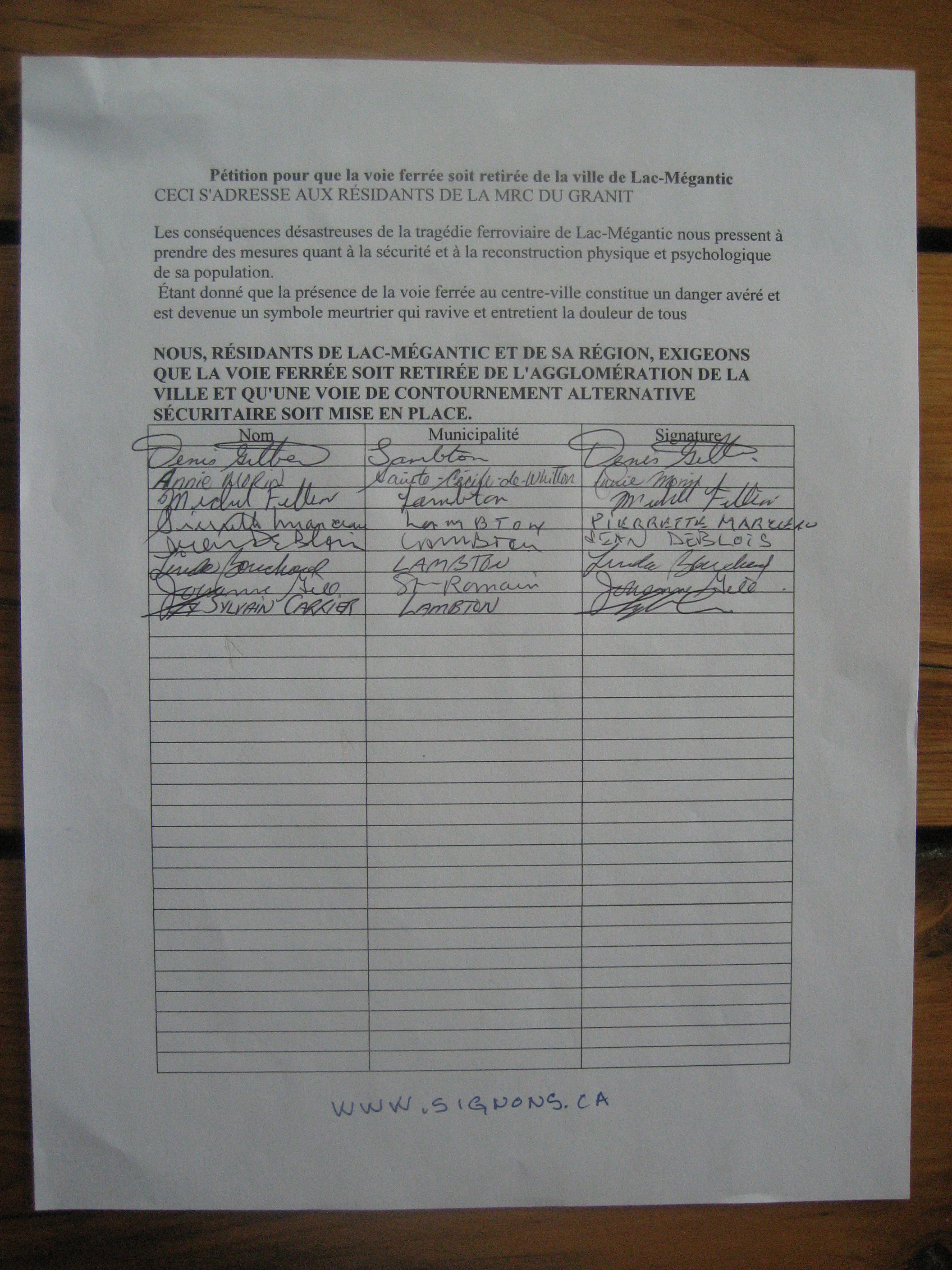 - Pétition pour re-localiser la voie ferrée de Lac-Mégantic