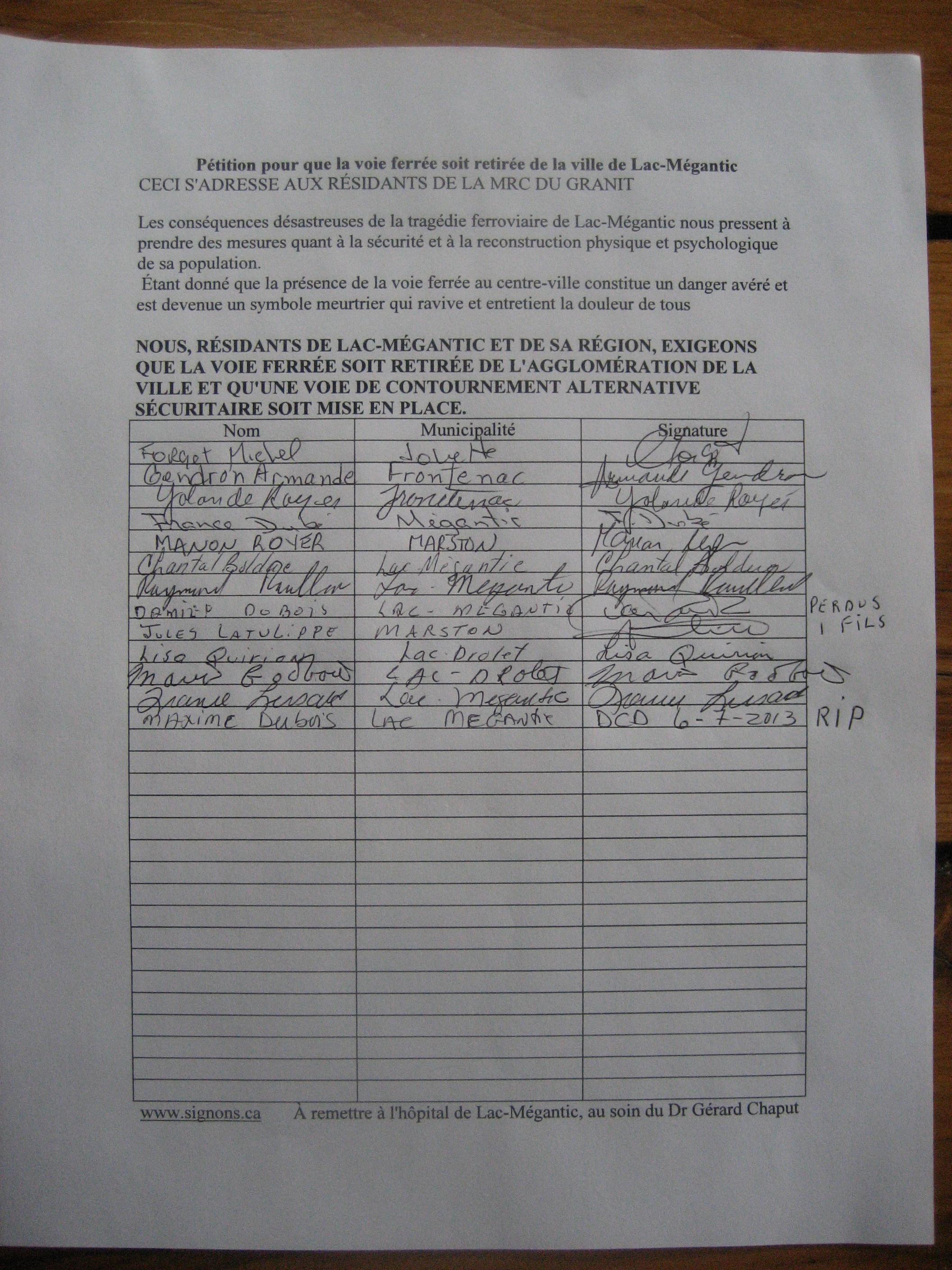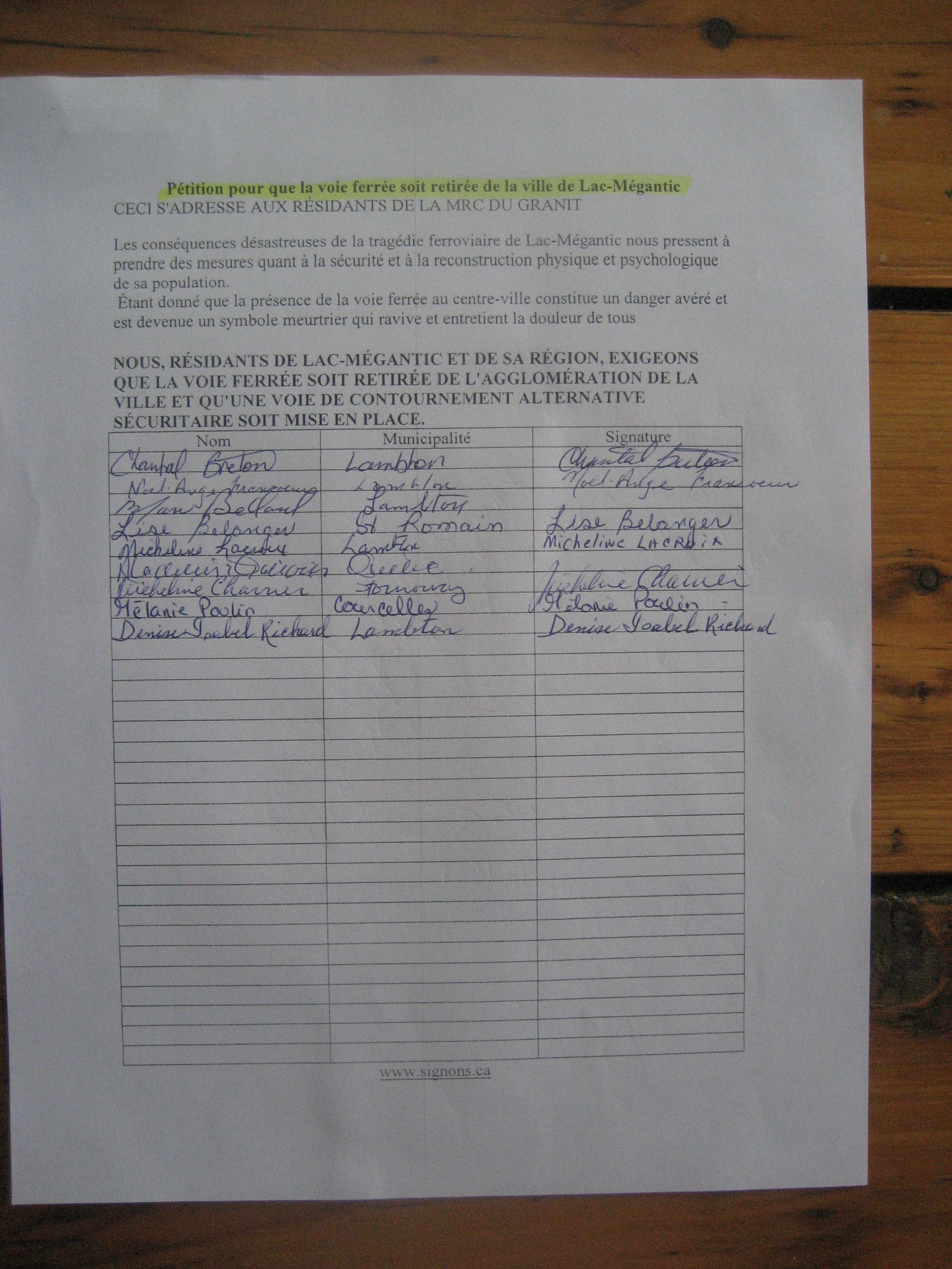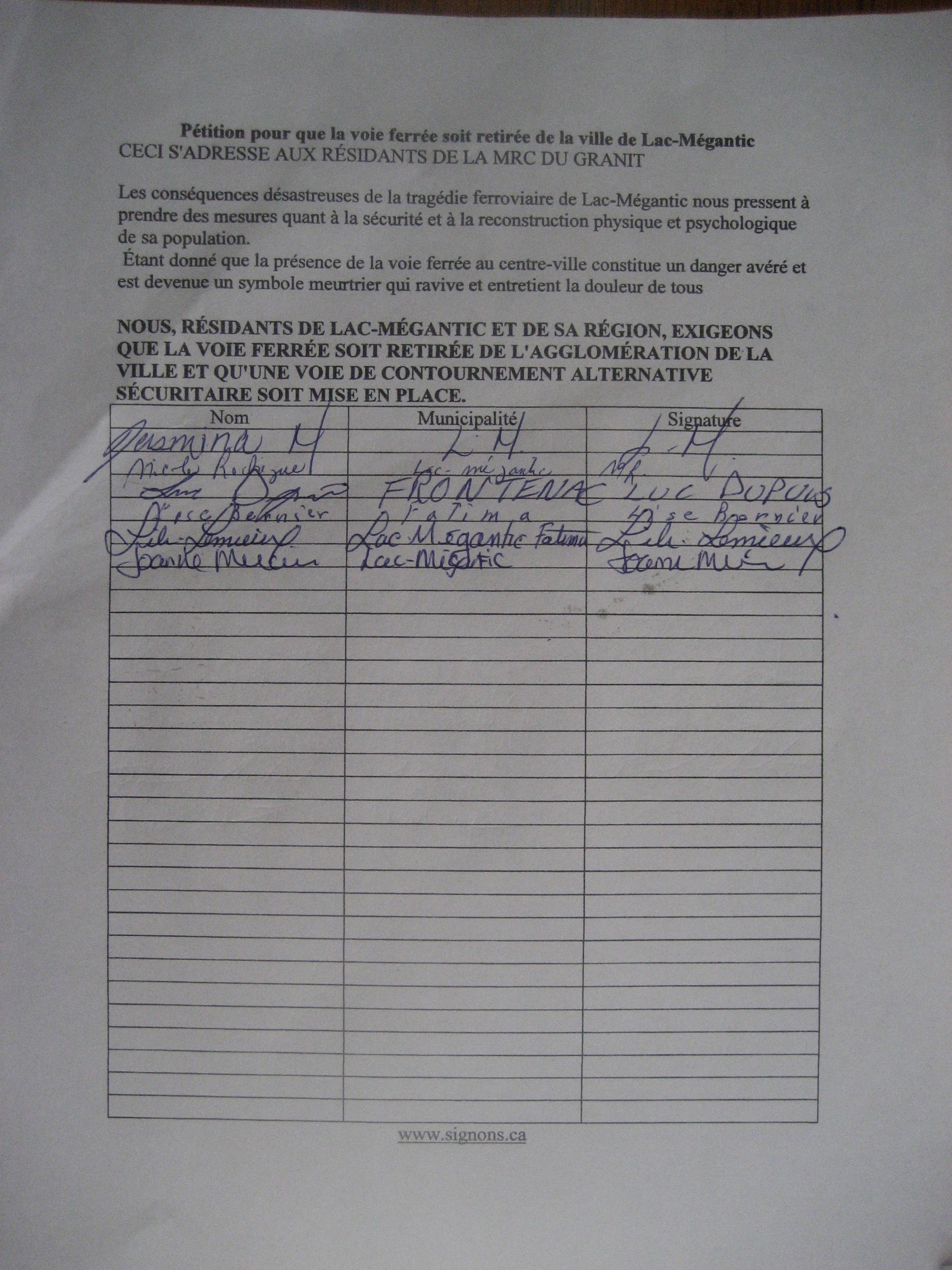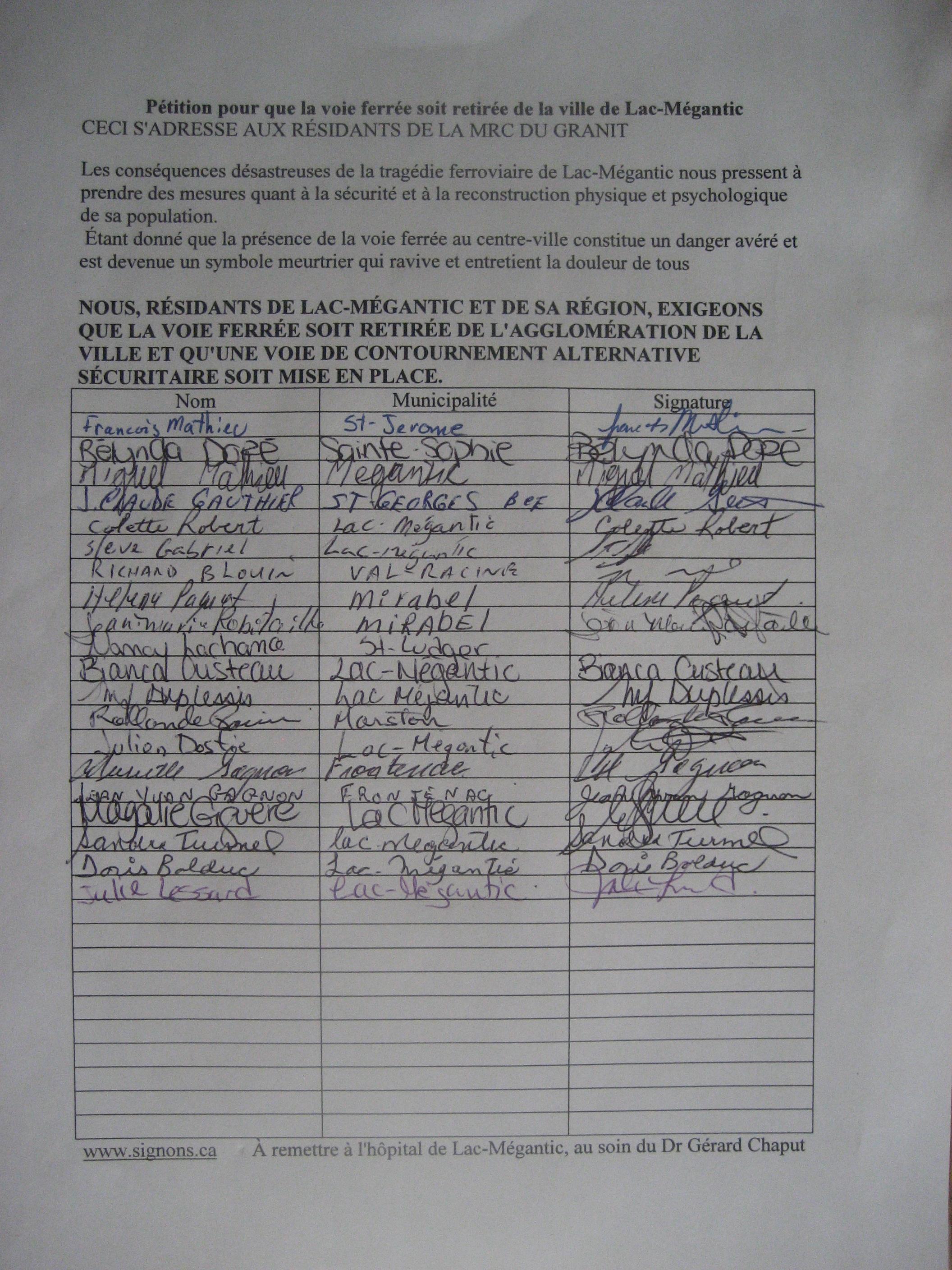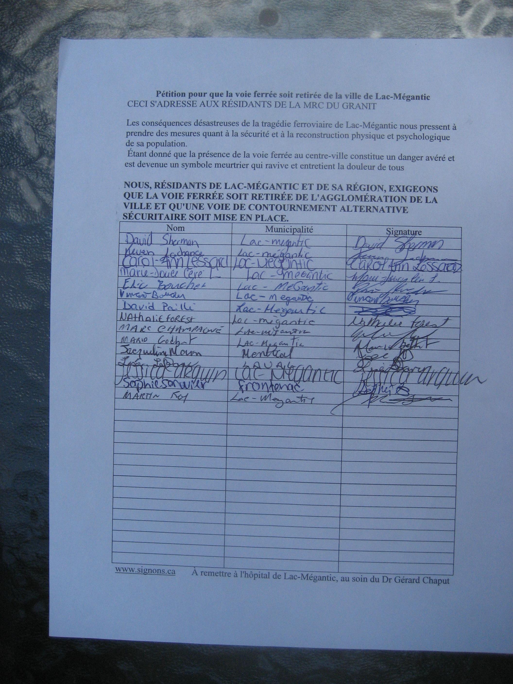 - Pétition pour re-localiser la voie ferrée de Lac-Mégantic