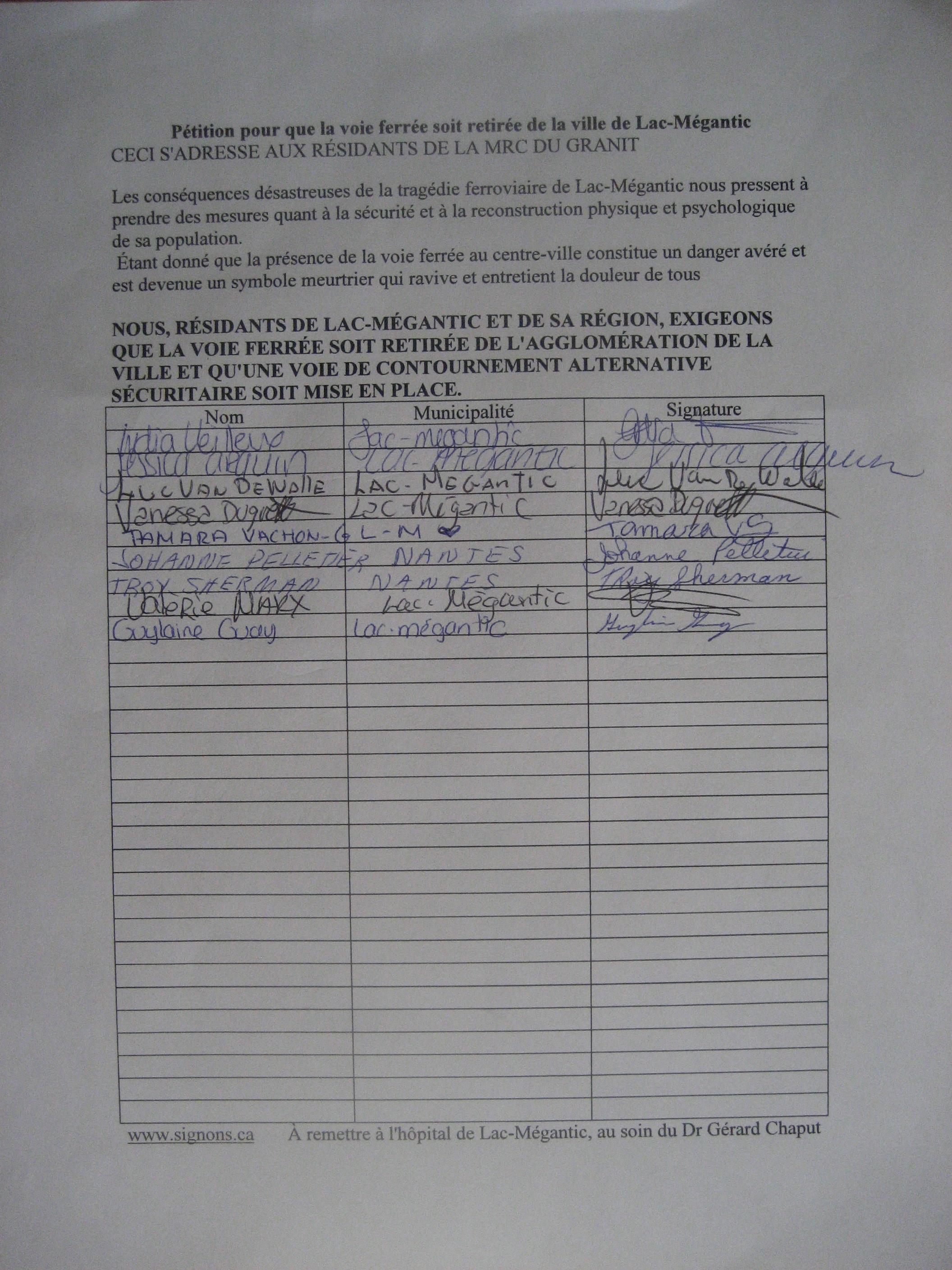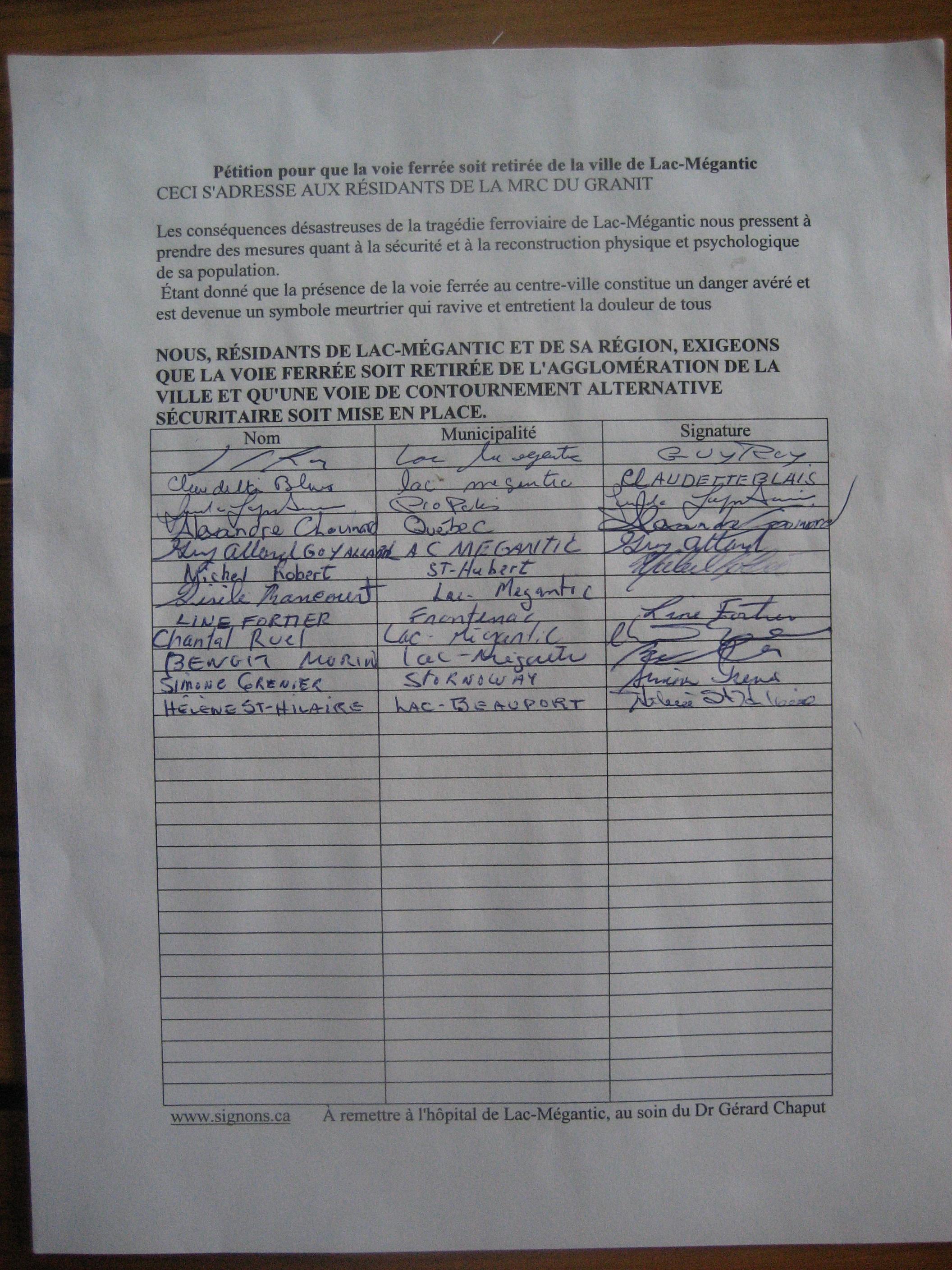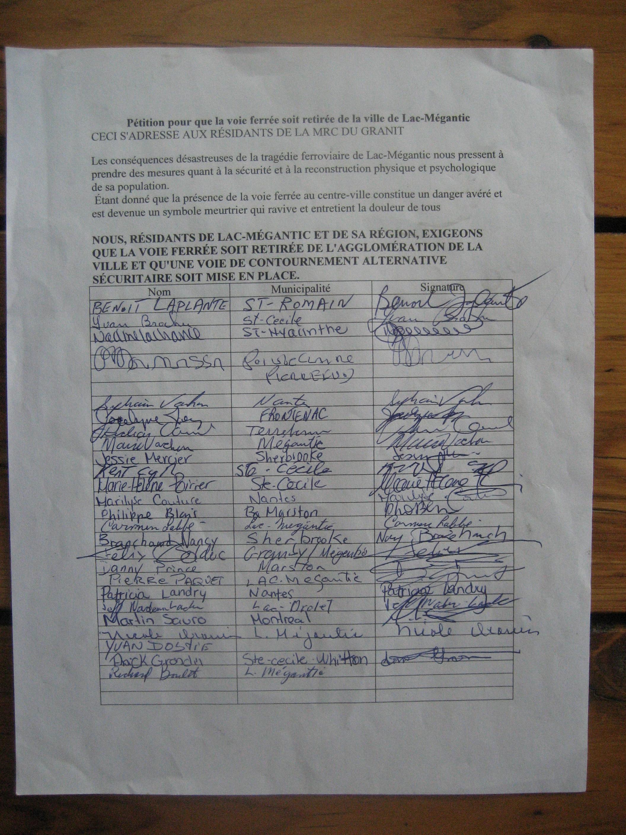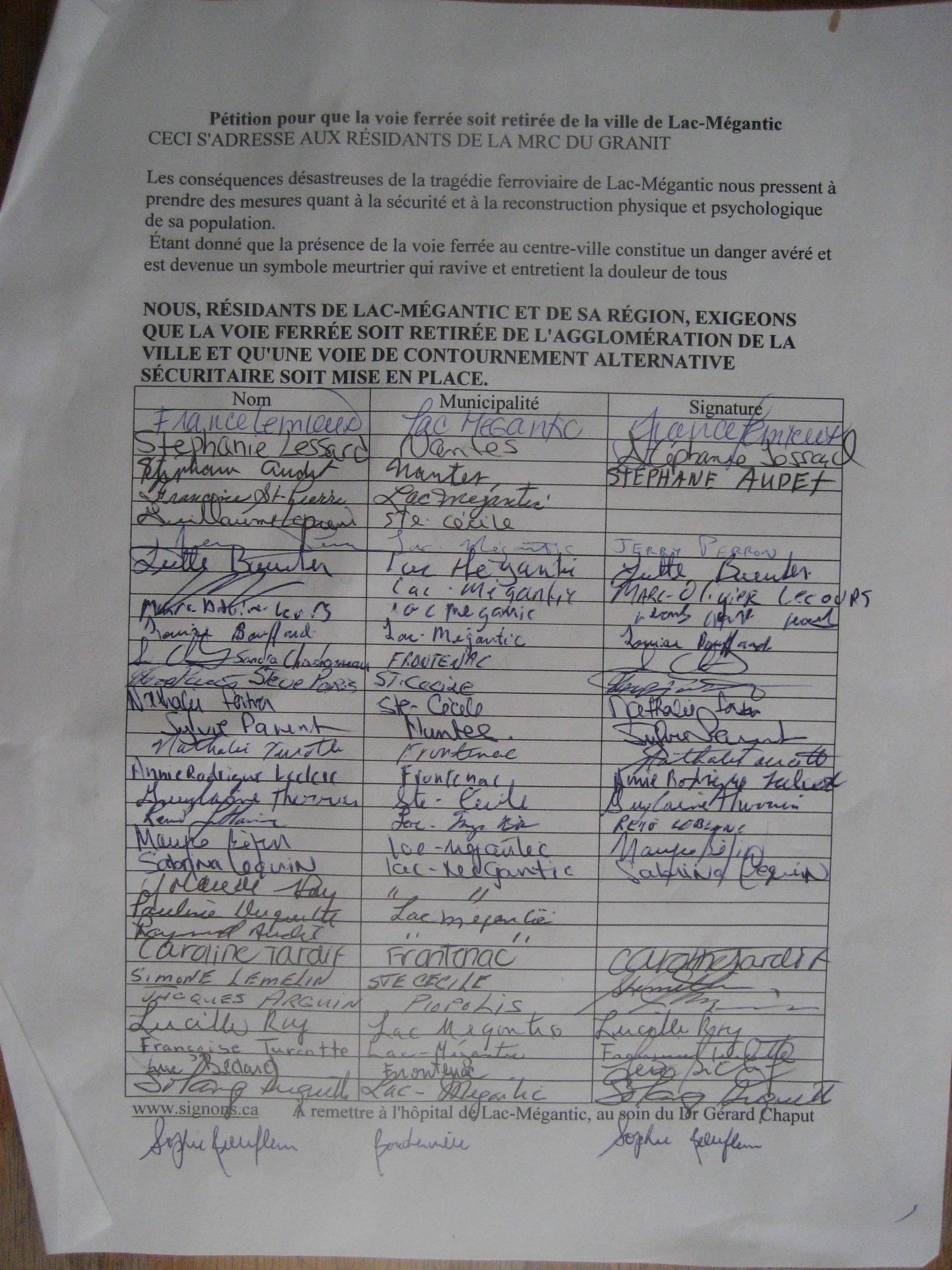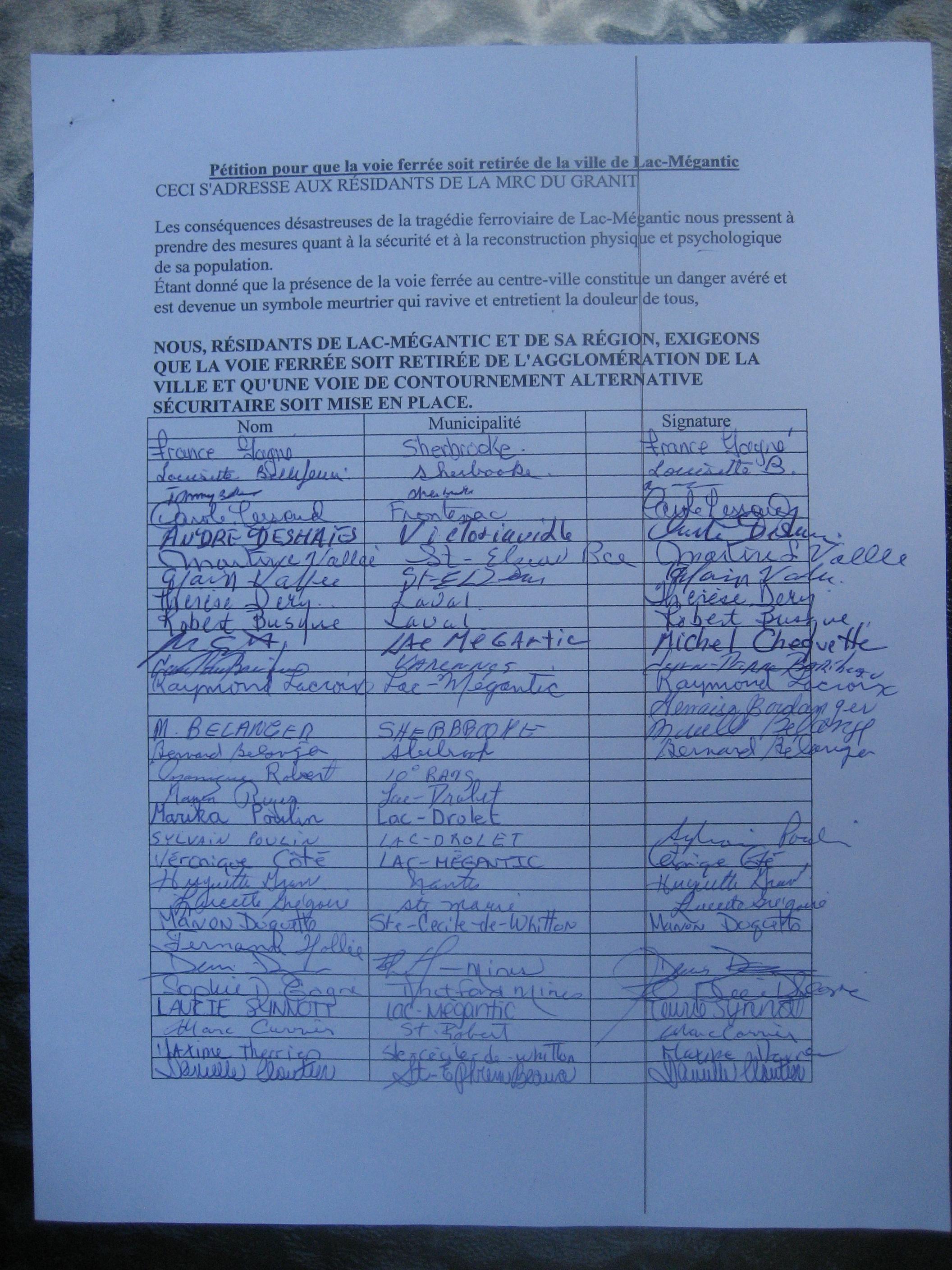 - Pétition pour re-localiser la voie ferrée de Lac-Mégantic