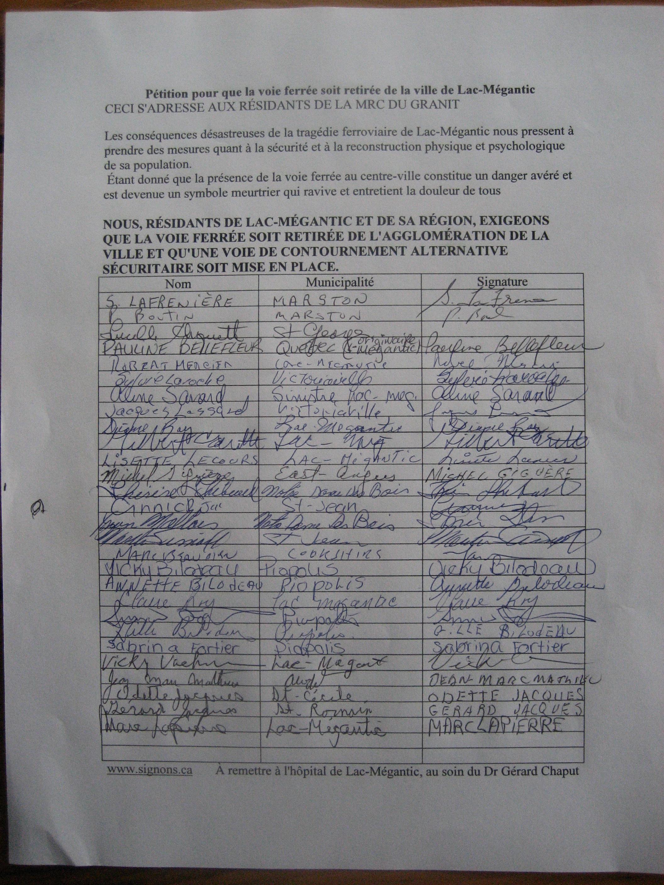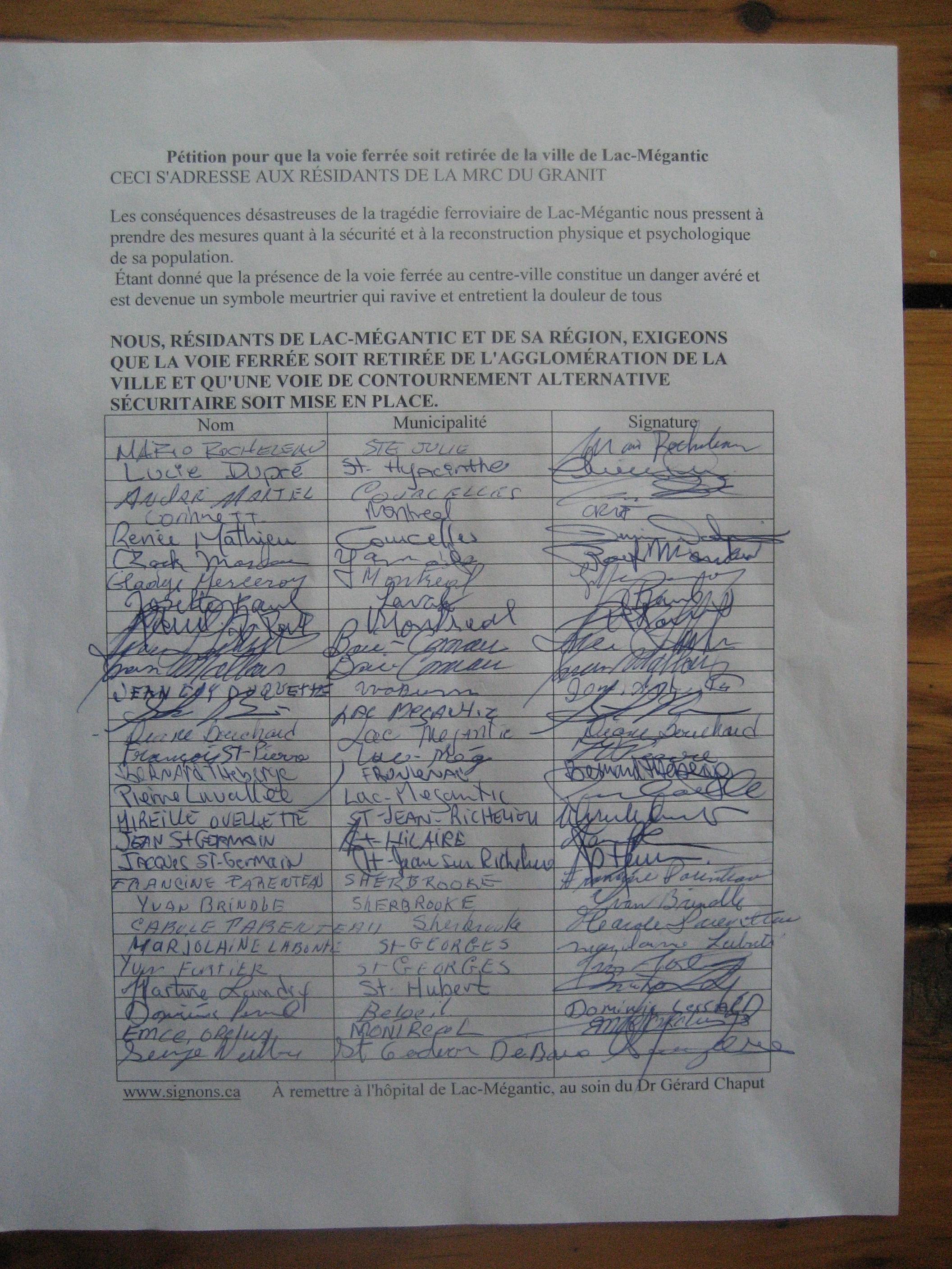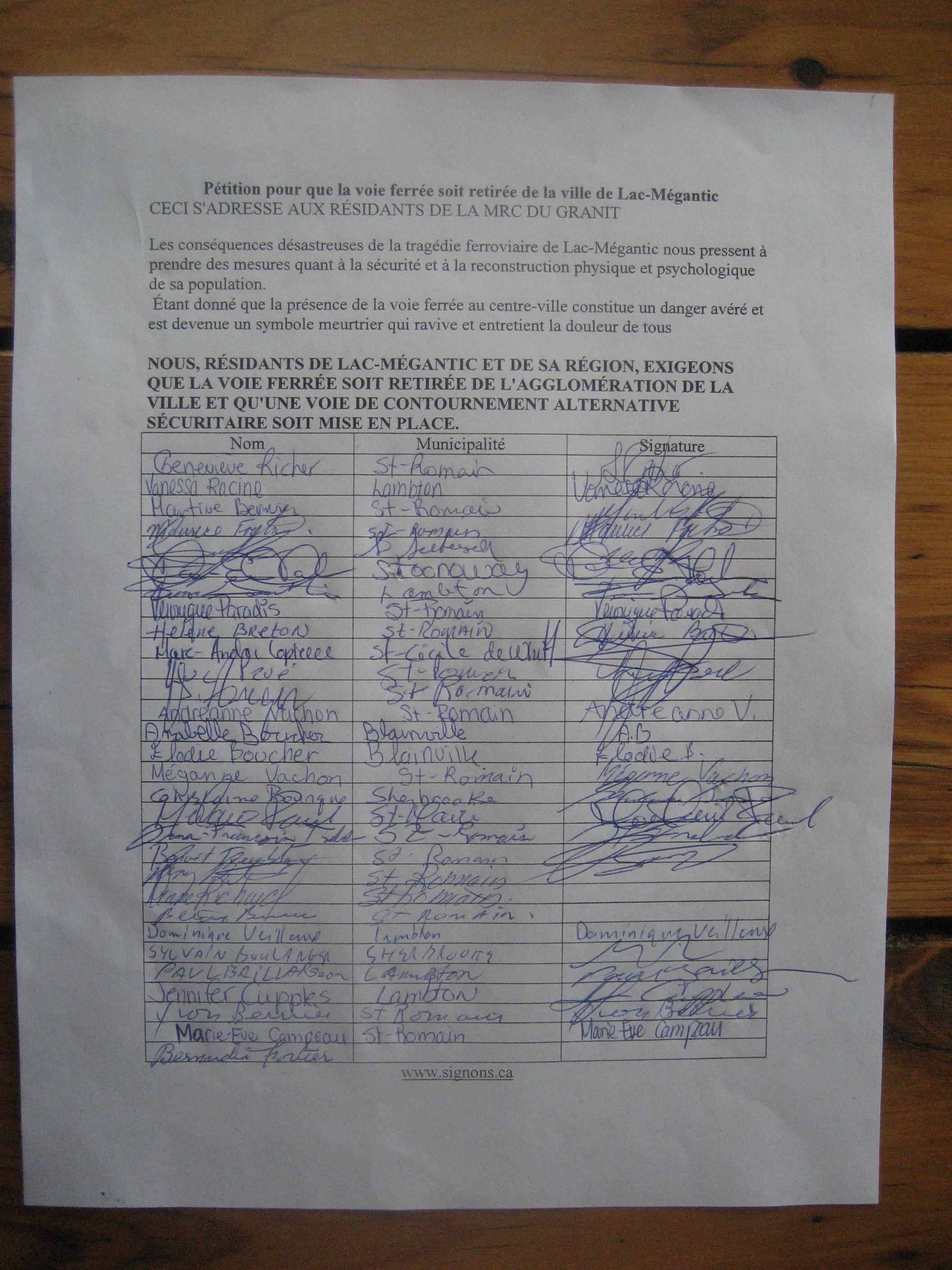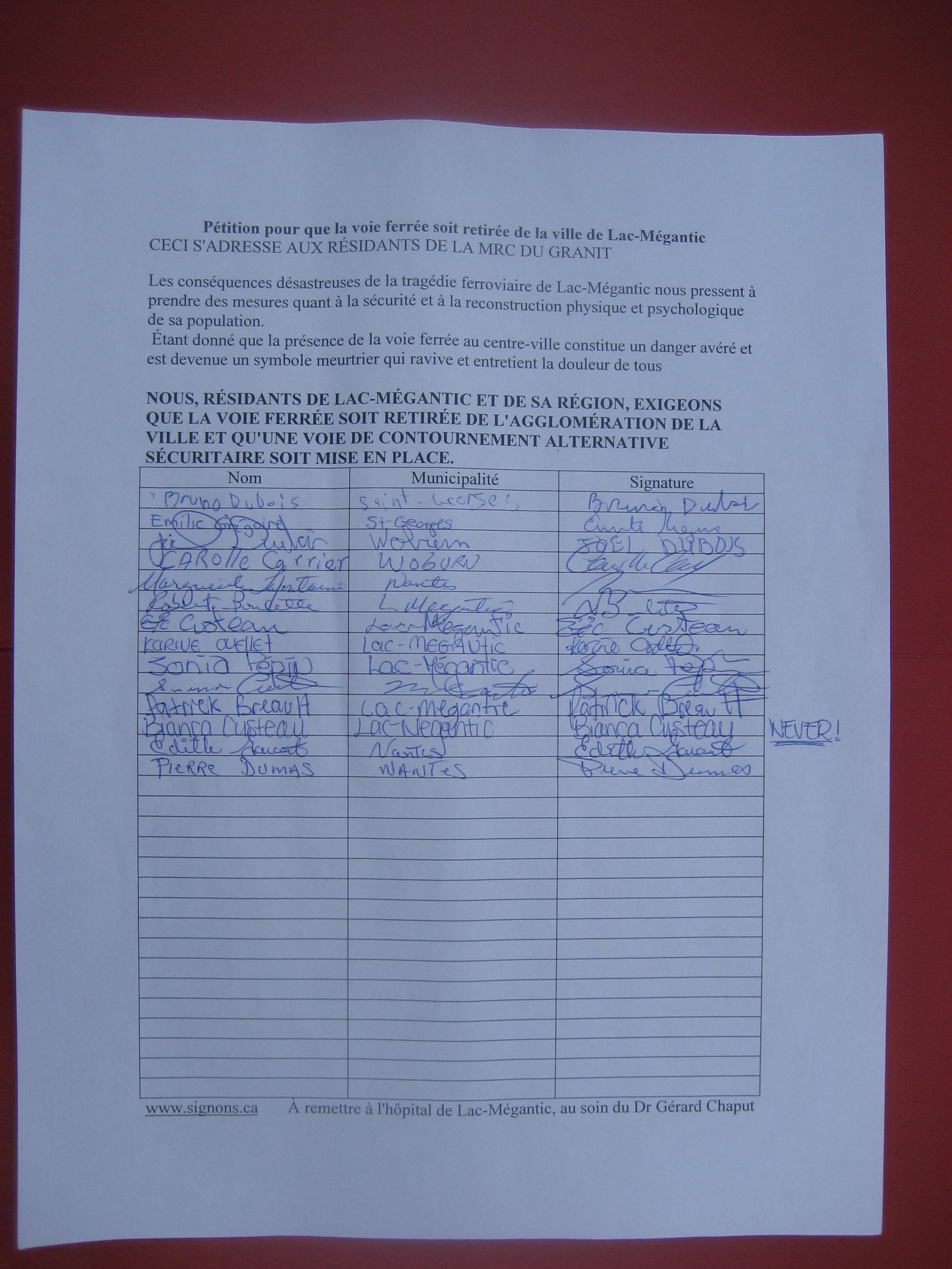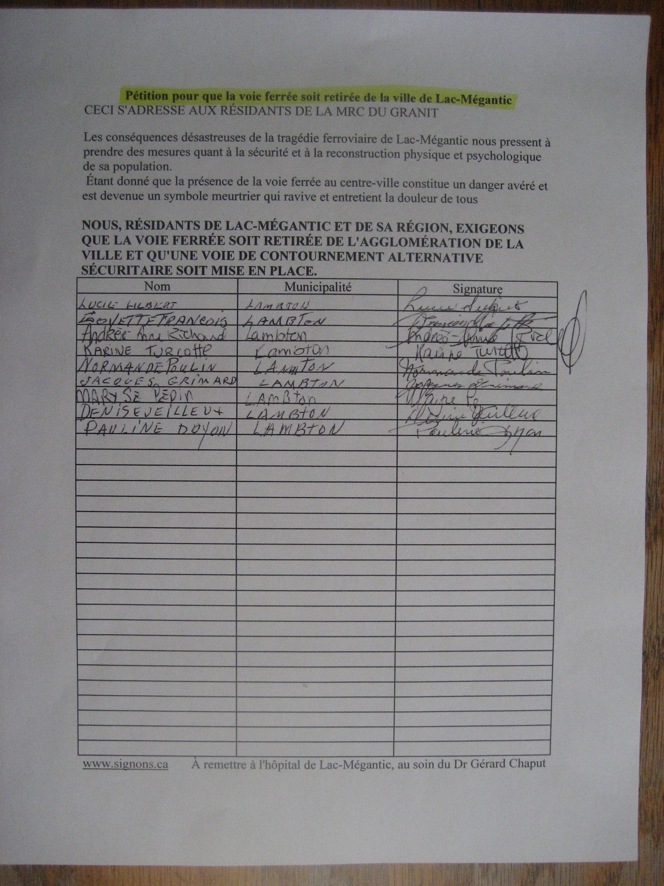 - Pétition pour re-localiser la voie ferrée de Lac-Mégantic
