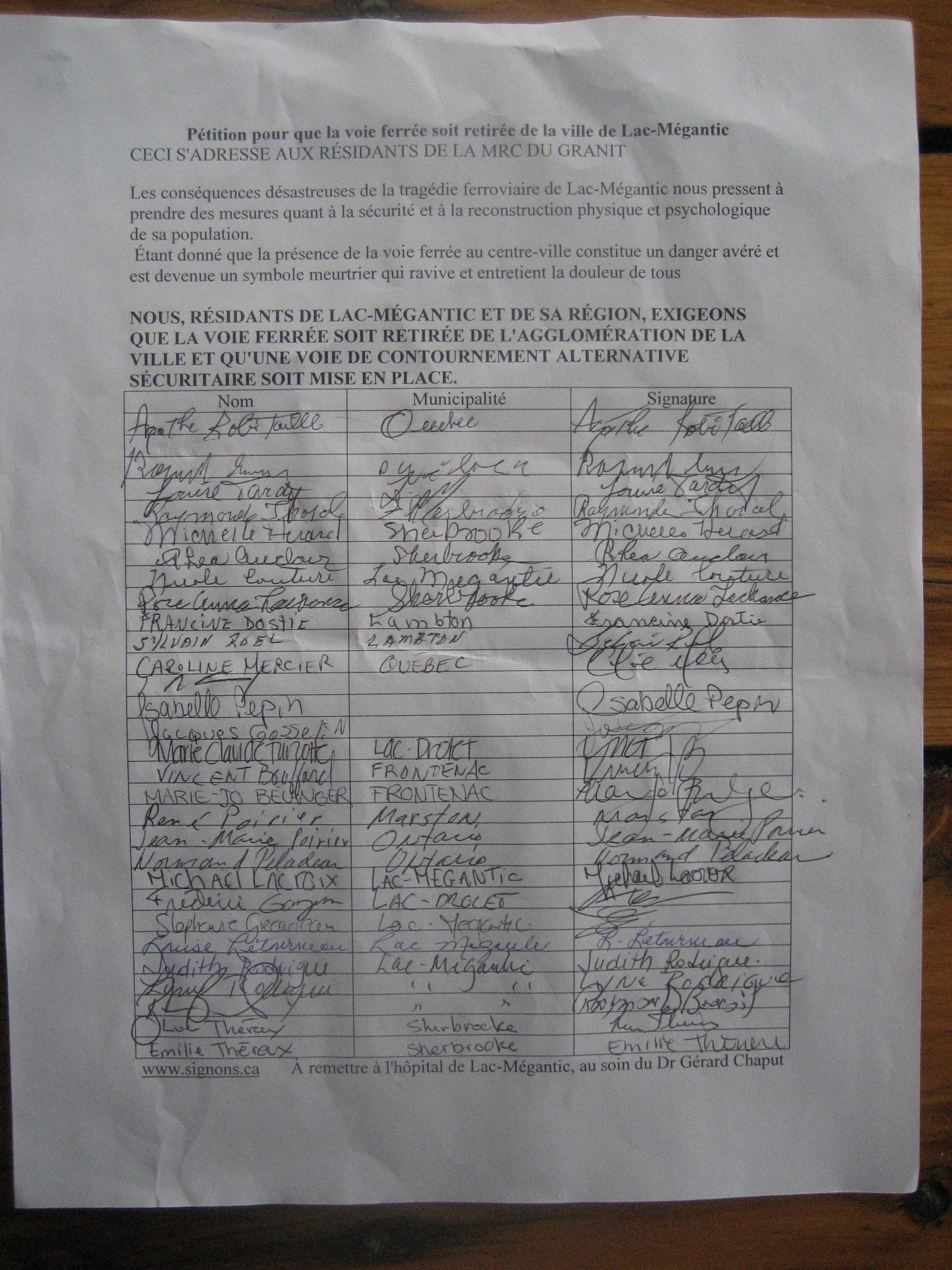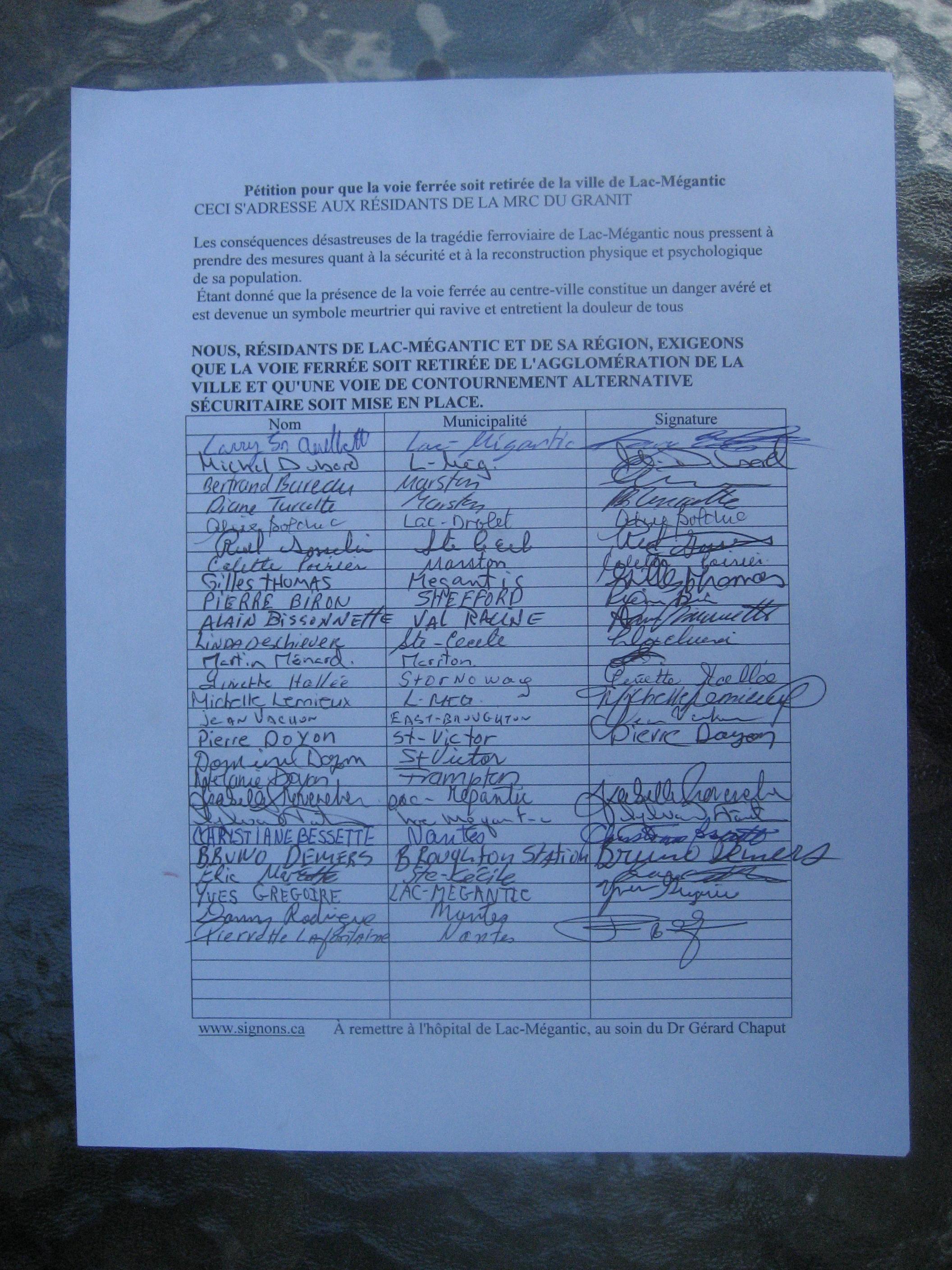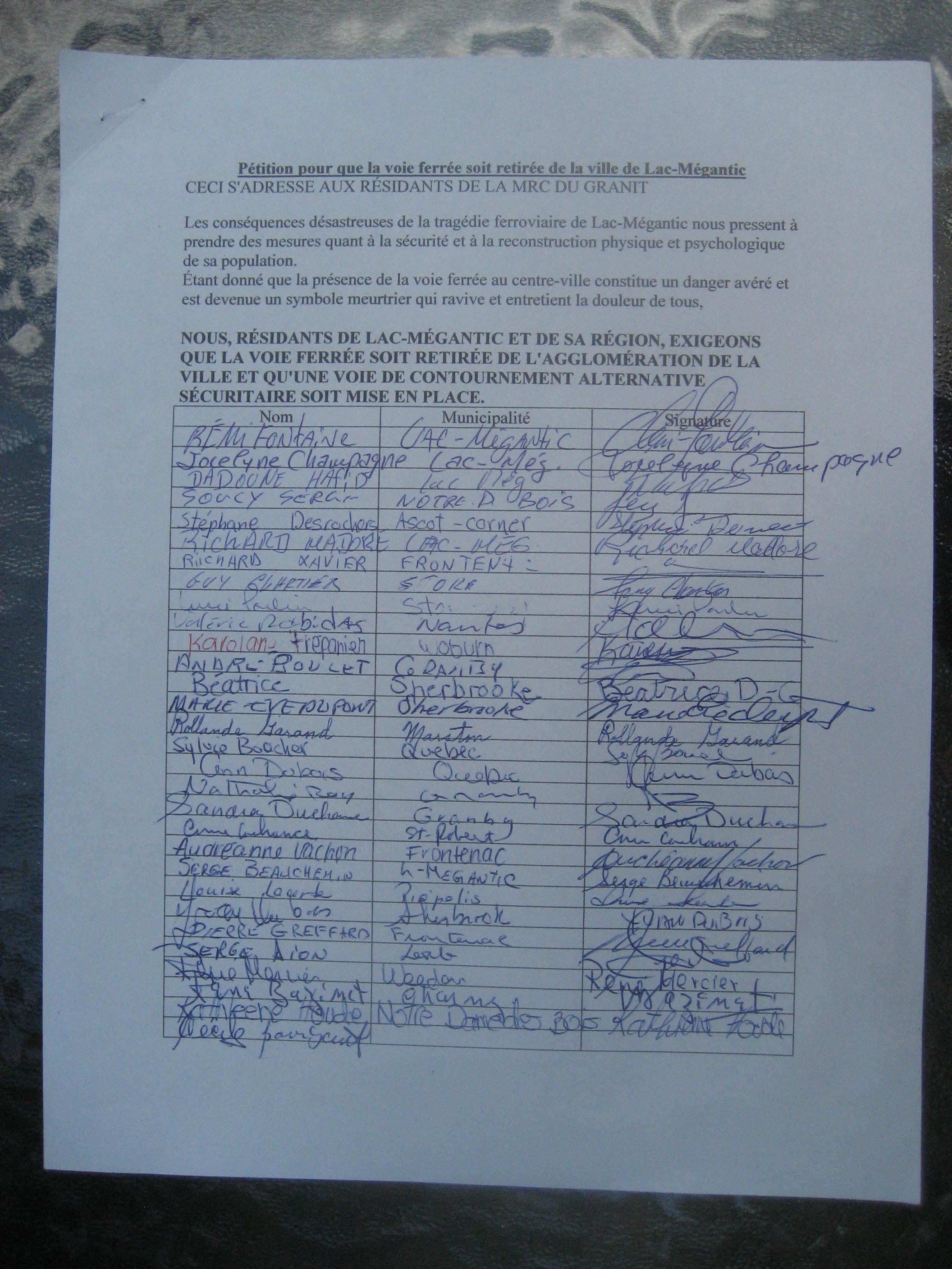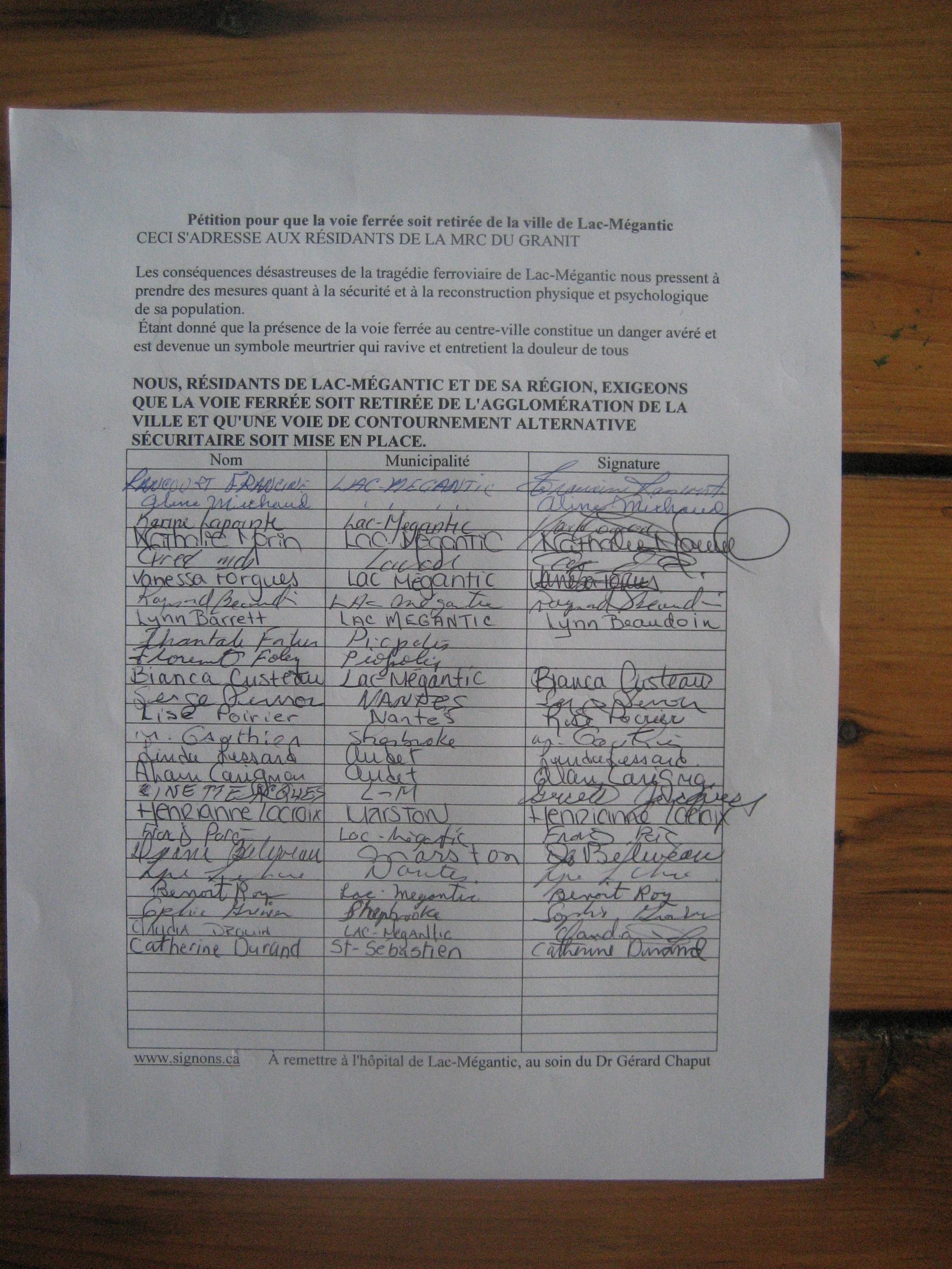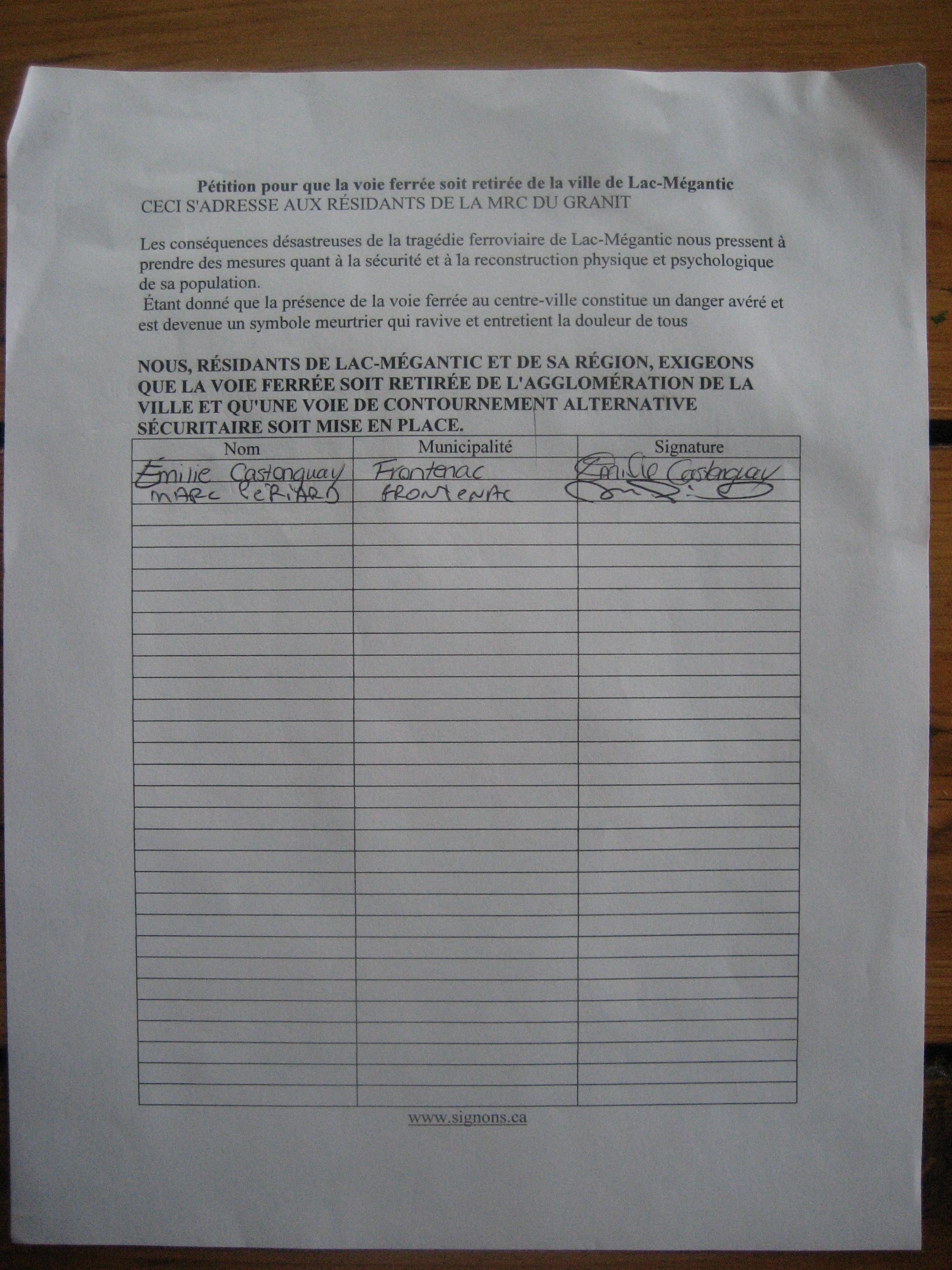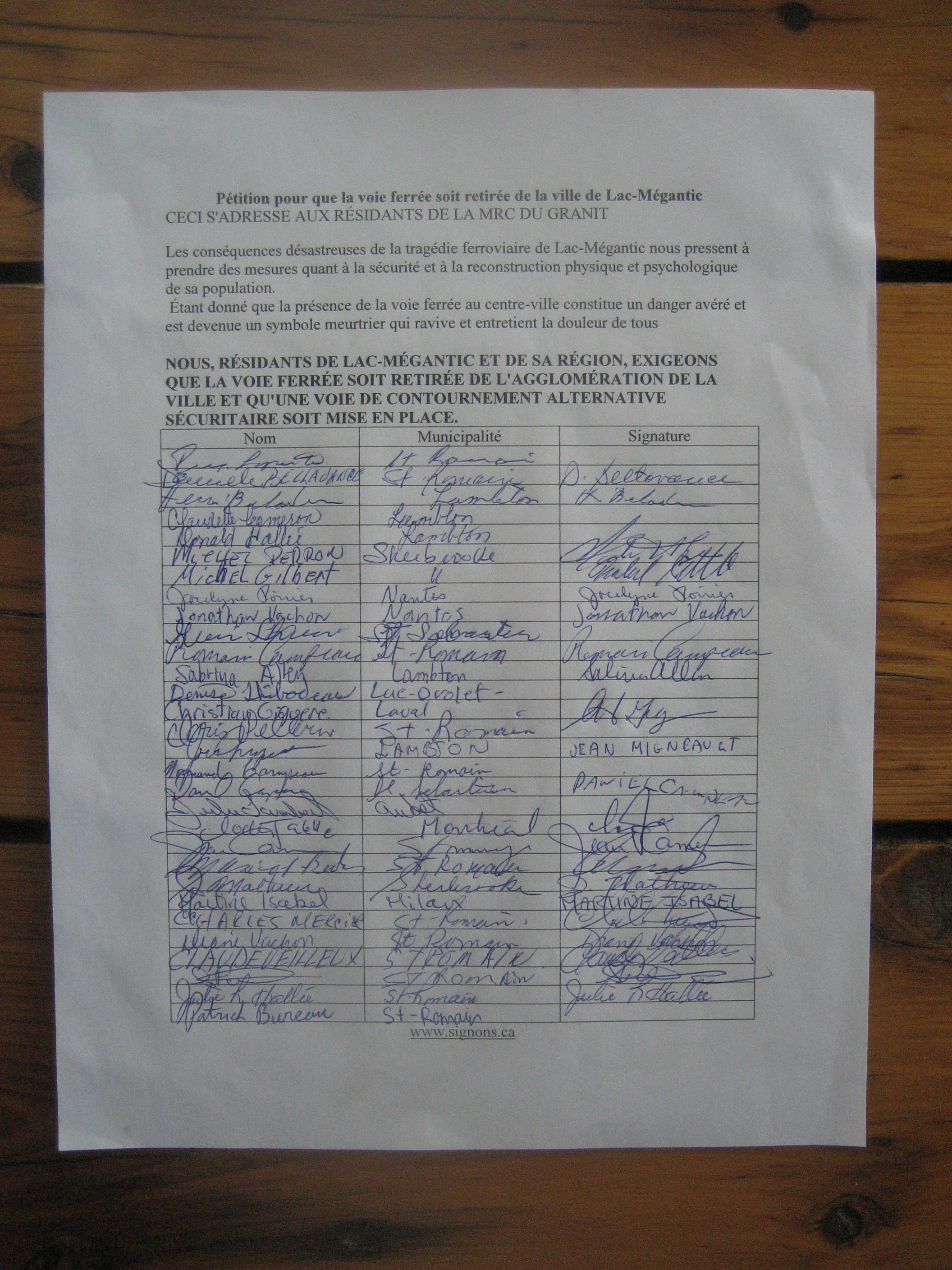 - Pétition pour re-localiser la voie ferrée de Lac-Mégantic
