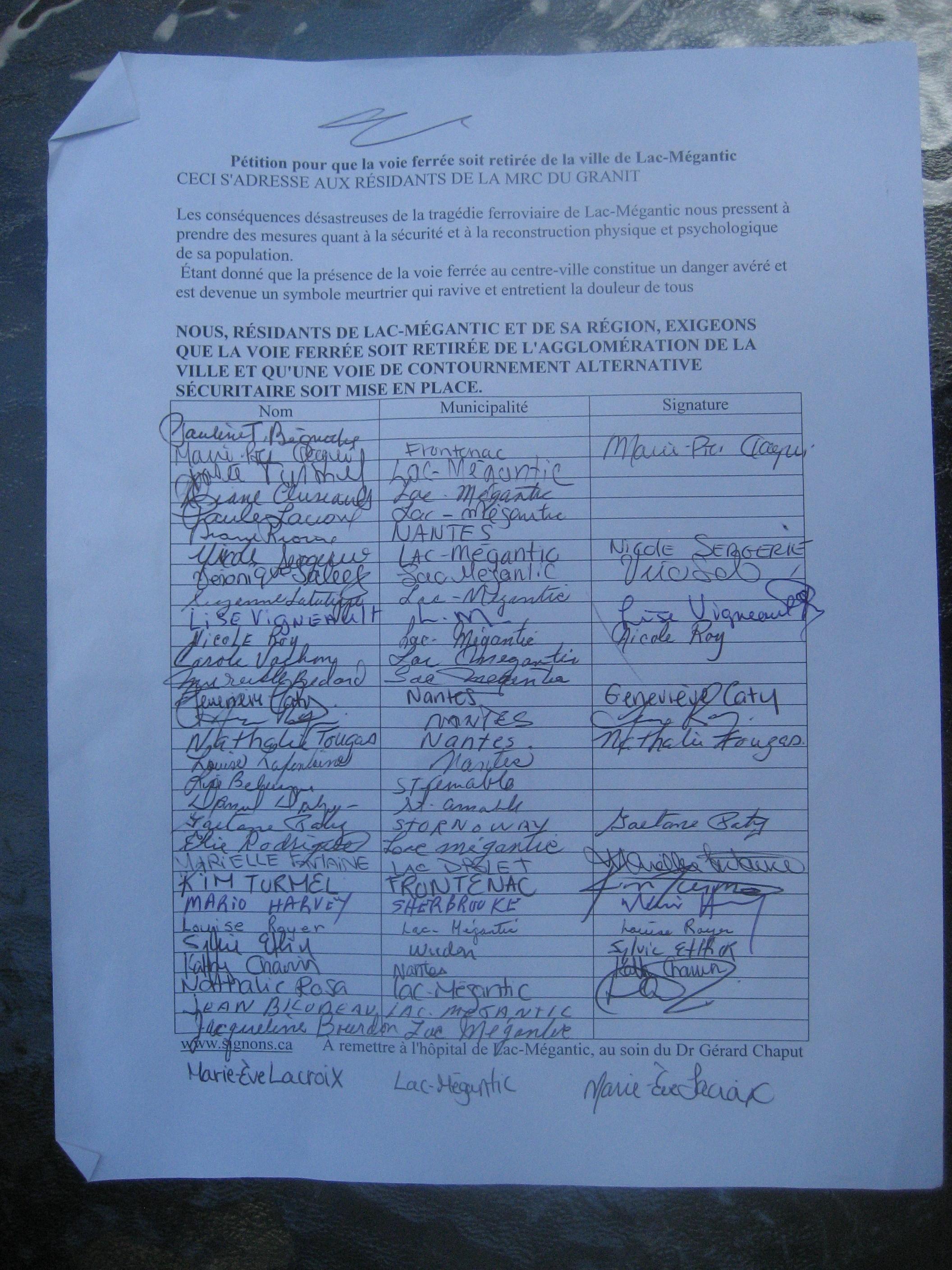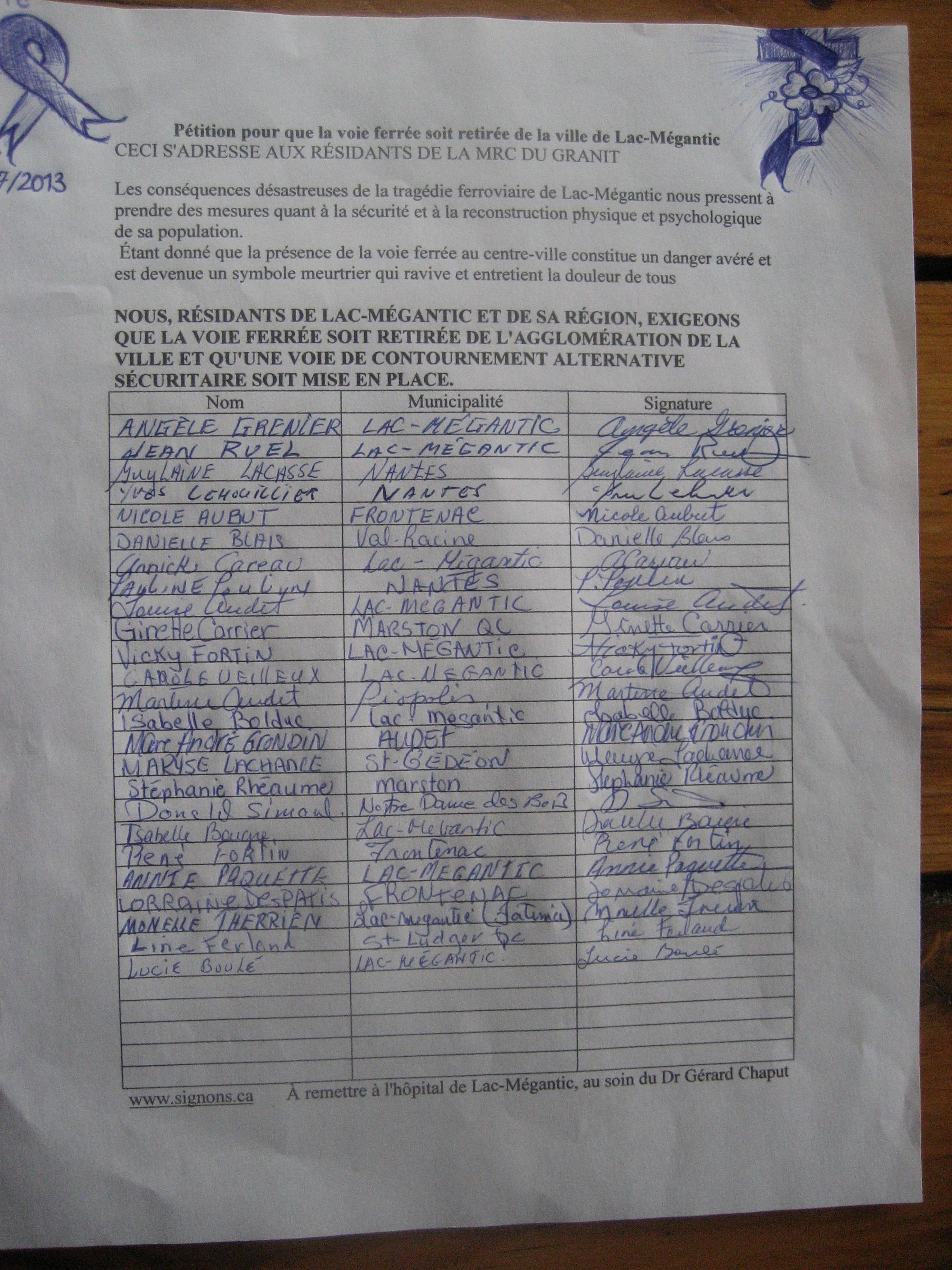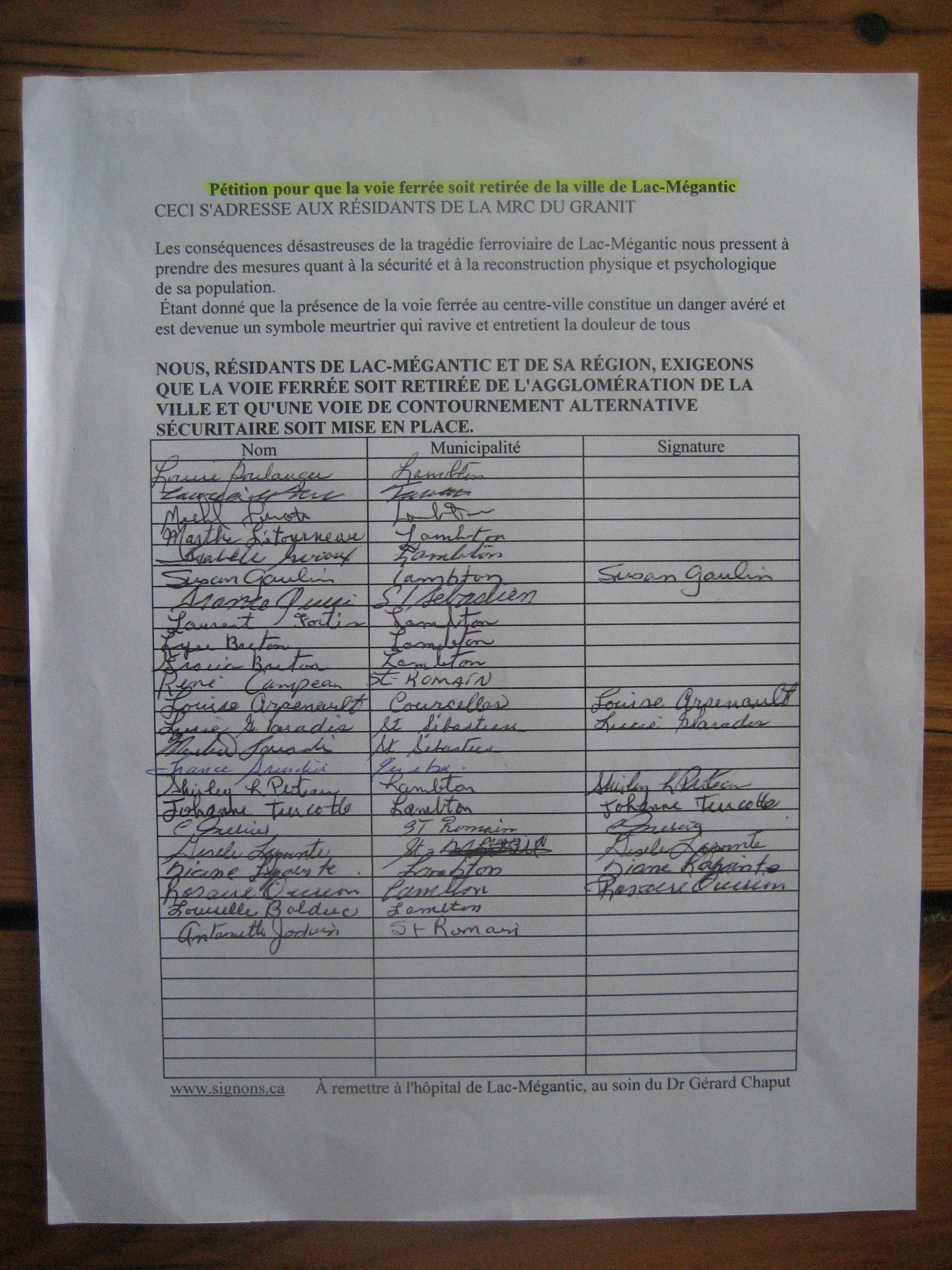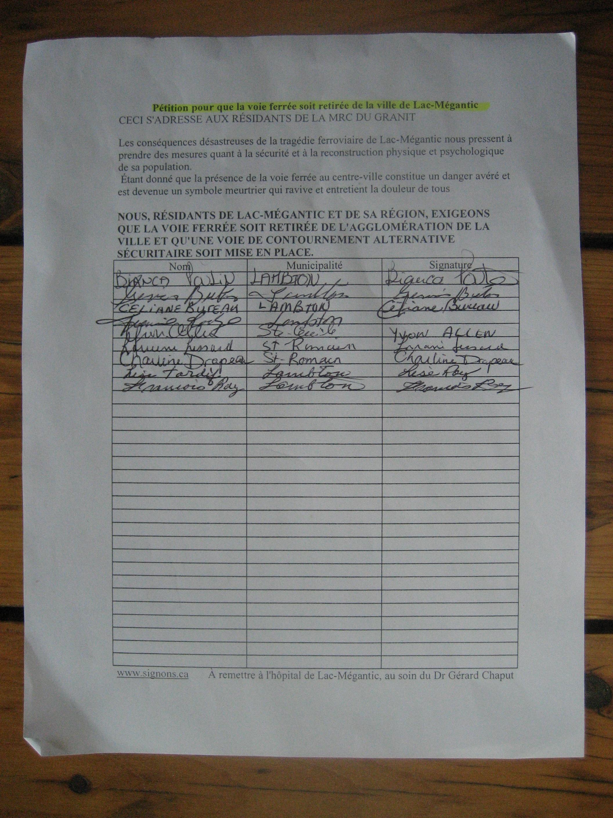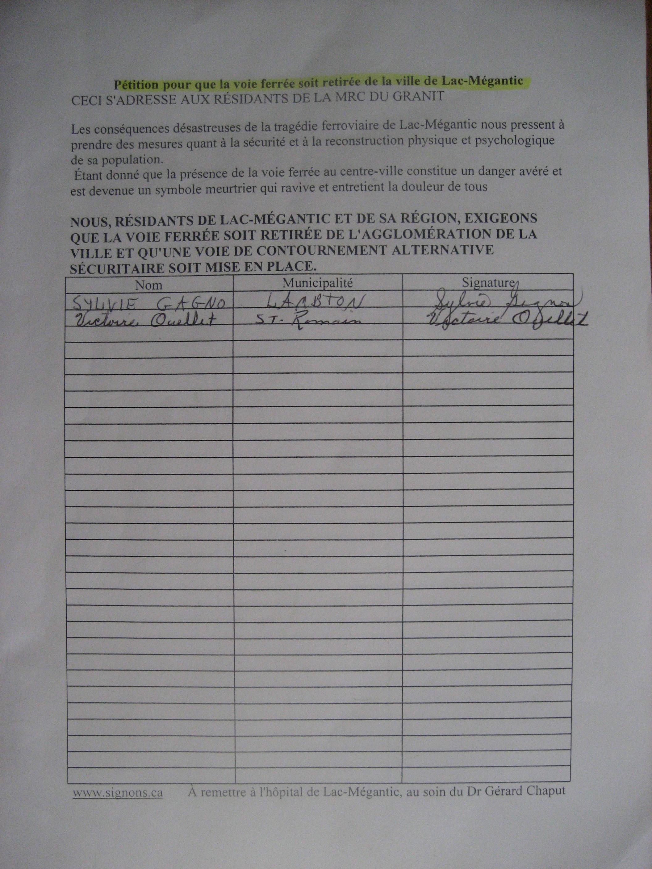 - Pétition pour re-localiser la voie ferrée de Lac-Mégantic