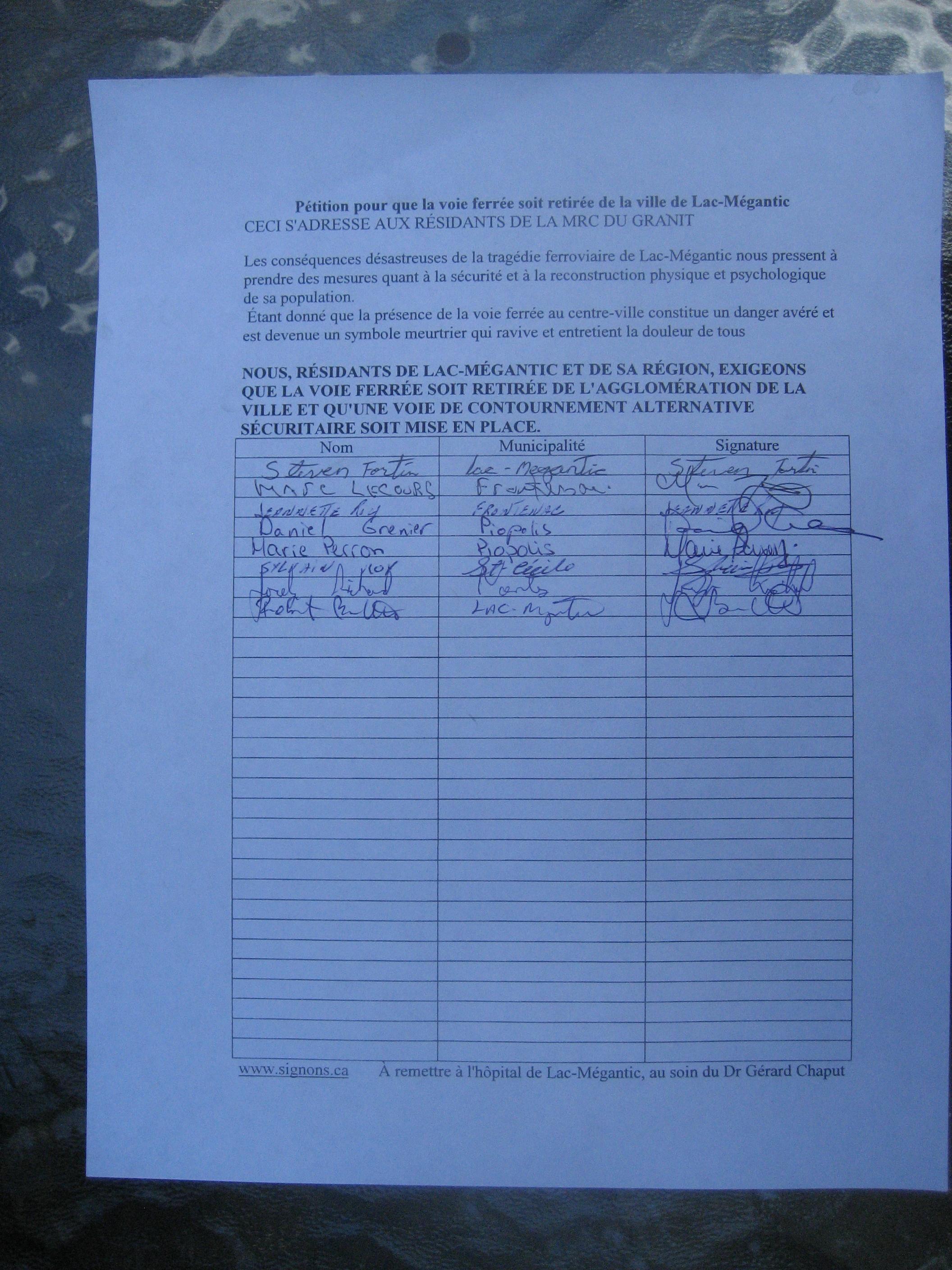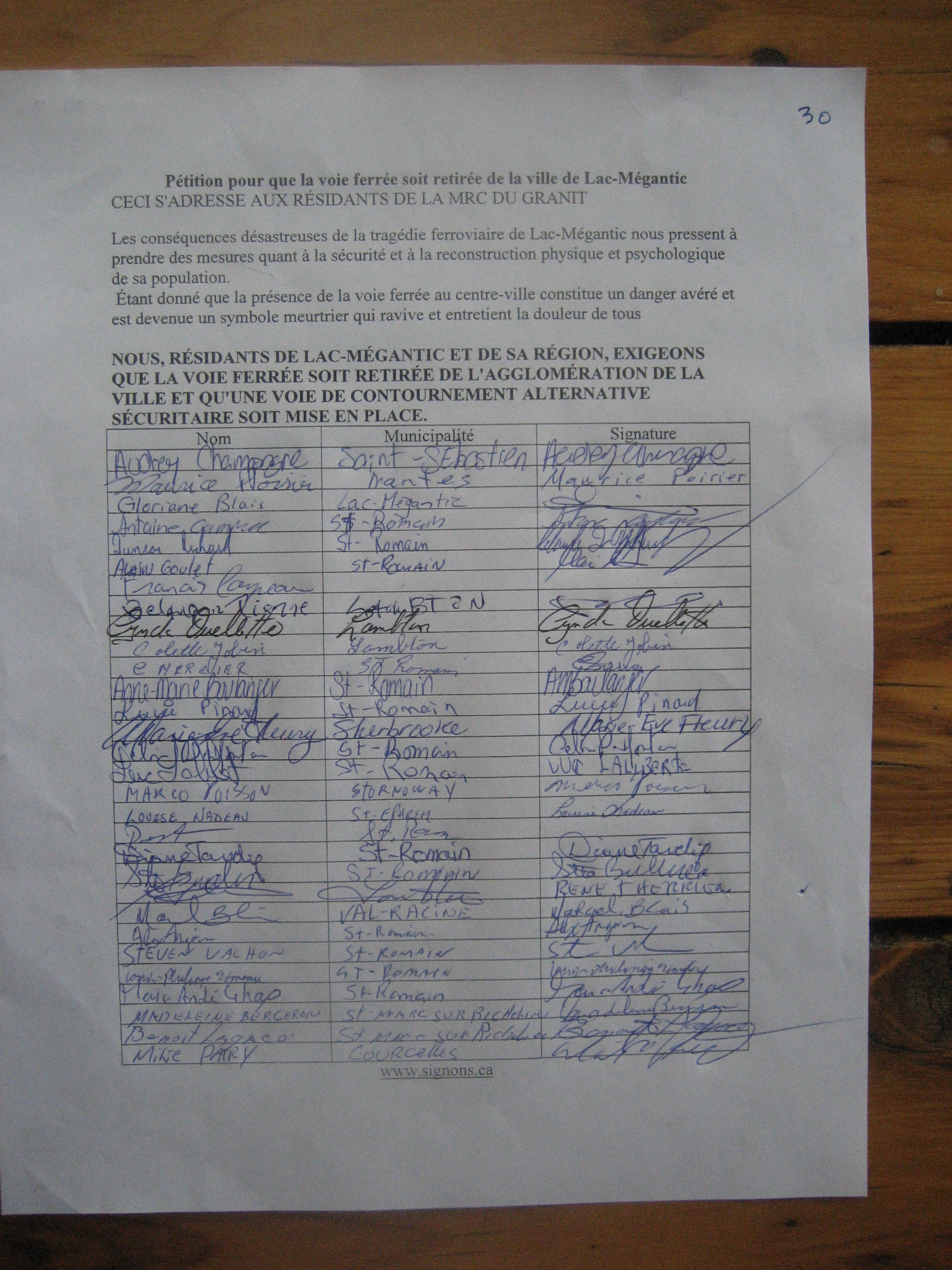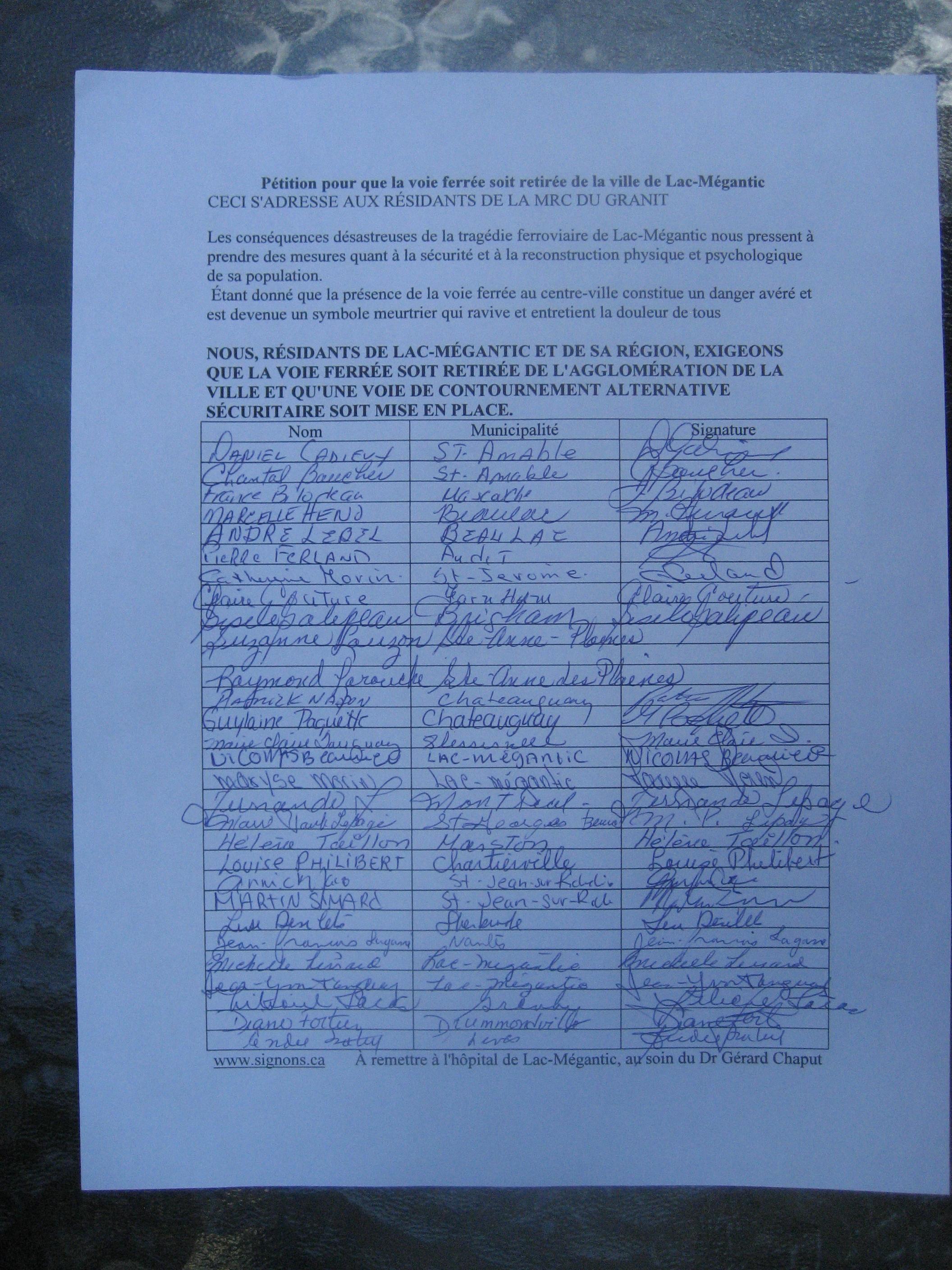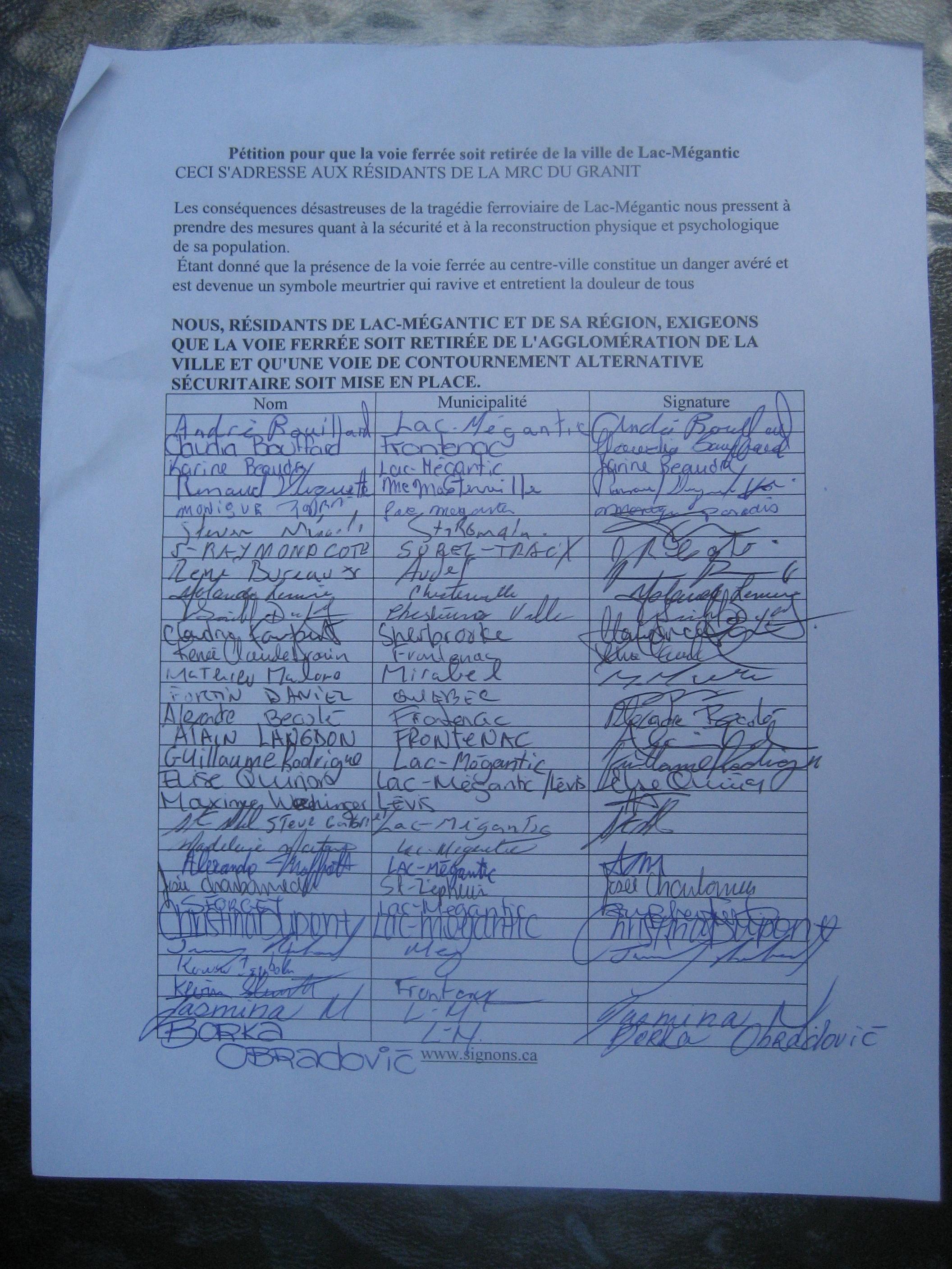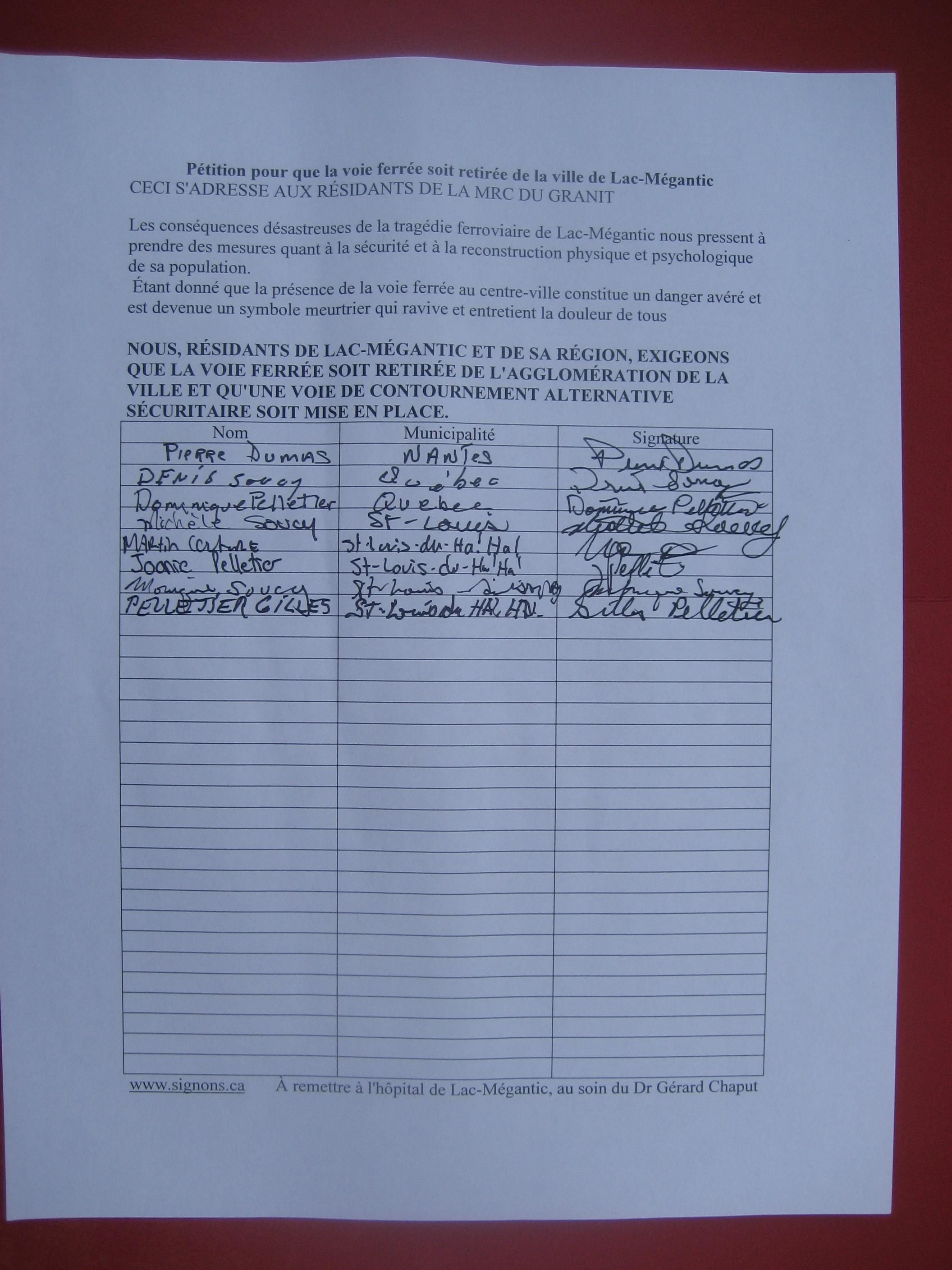 - Pétition pour re-localiser la voie ferrée de Lac-Mégantic
