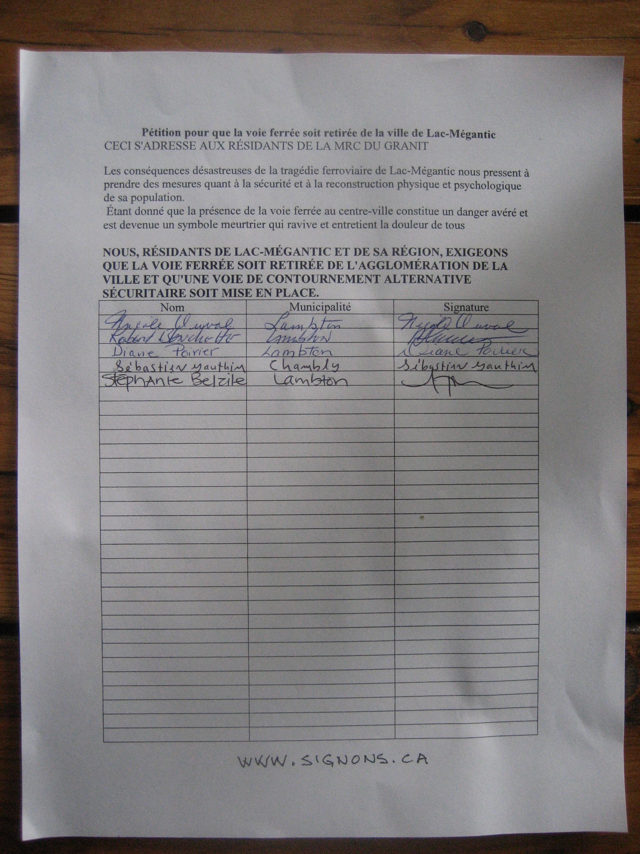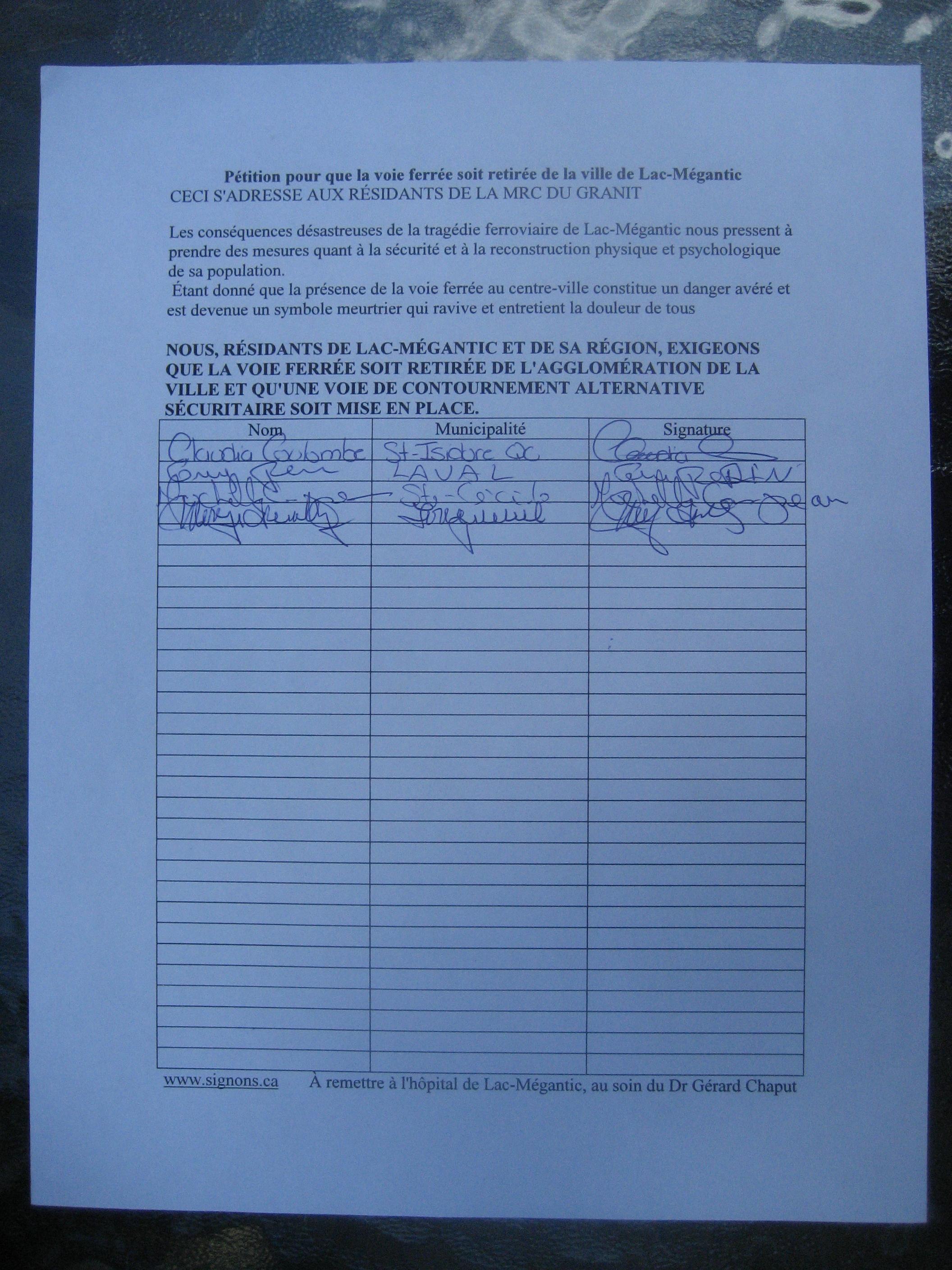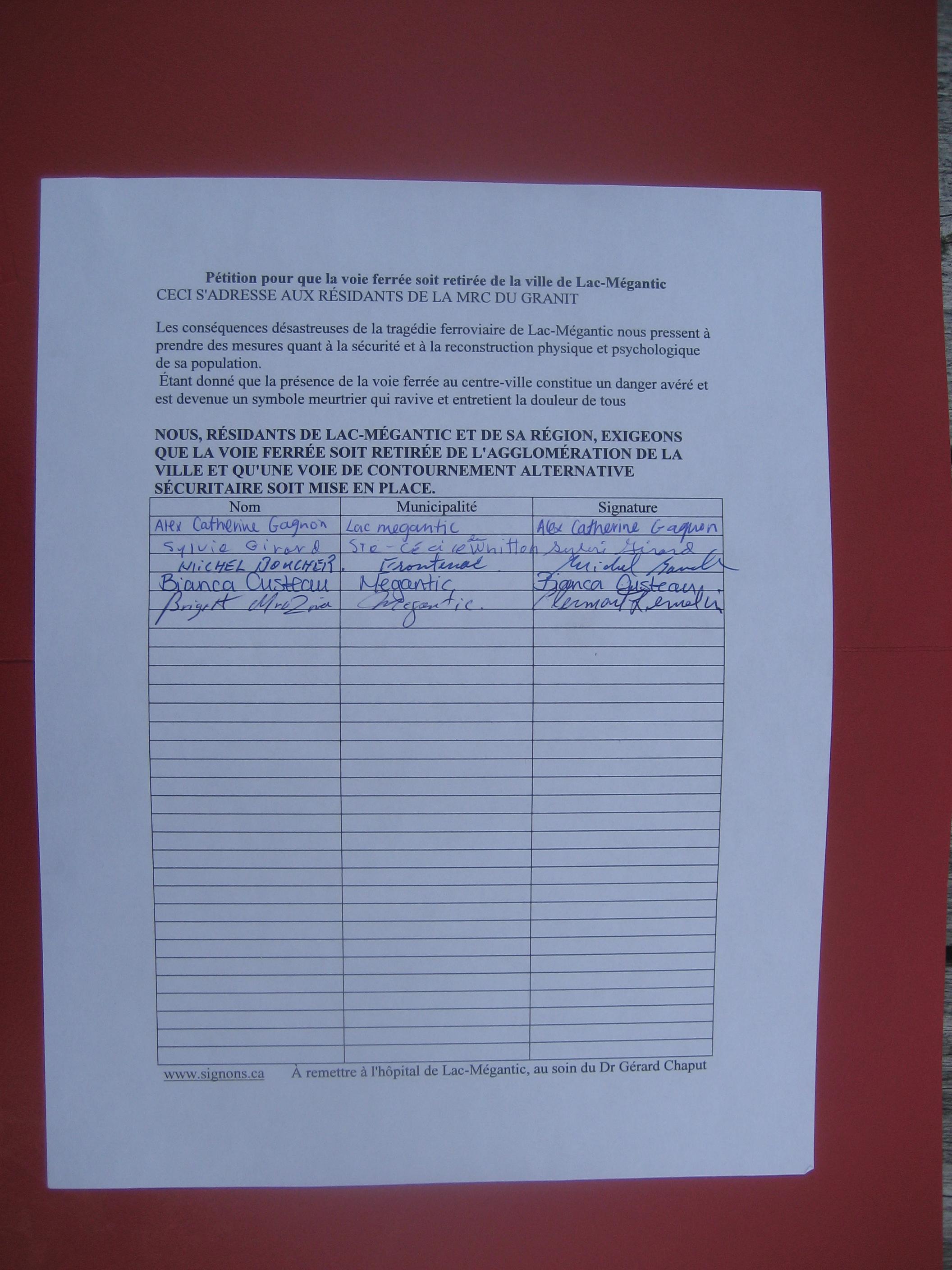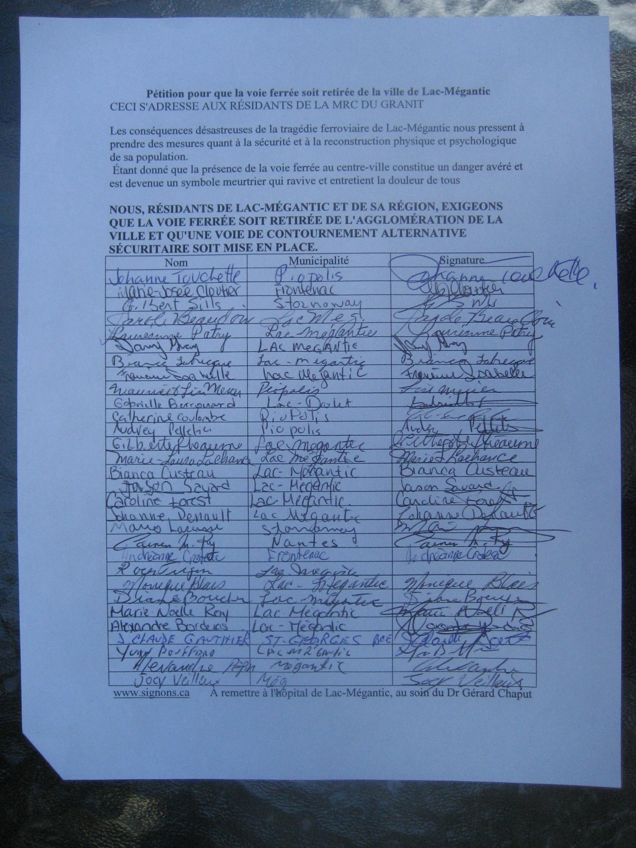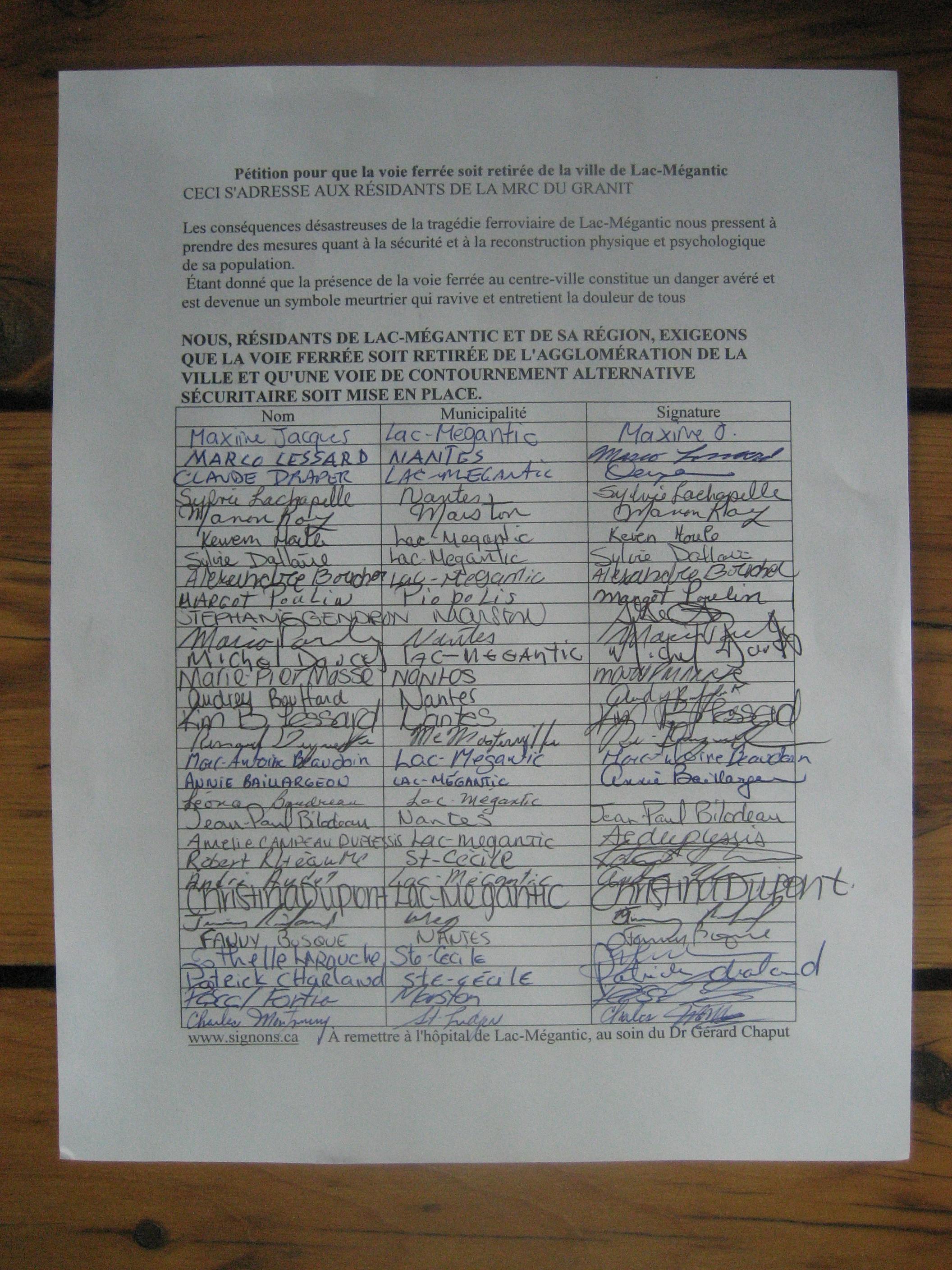 - Pétition pour re-localiser la voie ferrée de Lac-Mégantic