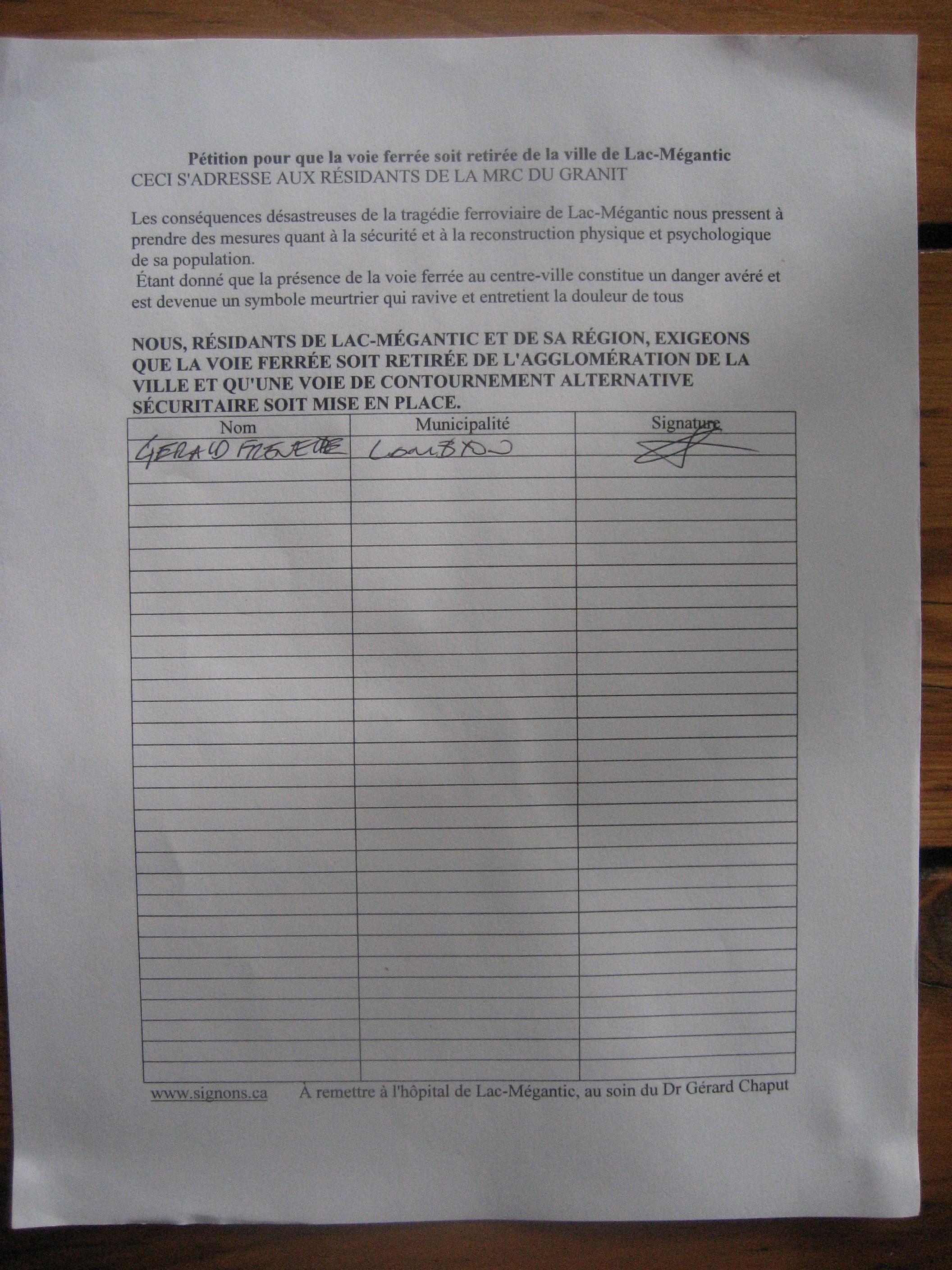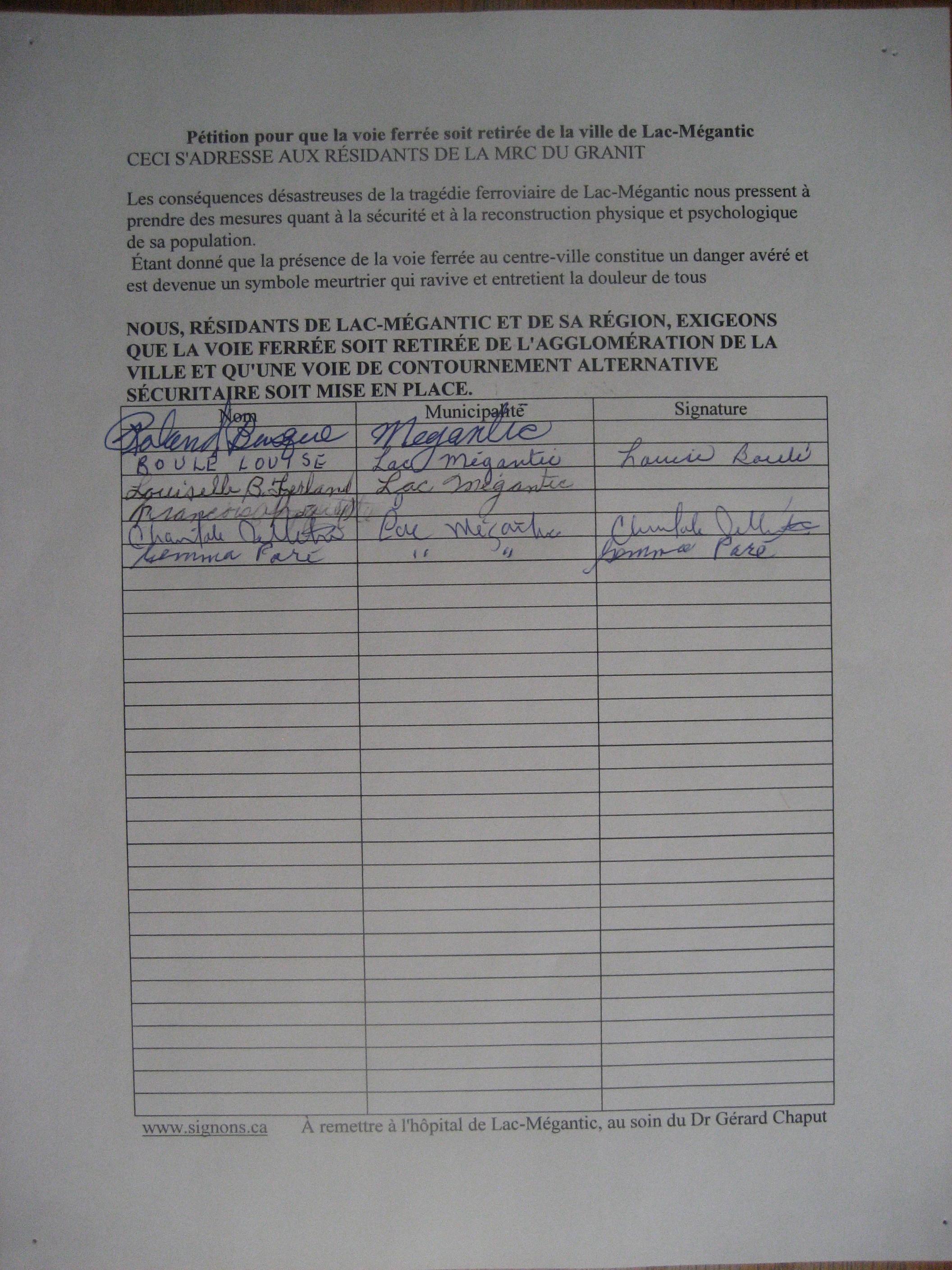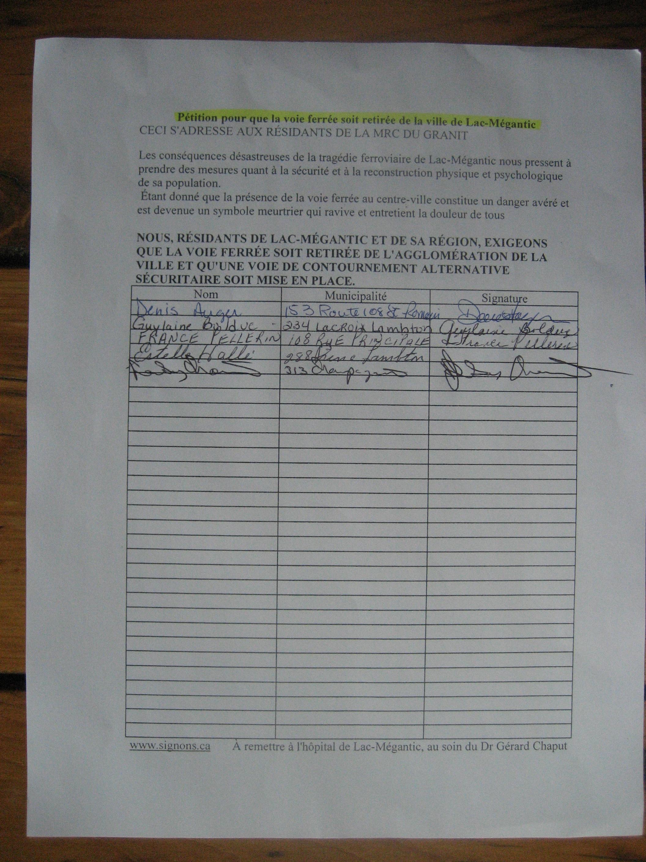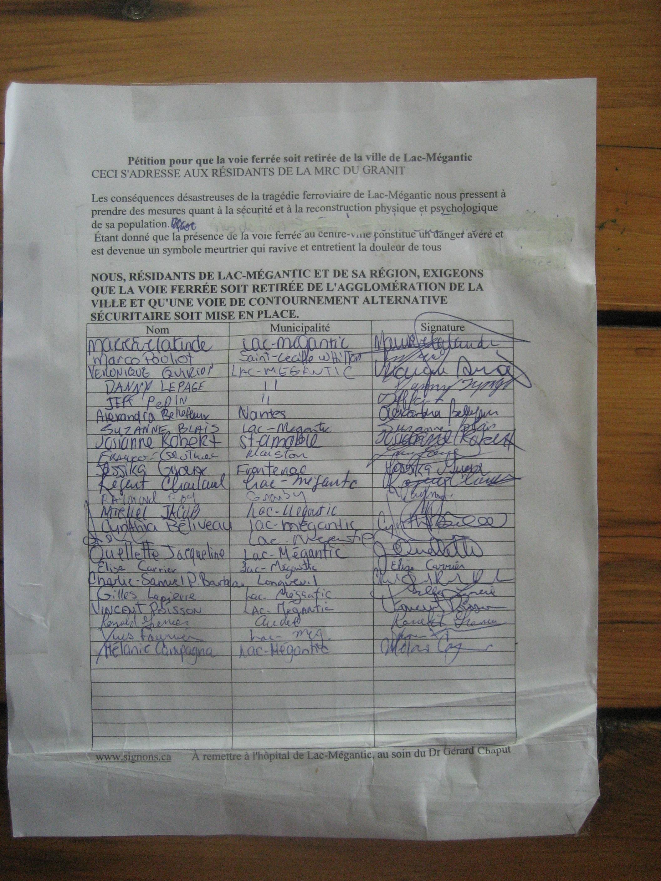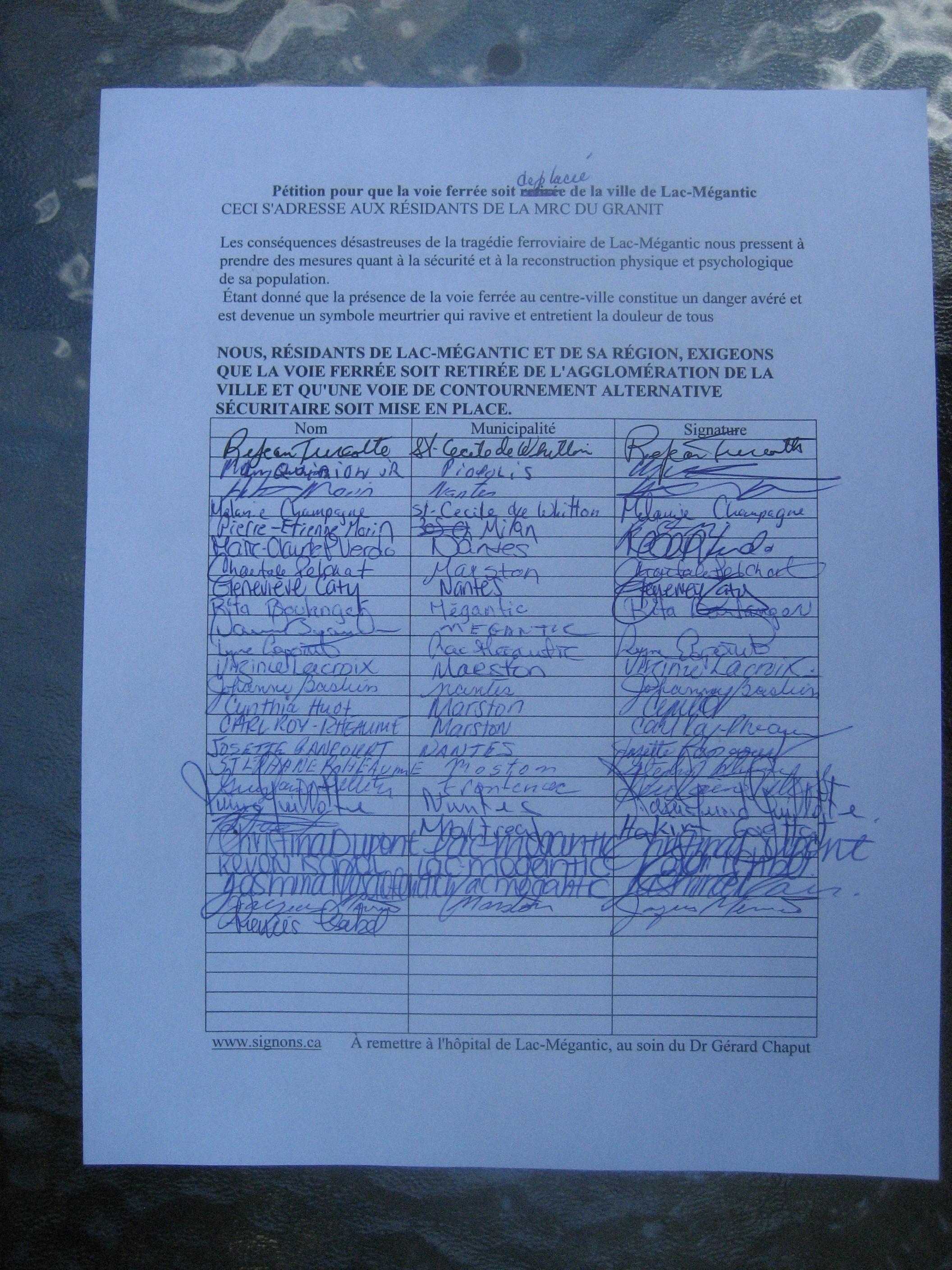 - Pétition pour re-localiser la voie ferrée de Lac-Mégantic