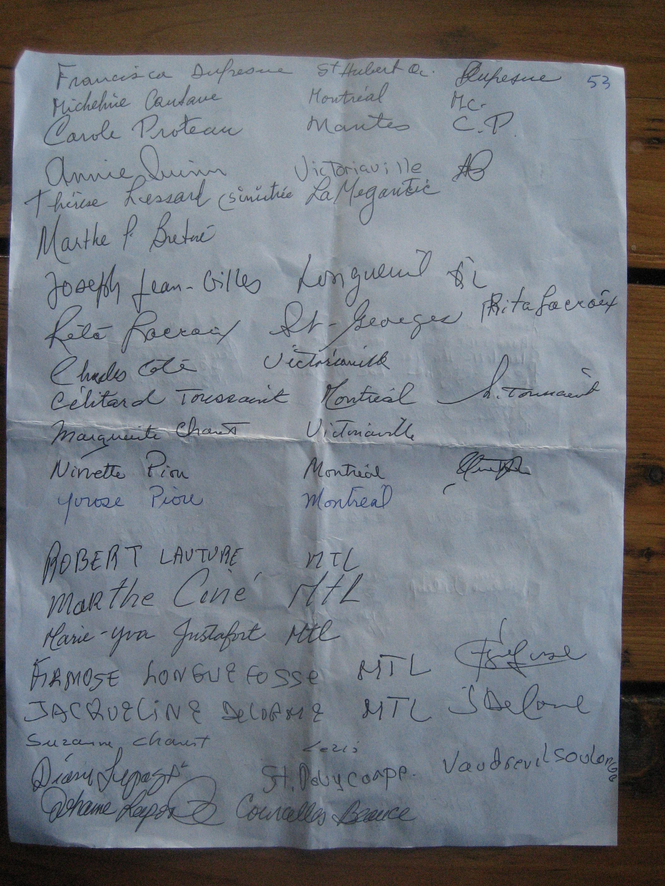 Pour les autres signatures de la pétition en ligne, voir www.signons.ca