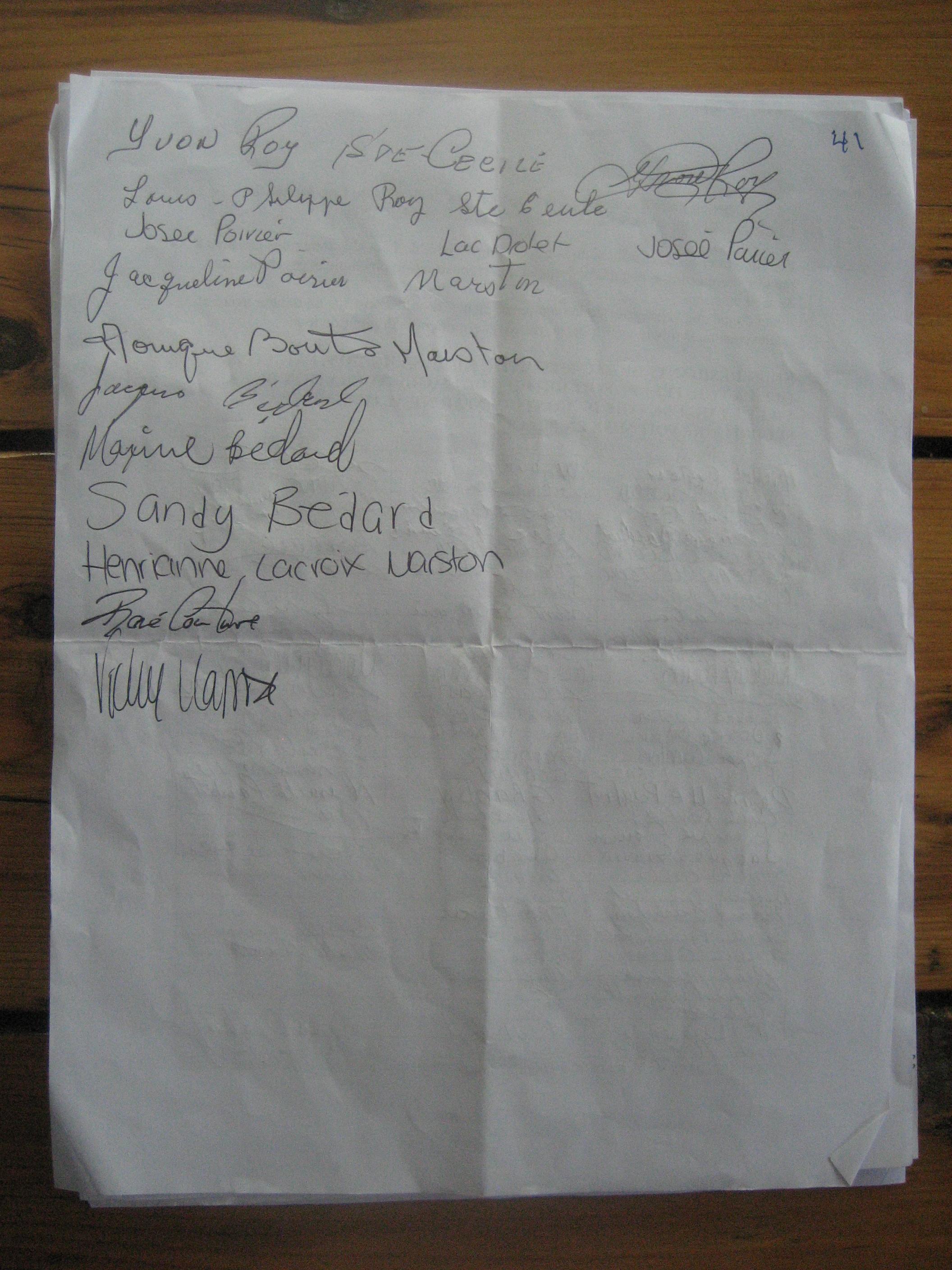Signatures de la pétition papier ( pour voir une page,cliquer un # de page )